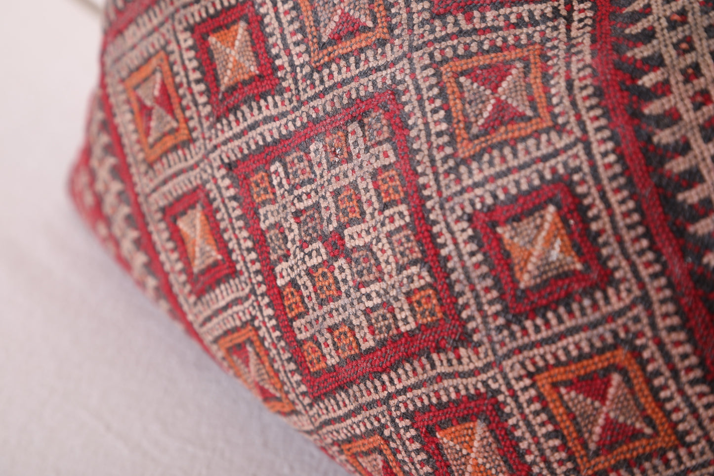Add authentic Moroccan charm to your home with this handcrafted Vintage Kilim Moroccan Pillow, sized at 9.8 x 14.5 inches (25 CM x 37 CM). Featuring intricate geometric patterns in classic red and white, this pillow brings traditional Berber craftsmanship into your living space. Perfect for adding texture and a global touch to your sofa, bed, or accent chair.