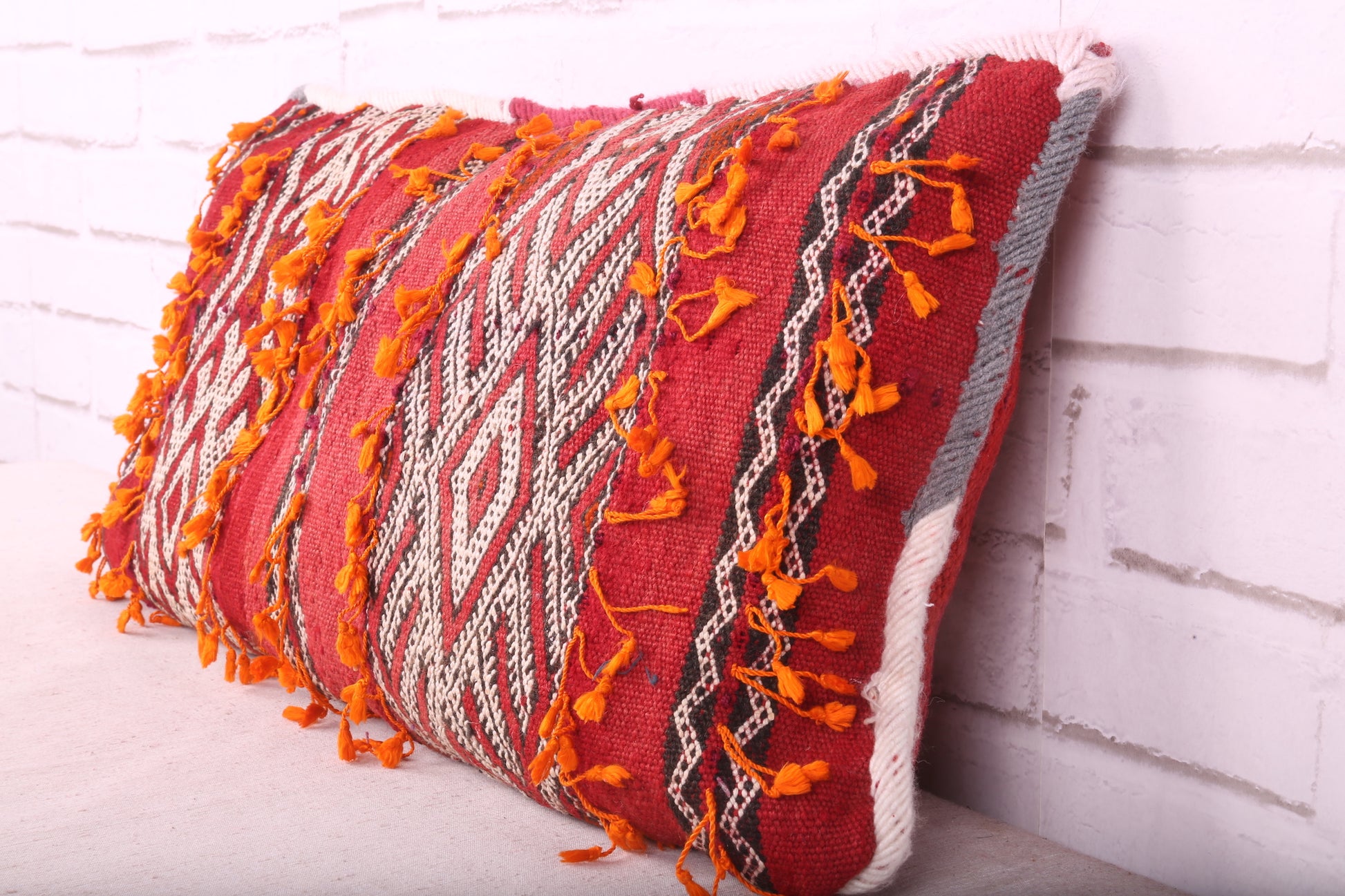 Bring a unique piece of Moroccan craftsmanship into your home — add a handmade long Berber pillow. Nothing quite beats the look of a handmade pillow. This 12.2 inch X 22.8 inch pillow is made of all-natural fibers and handwoven by the Berber people of Morocco, making it the perfect addition to any home looking for some worldly flair. With its subtle design, it adds the perfect touch of texture to your space without overwhelming it — and with its unique design, no two pillows are ever the same.