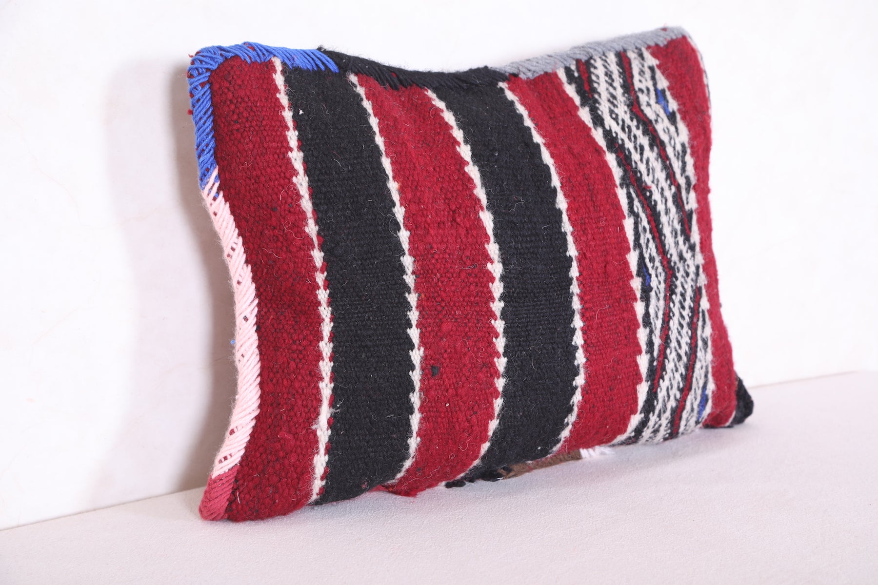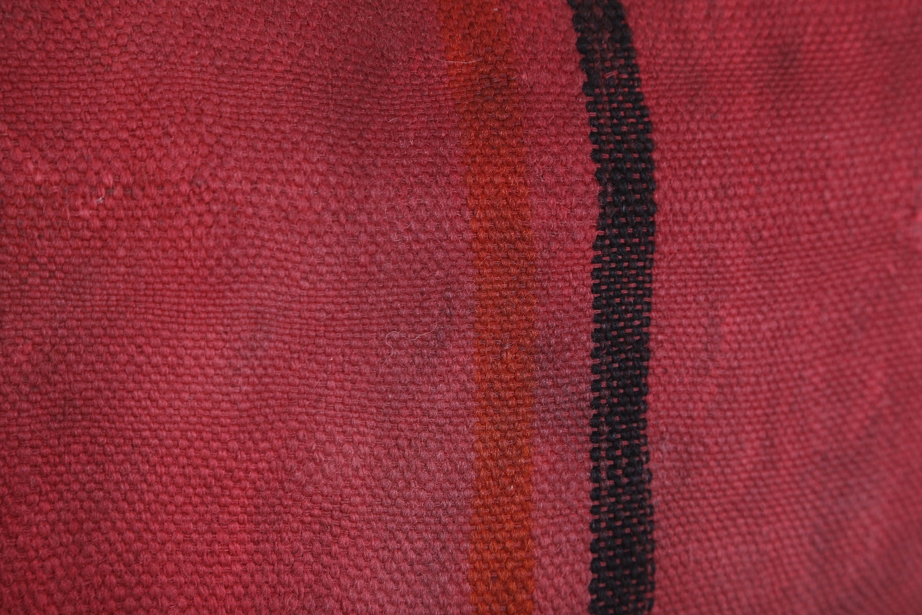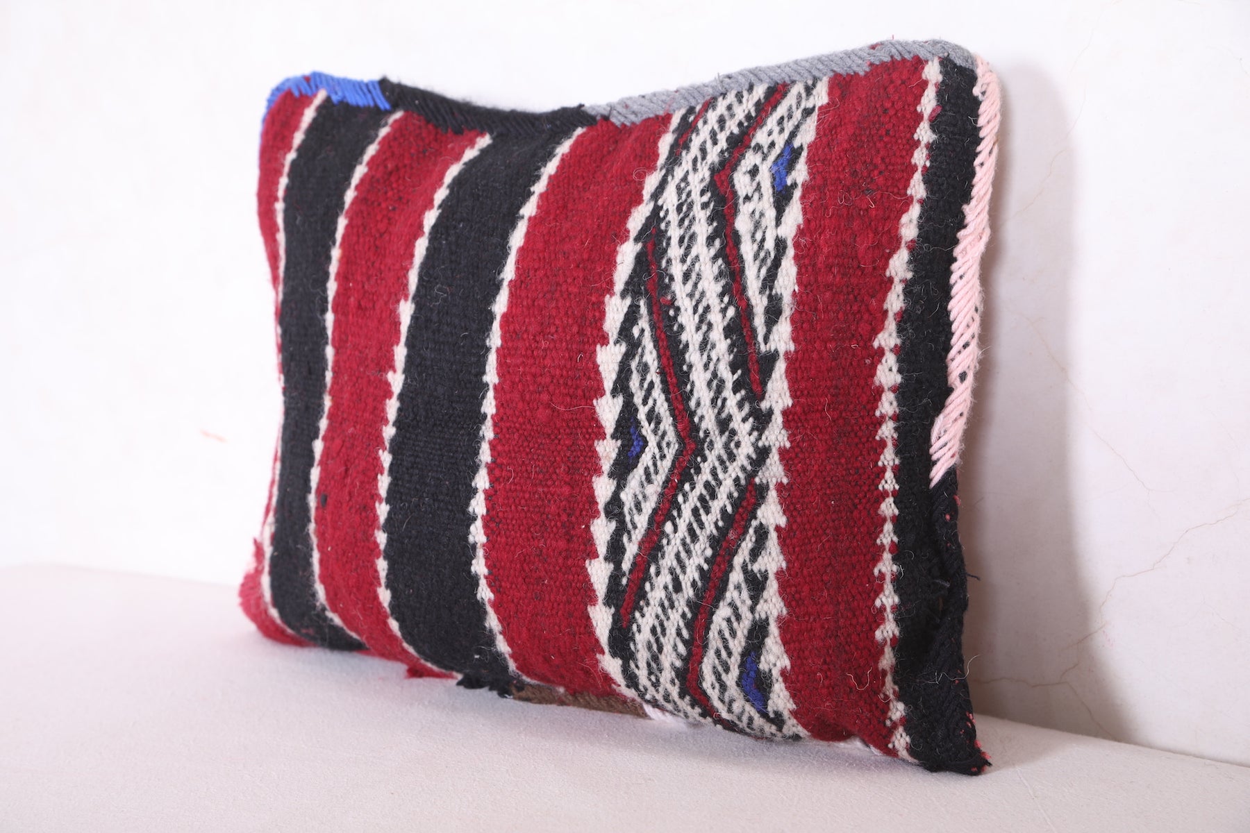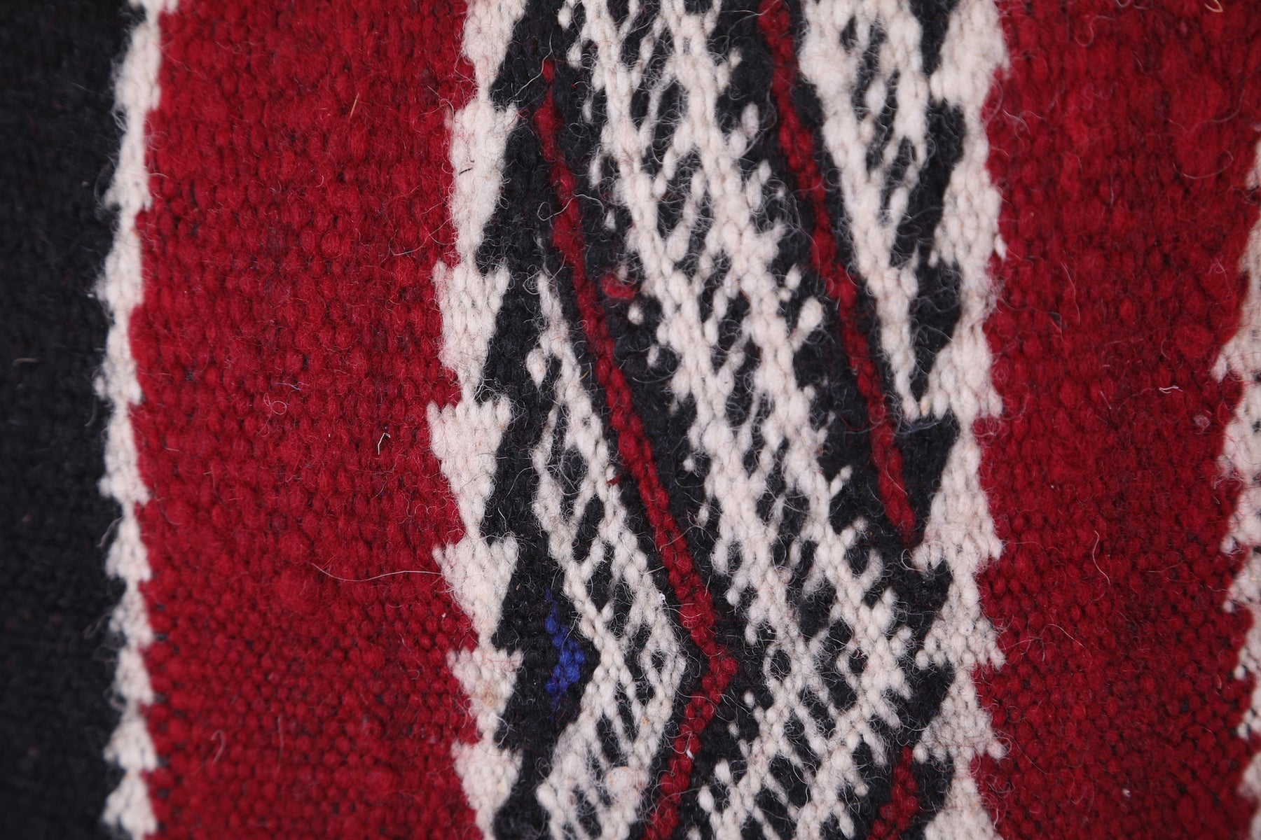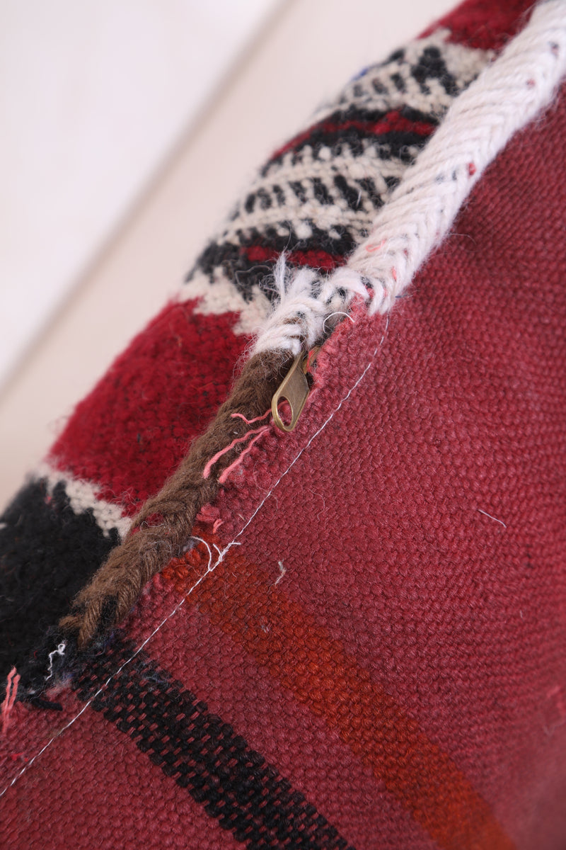 Add bold stripes and timeless Moroccan craftsmanship to your décor with this handwoven Kilim Moroccan Pillow, sized at 14.9 x 19.6 inches (38 CM x 50 CM). Featuring rich red, black, and white bands woven together using traditional kilim techniques, this artisan pillow brings texture, heritage, and warmth to your sofa, bed, or favorite lounge spot. Its classic design fits beautifully into both bohemian and modern interiors.
