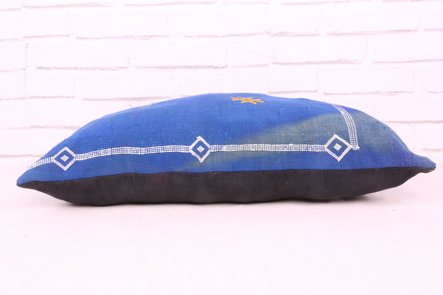 This Moroccan pillow cover is made with a soft cotton blend for extra comfort. It is 15.7 inches tall by 23.6 inches wide, making it easy to fit most standard pillow sizes. With its vibrant blue hue, this stylish cover will liven up any décor.