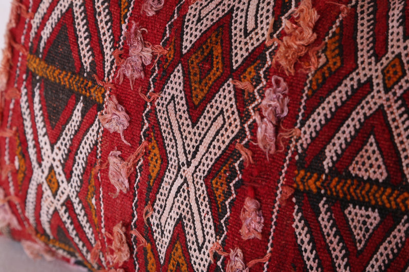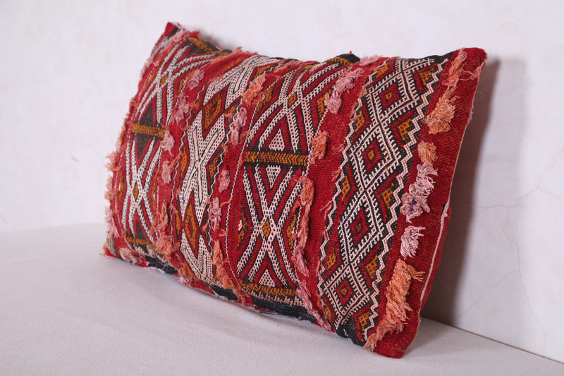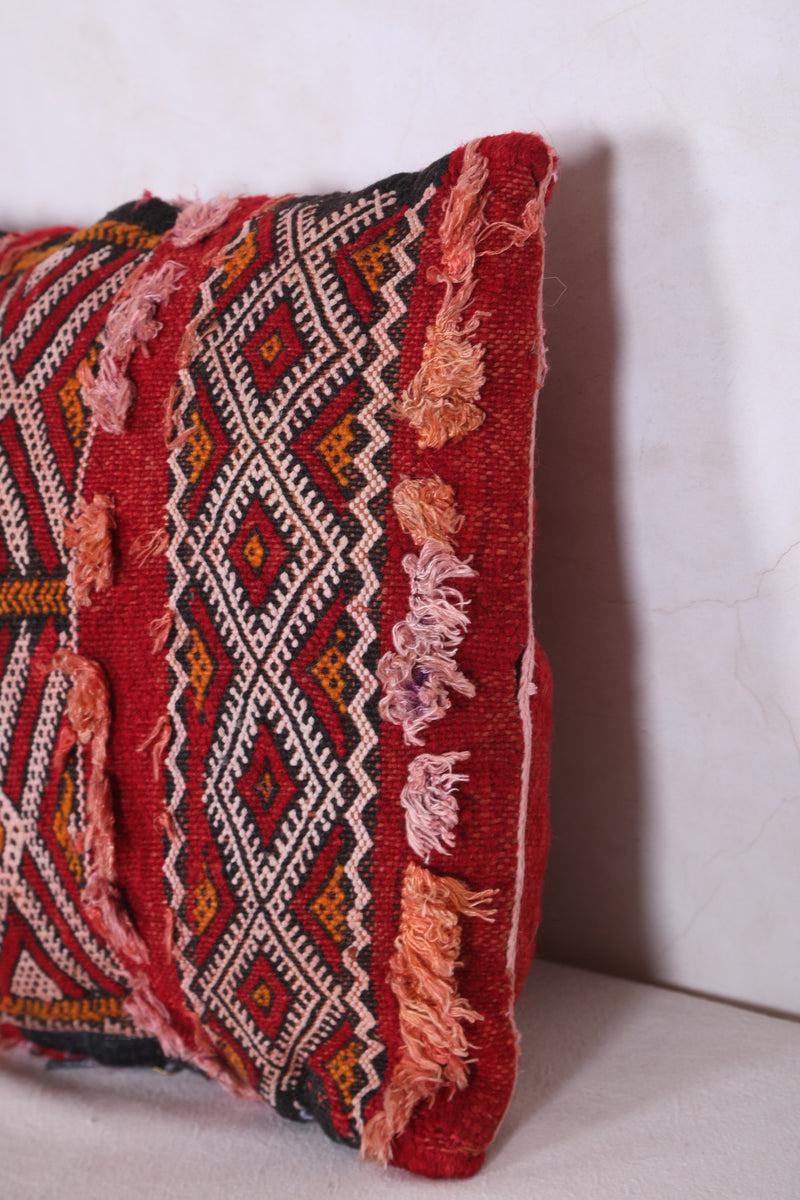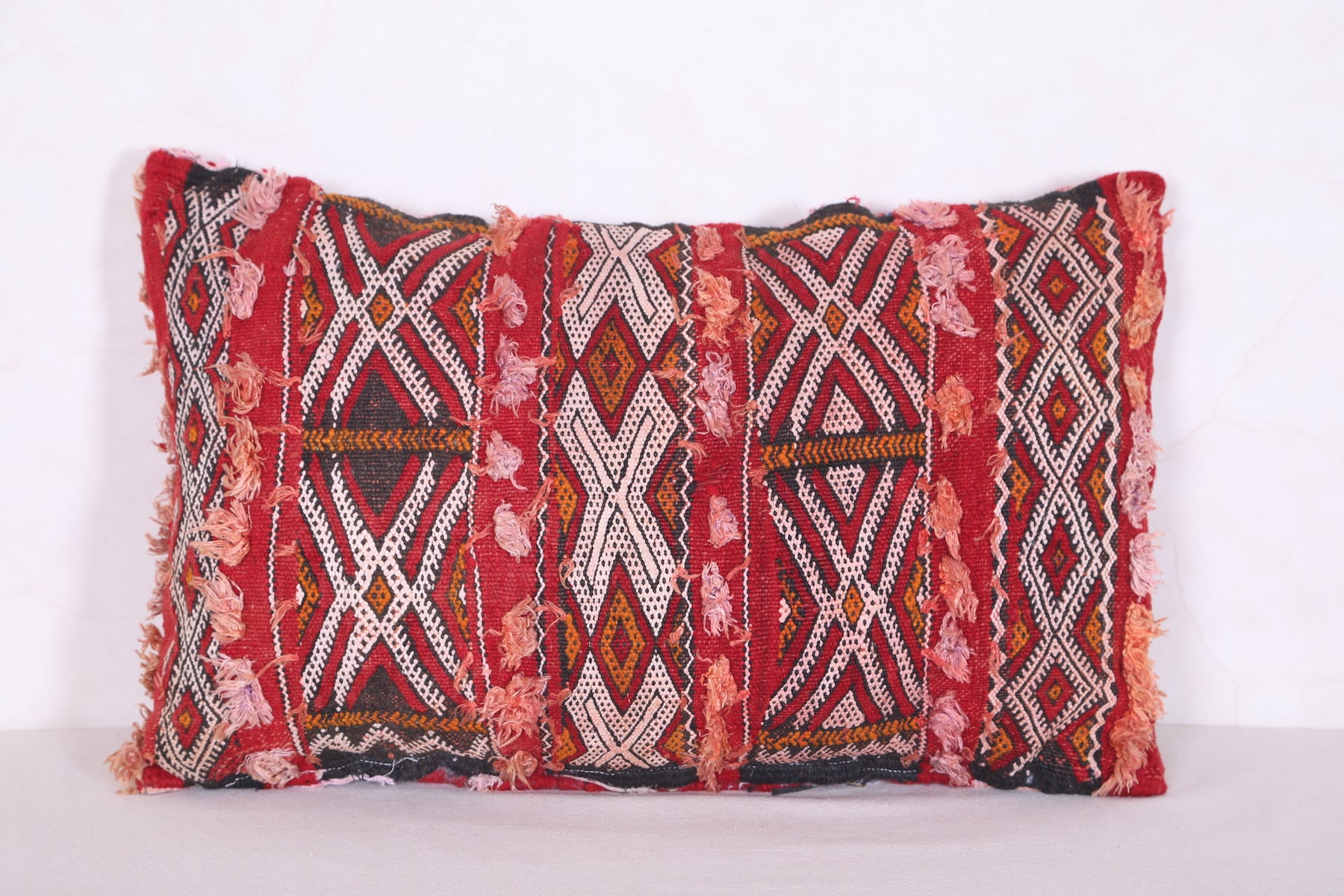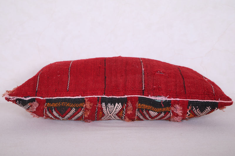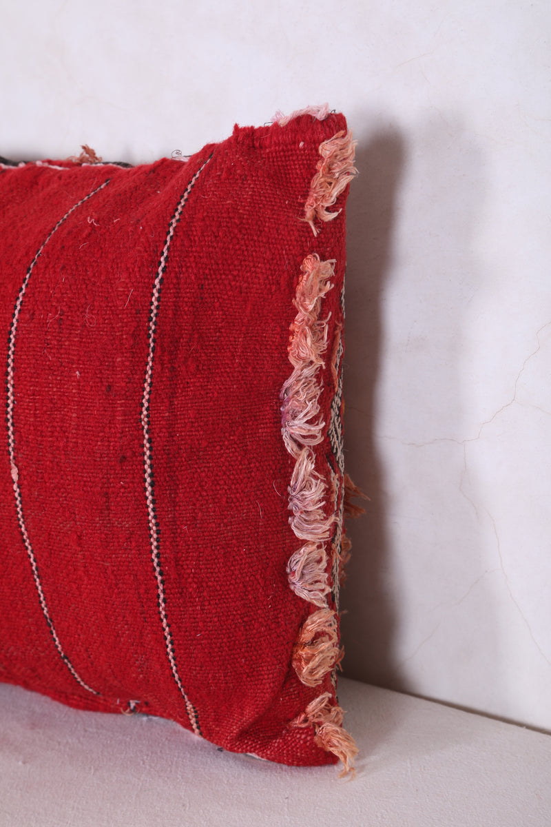 Add timeless Moroccan charm to your décor with this handcrafted Kilim Moroccan Pillow, sized at 15.7 x 24.8 inches (40 CM x 63 CM). This stunning pillow features intricate geometric patterns in vibrant red tones, carefully woven using traditional techniques. Its elongated shape makes it a perfect centerpiece for your sofa, bench, or bed, bringing global flair and artisan craftsmanship into your home.