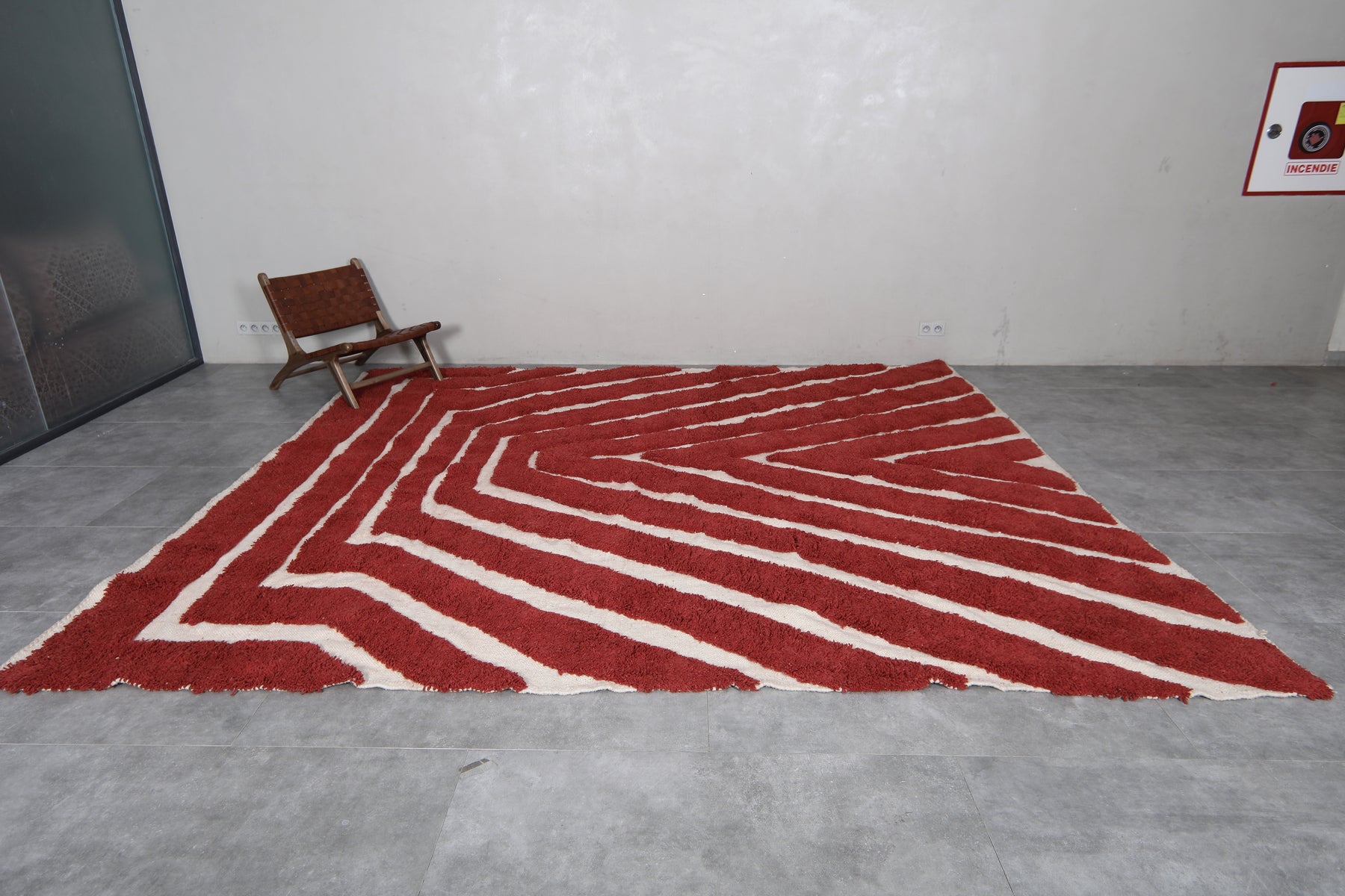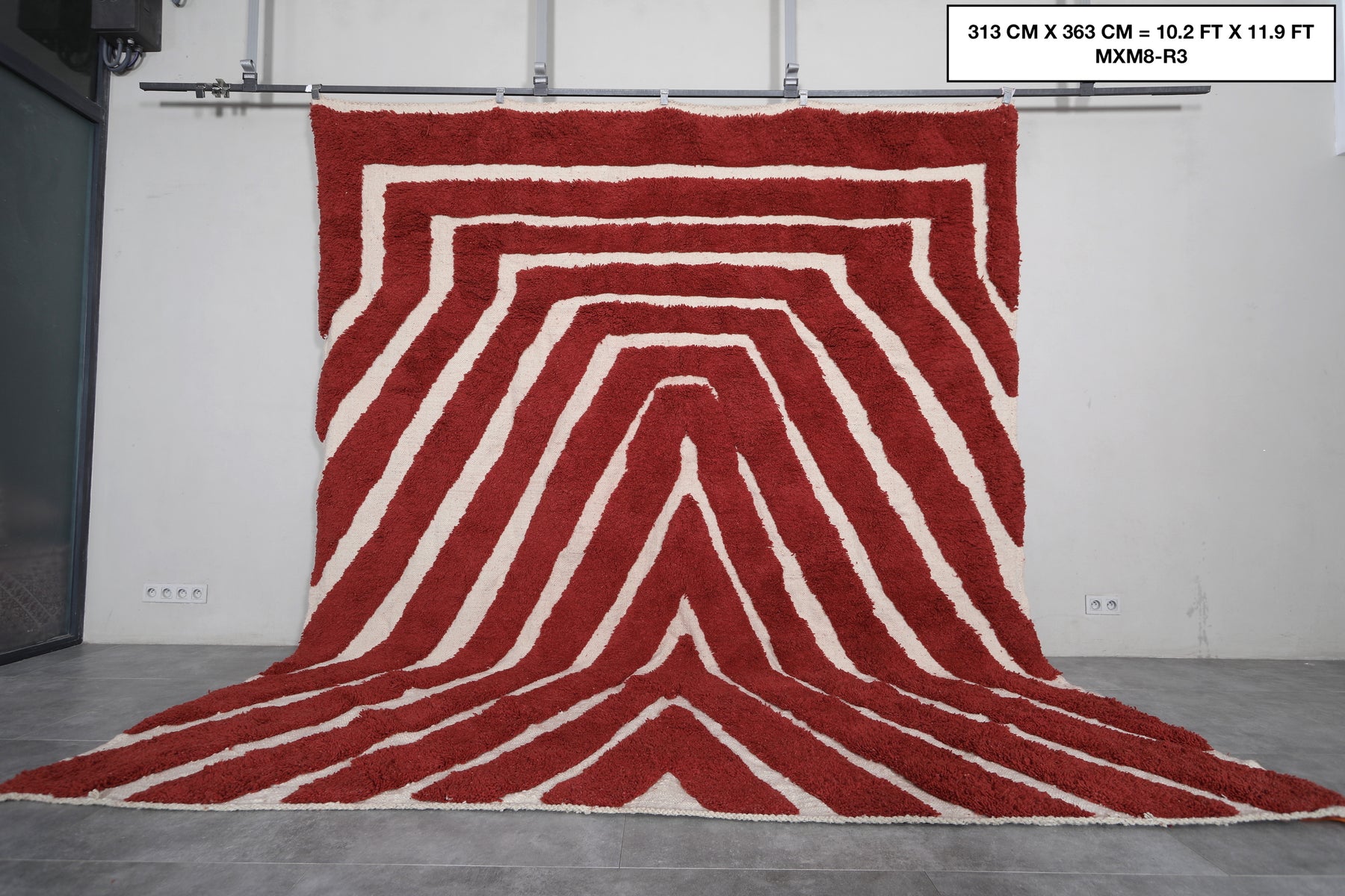Moroccan red wool rug - 10.2 x 11.9 Feet | Bold geometric design