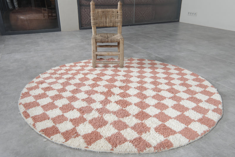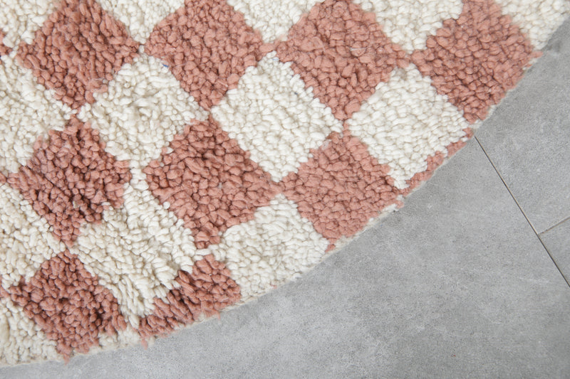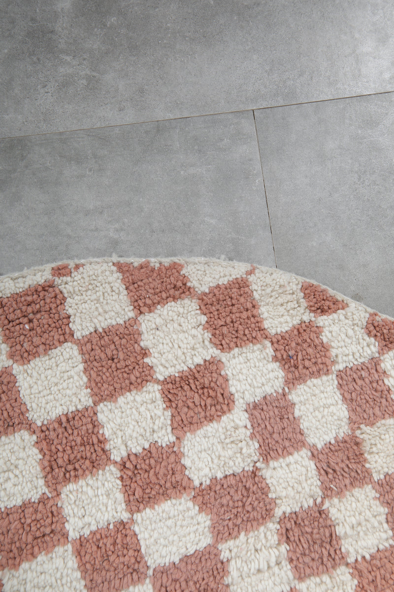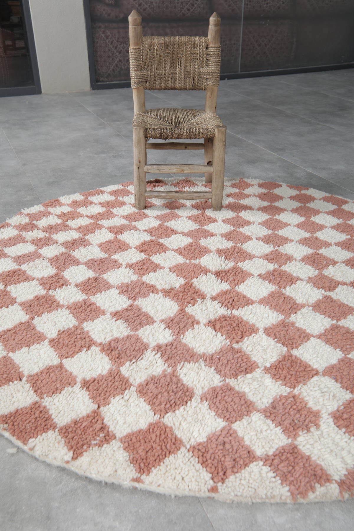 This Pink Checkered Round Rug brings playful elegance to any space with its charming blend of cream and pink tones. A stylish accent for both modern and vintage-inspired interiors.