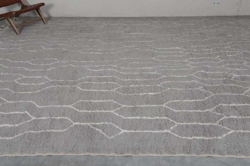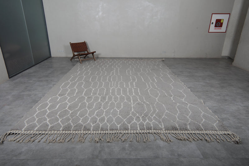 Large Moroccan rug - 10.1 x 14.2 ft | Gray with white geometric pattern