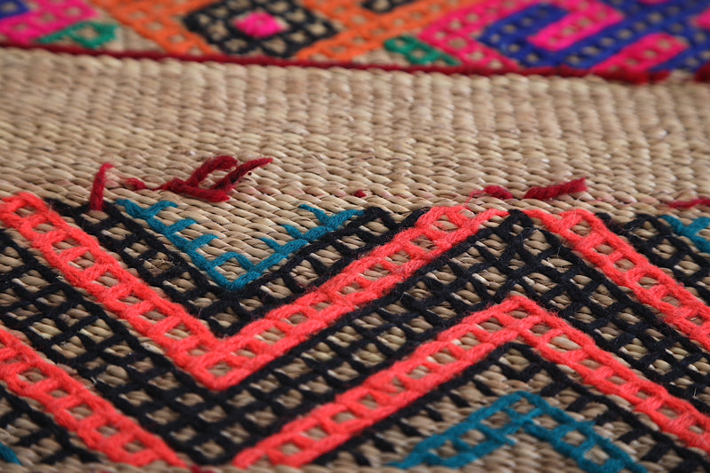 Elevate your décor with timeless Moroccan craftsmanship—order this handmade Hassira straw mat and enjoy its beauty for years to come.
