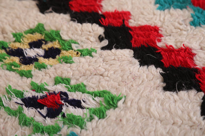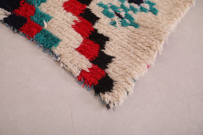 Enhance your space with this Moroccan rug, measuring 3.2 x 5.5 feet, featuring a bold and colorful diamond design. The vibrant combination of red, teal, black, and green creates a stunning visual impact, adding a touch of elegance and warmth to any room. Perfect for living rooms, bedrooms, or hallways, this handwoven rug will elevate your décor with its unique design and craftsmanship. Its lively colors and traditional pattern make it a versatile addition to both modern and traditional interiors.