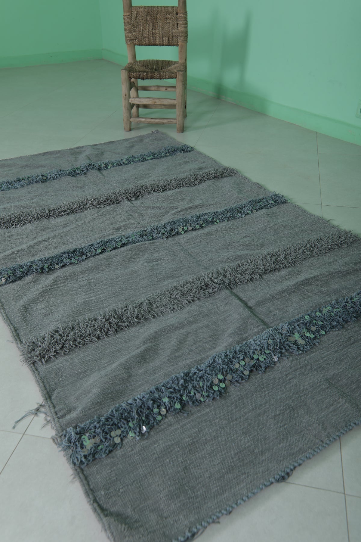 Add a touch of Moroccan tradition to your home with this Traditional Berber Wedding Blanket Rug, measuring 3.6 FT x 6.2 FT. Crafted with intricate patterns and rich textures, this unique piece showcases the beauty of Moroccan craftsmanship.