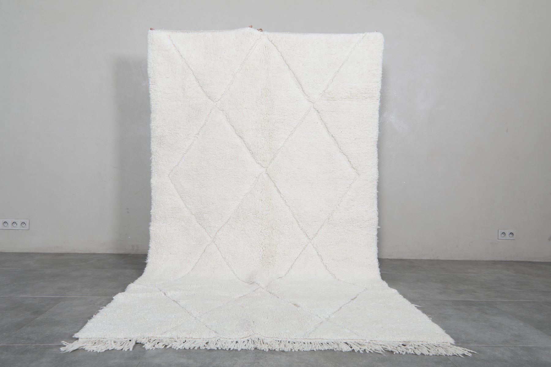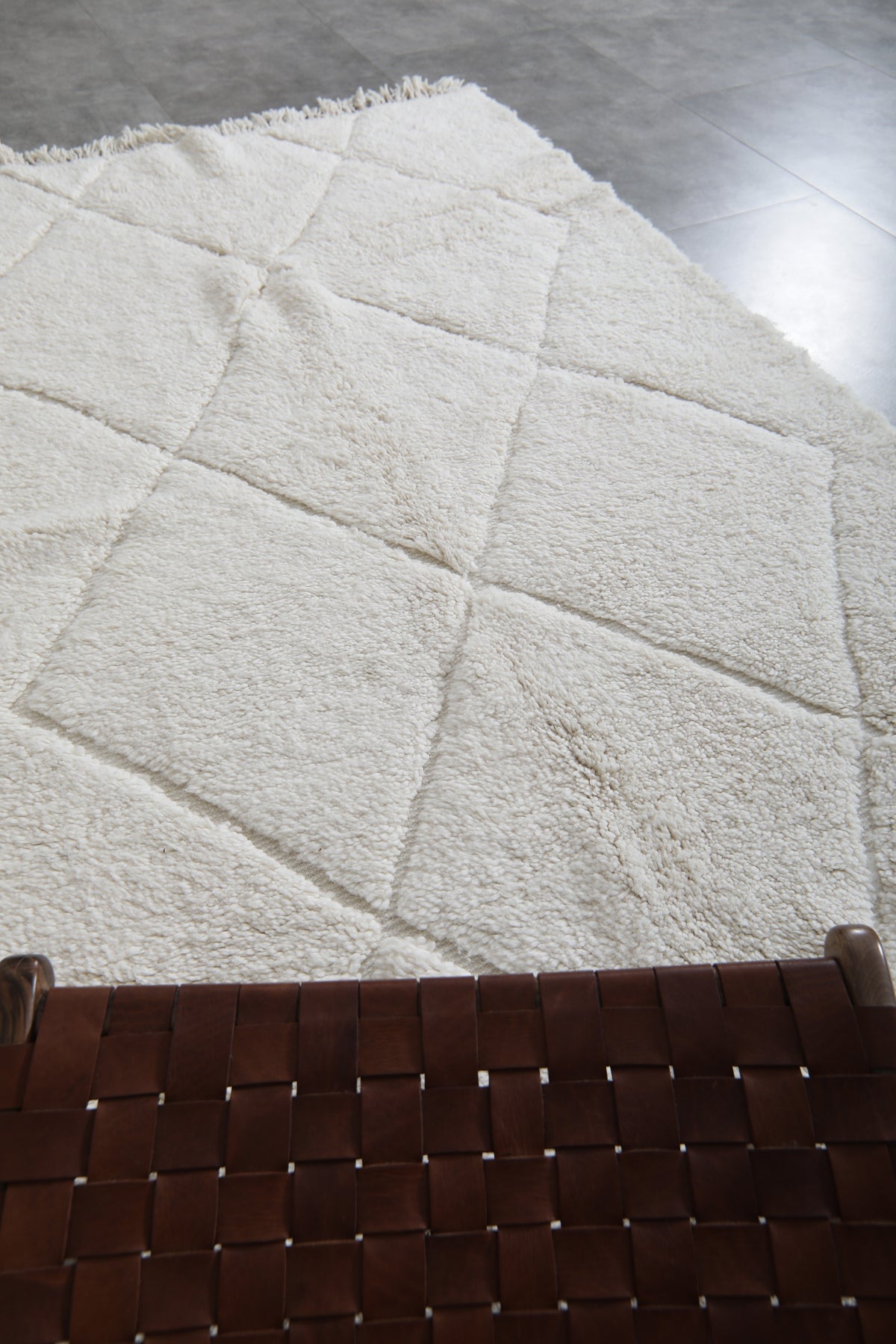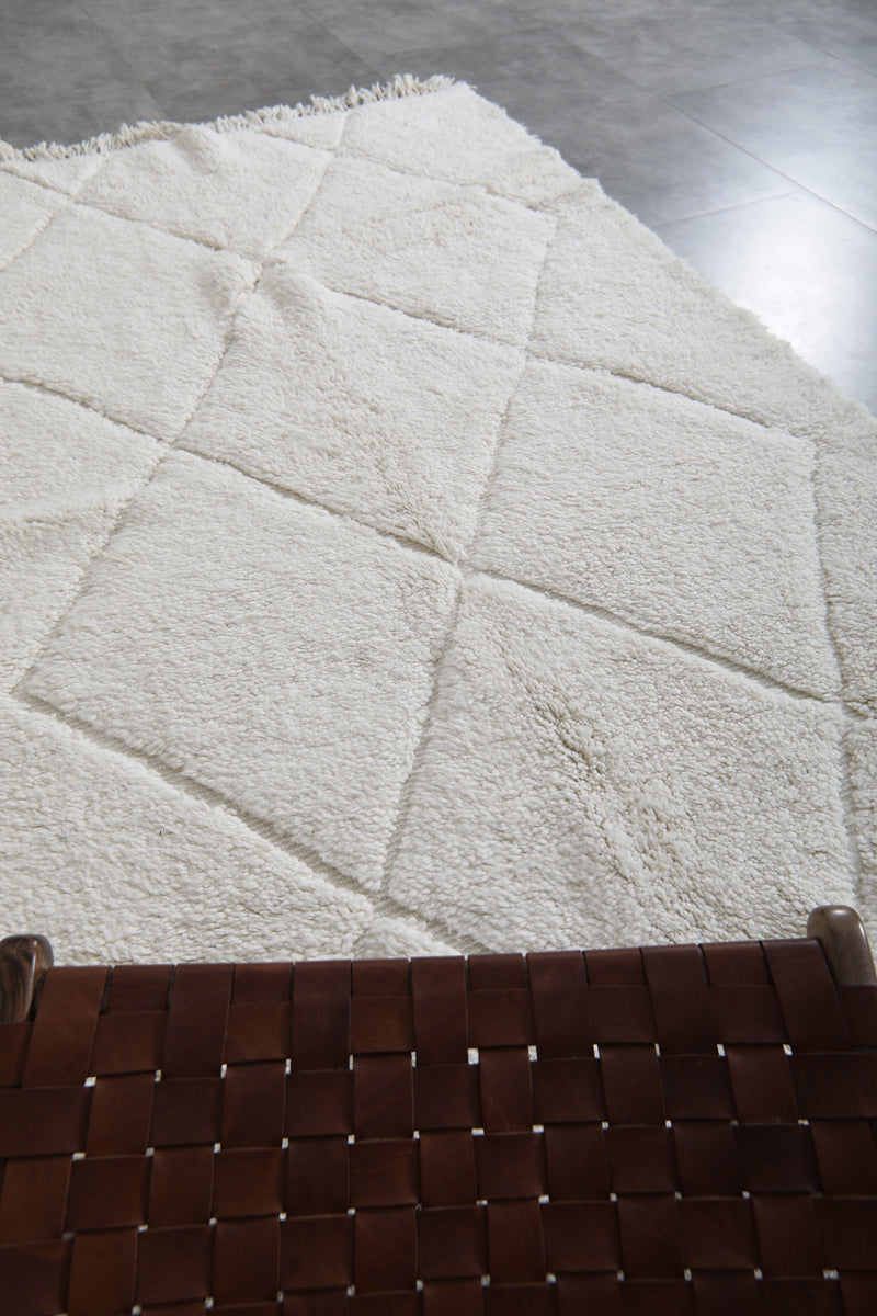 Luxurious Moroccan rug - 5.2 x 8.6 ft | White with subtle diamond texture