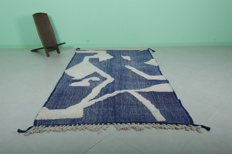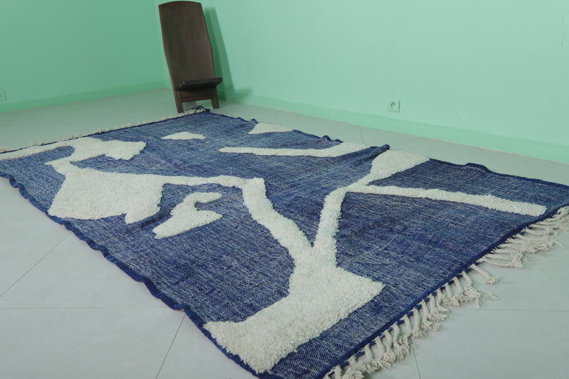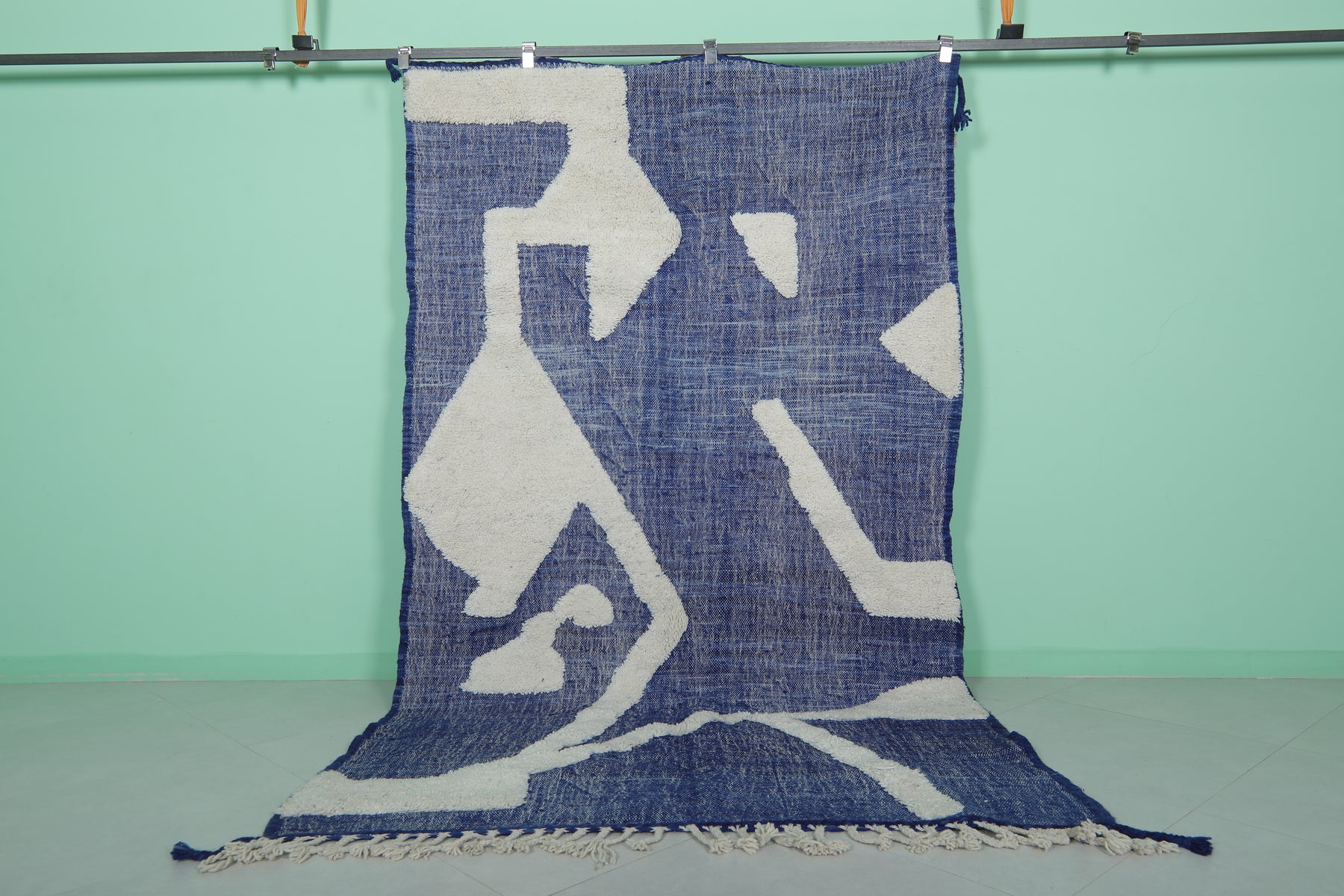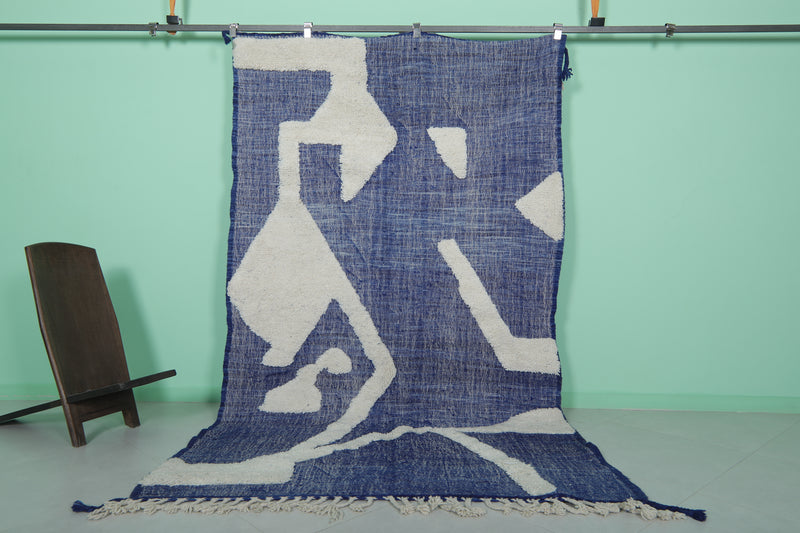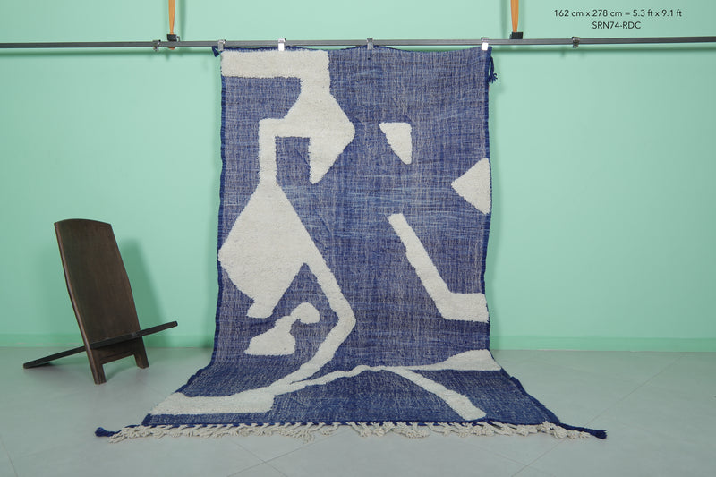 Moroccan Rug - 5.3 X 9.1 Feet | Abstract Blue and White Design