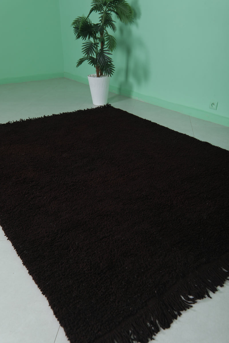 Add depth and sophistication to your space with this Elegant Moroccan Rug, sized at 5.5 x 7.5 feet (168 CM x 230 CM). Featuring a rich deep black hue and a minimalist design, this handwoven rug brings warmth and contemporary style to any setting. Perfect for living rooms, bedrooms, or study areas, it seamlessly complements modern and minimalist interiors.