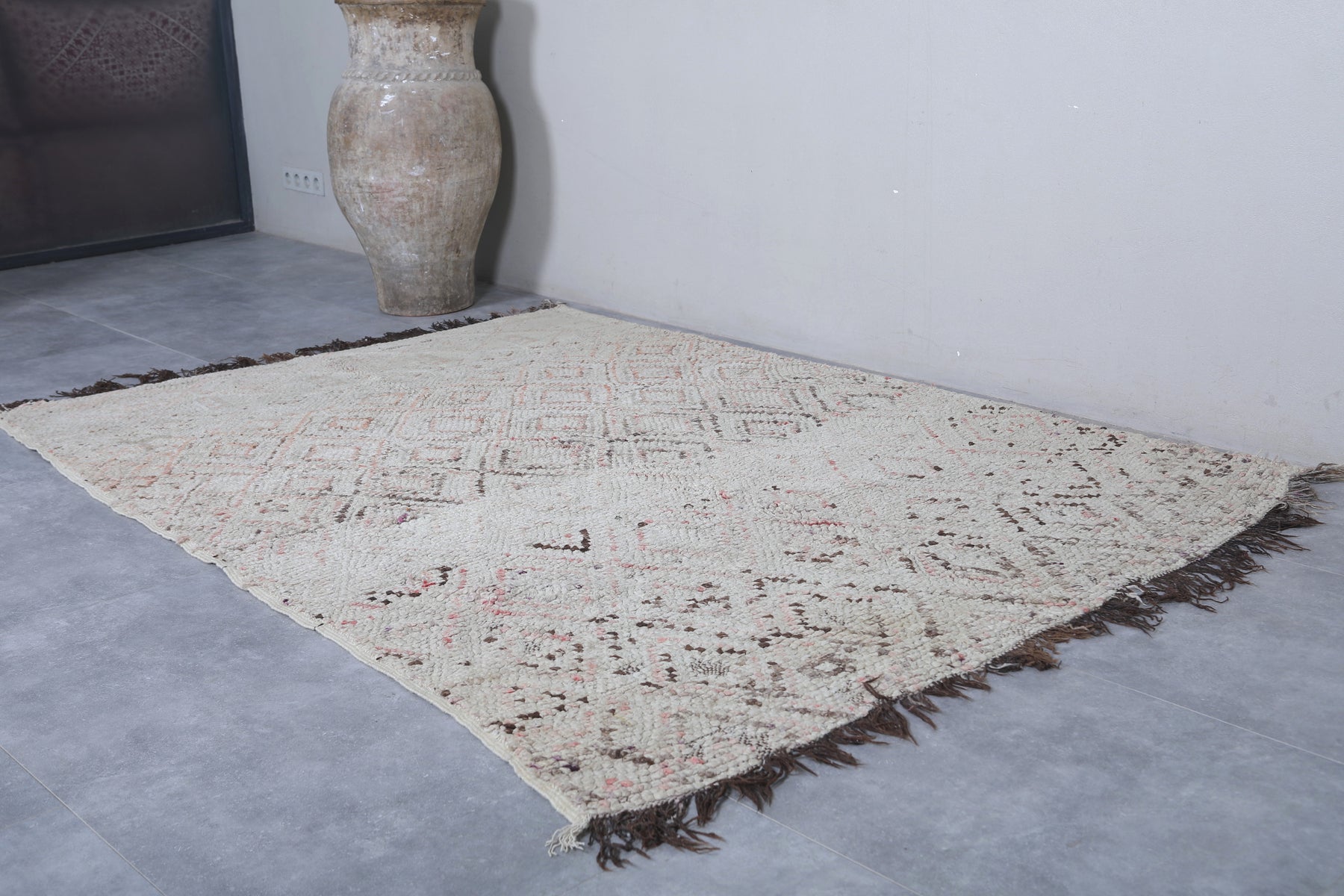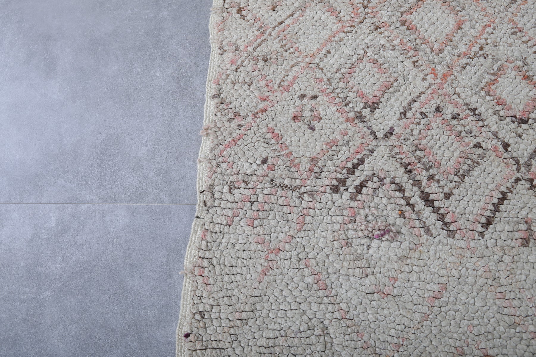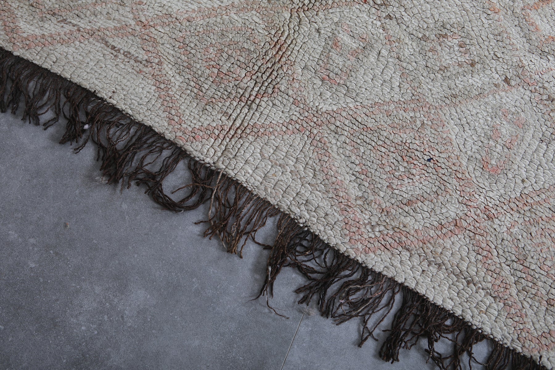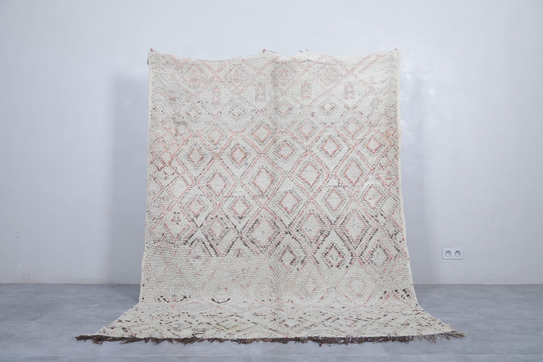 Transform your space with this vintage Moroccan rug, featuring an intricate diamond pattern that exudes timeless elegance. Soft cream tones are delicately accented with subtle hints of blush and earthy hues, creating a versatile palette that complements various décor styles. Handmade with traditional Berber craftsmanship, this 5.6 x 7.9-foot rug offers both durability and a luxurious, soft texture. Perfect for living rooms or bedrooms, it adds a sophisticated, cultural charm to any interior.