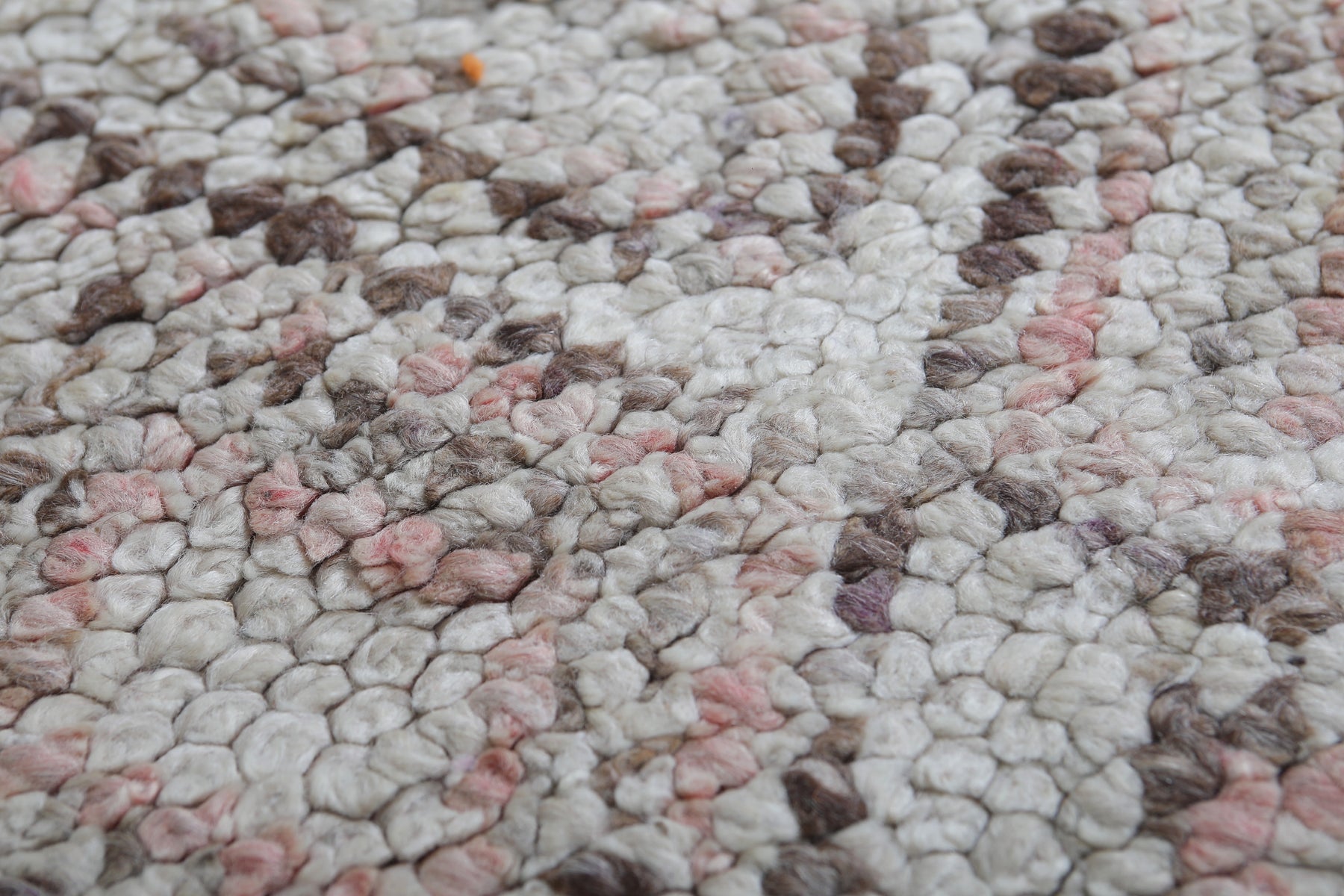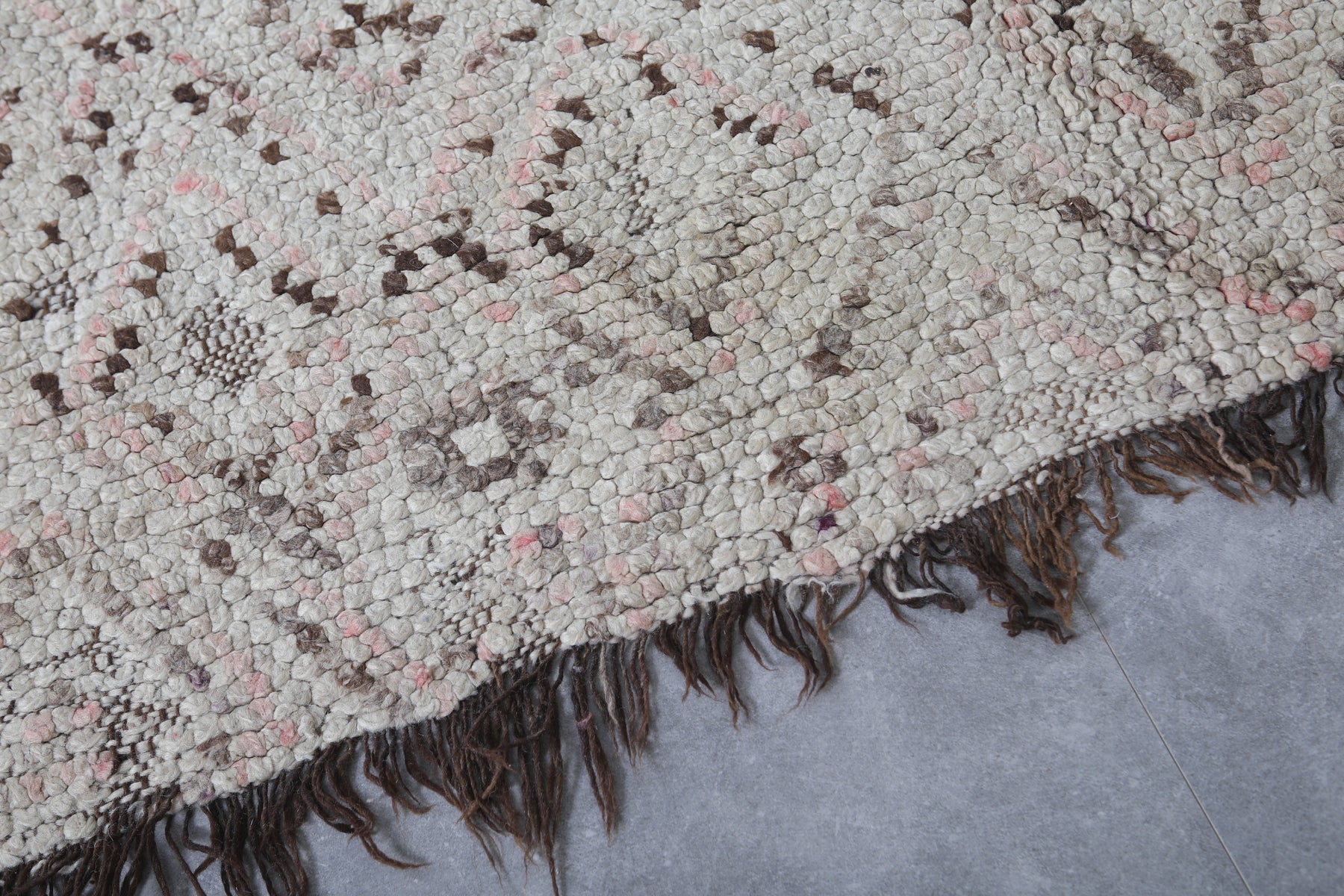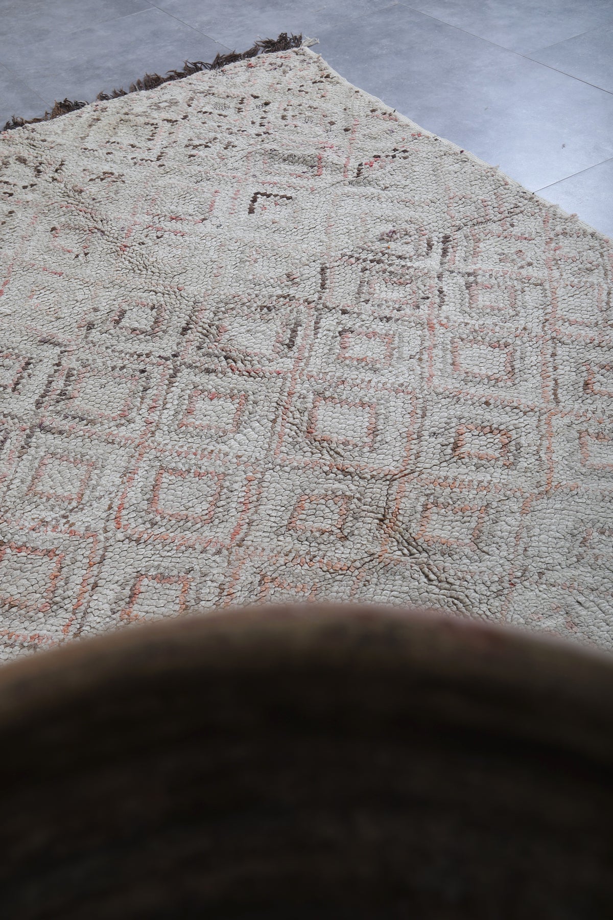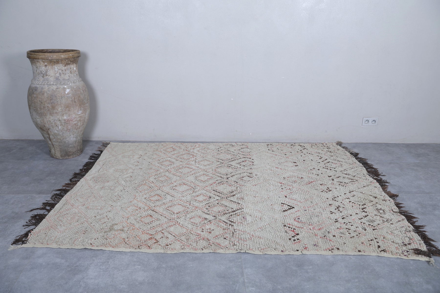 Transform your space with this vintage Moroccan rug, featuring an intricate diamond pattern that exudes timeless elegance. Soft cream tones are delicately accented with subtle hints of blush and earthy hues, creating a versatile palette that complements various décor styles. Handmade with traditional Berber craftsmanship, this 5.6 x 7.9-foot rug offers both durability and a luxurious, soft texture. Perfect for living rooms or bedrooms, it adds a sophisticated, cultural charm to any interior.