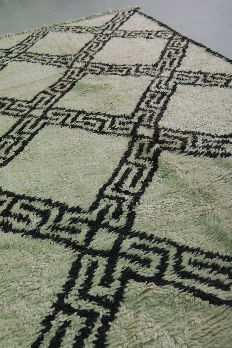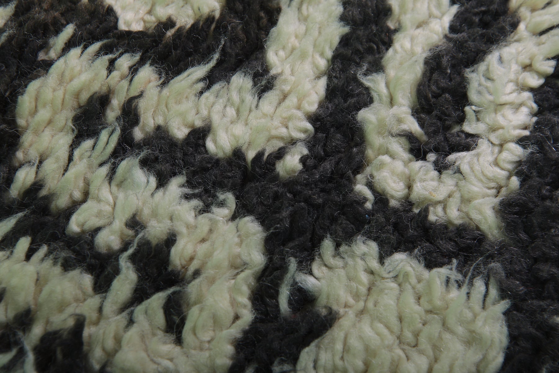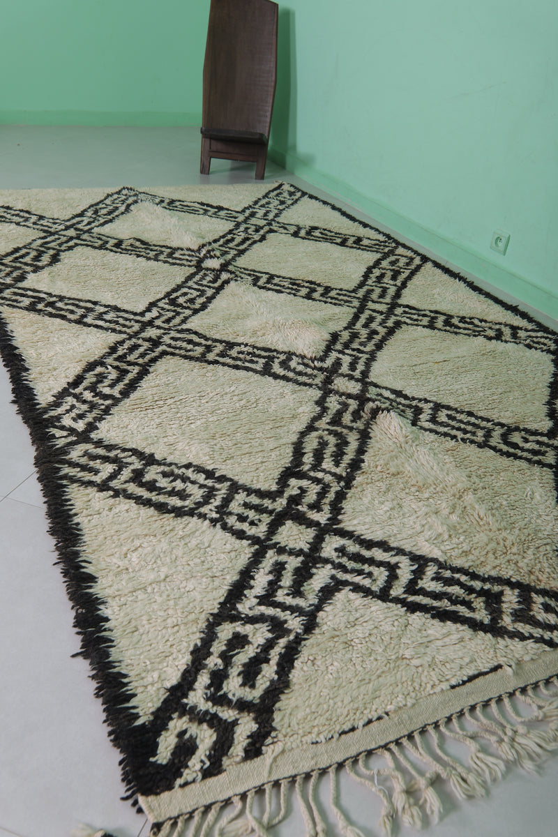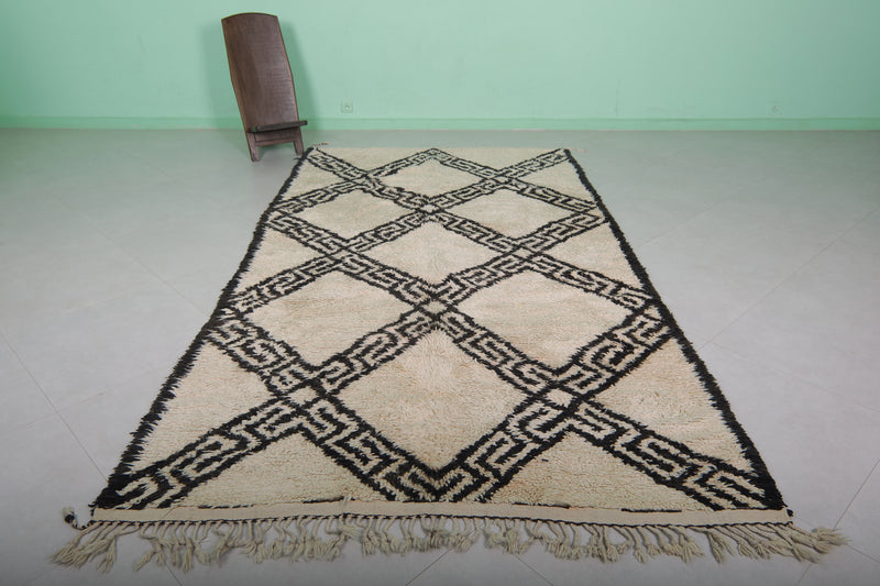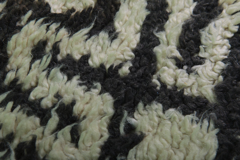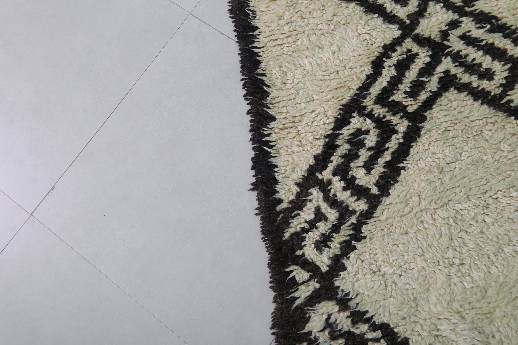 Bring bold elegance to your home with this Geometric Moroccan Rug, sized at 5.7 x 10.3 feet (175 CM x 316 CM). Featuring a striking black and white geometric design with a bold border, this handcrafted rug is a perfect fusion of traditional Moroccan artistry and contemporary style. Ideal for living rooms, bedrooms, or open spaces, it serves as a sophisticated focal point.