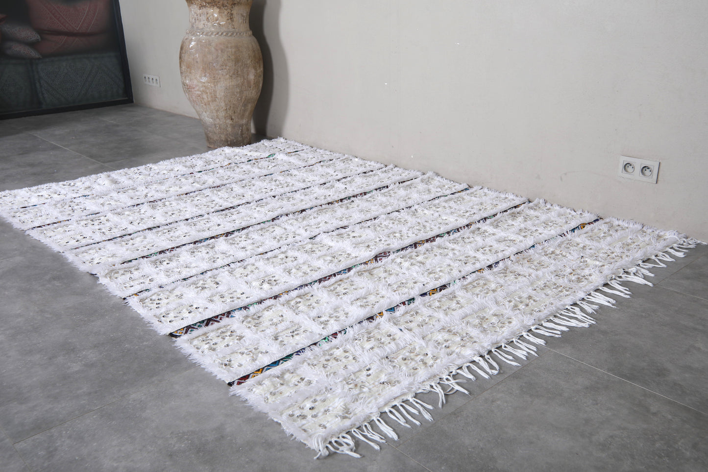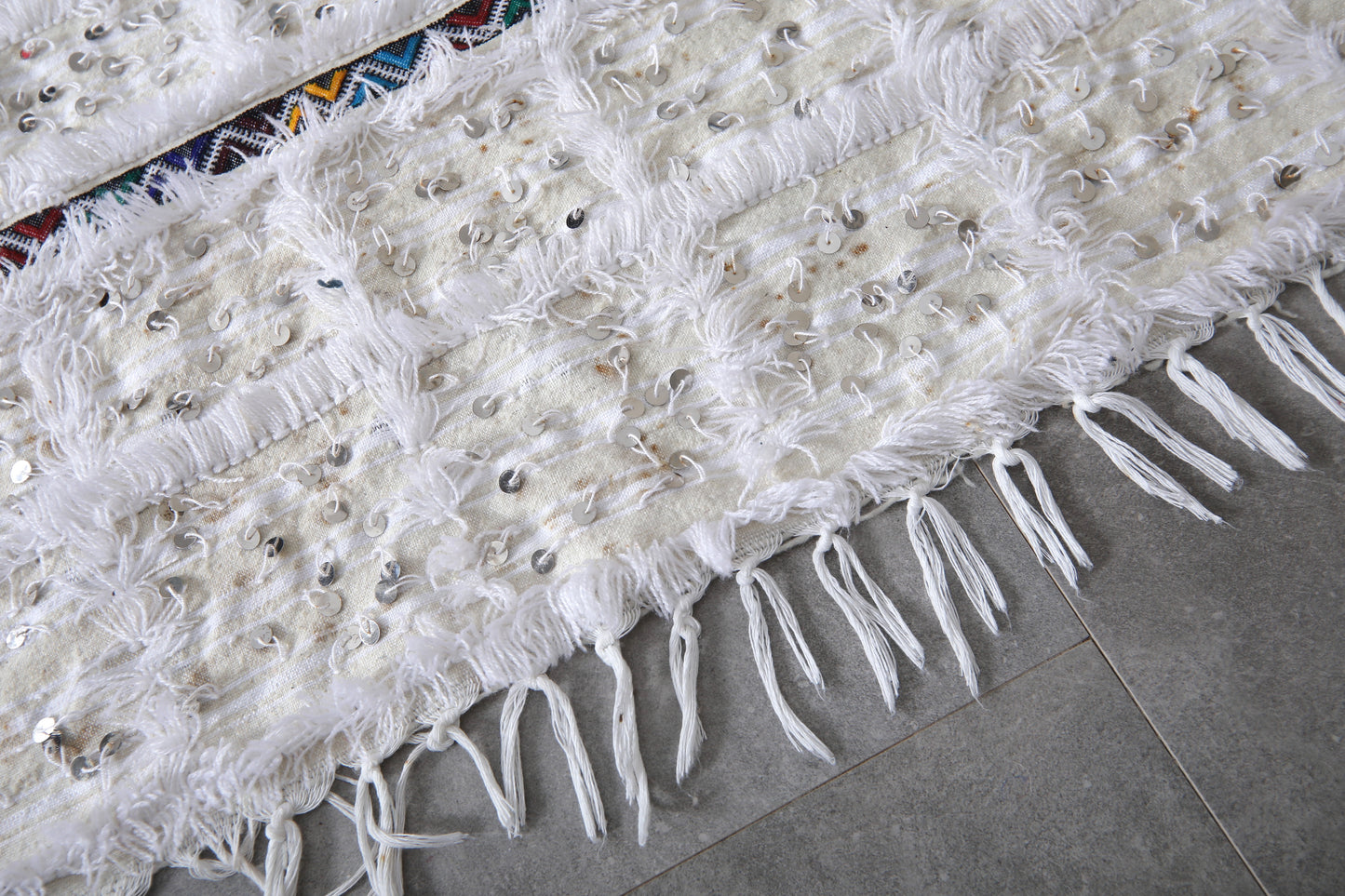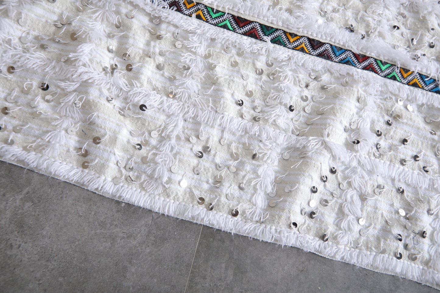 Moroccan Wedding Blanket Rug - 5.8 x 8.6 ft | Handmade Wool & Sequins