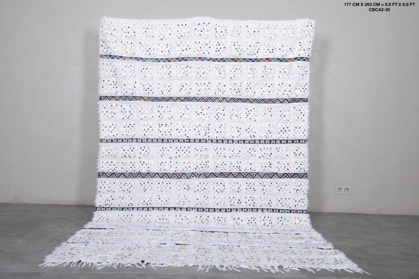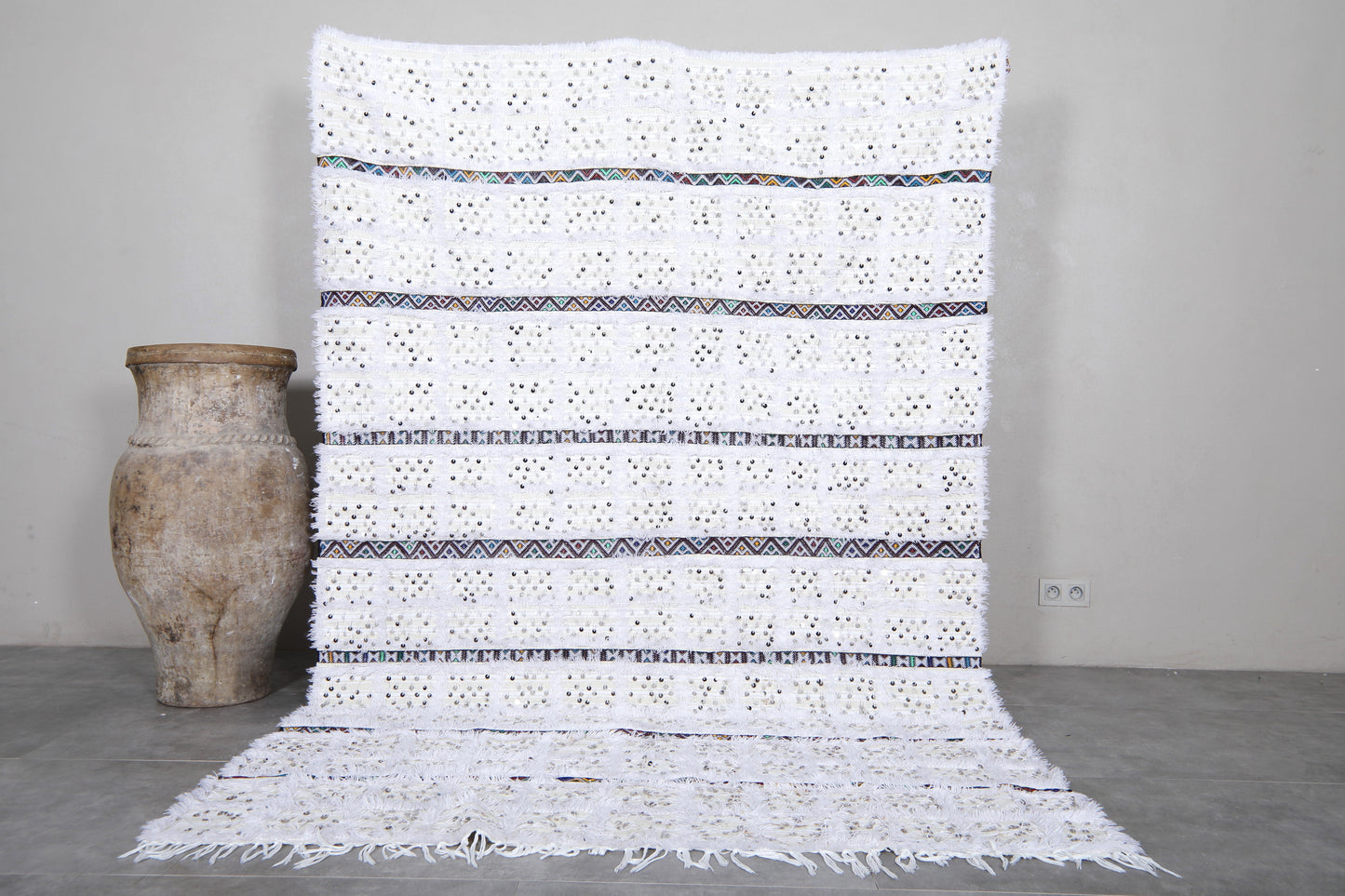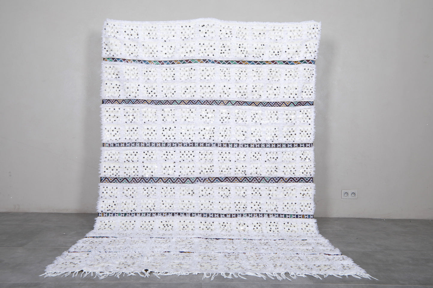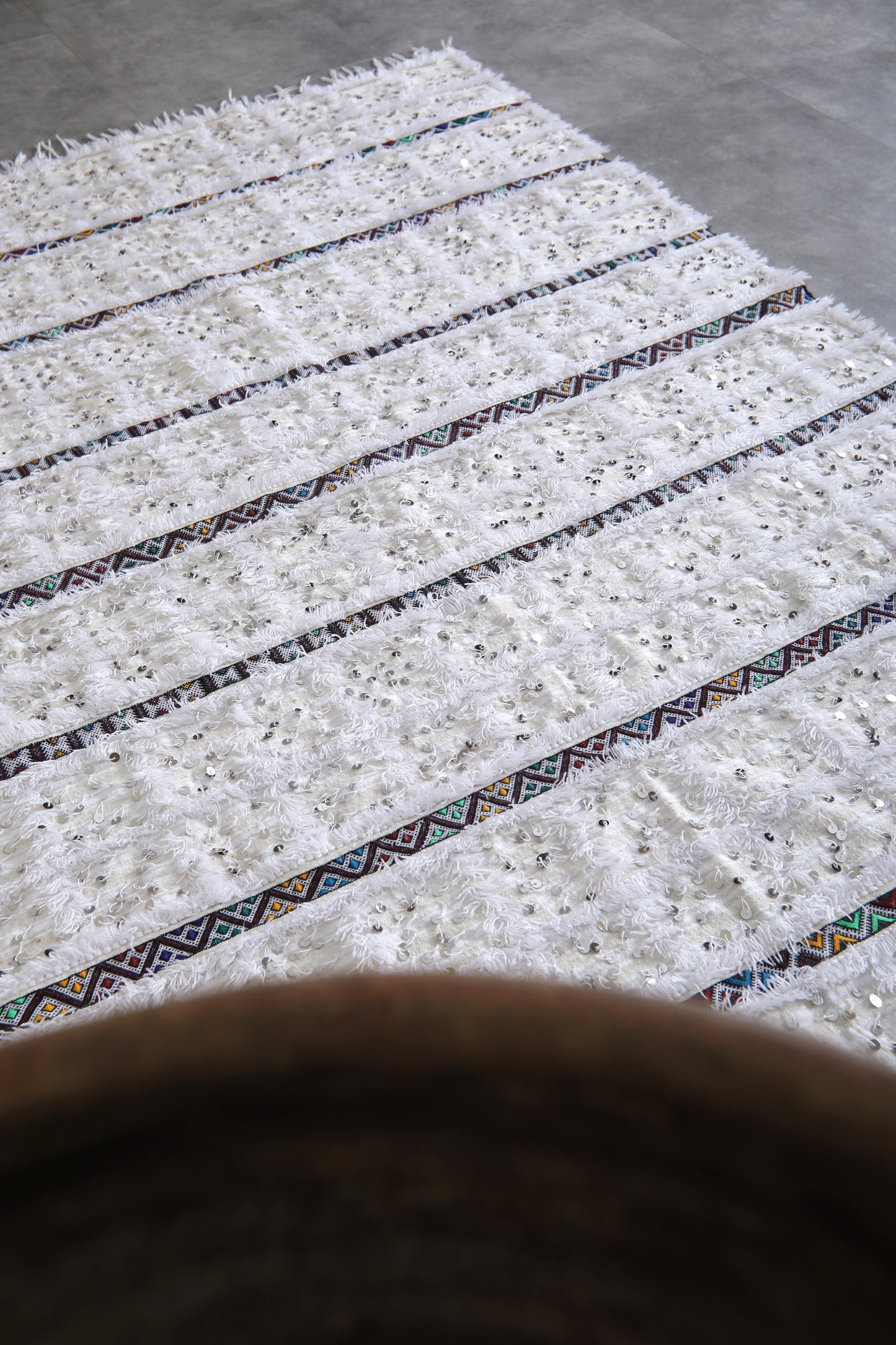 Moroccan Wedding Blanket Rug - 5.8 x 8.6 ft | Handmade Wool & Sequins