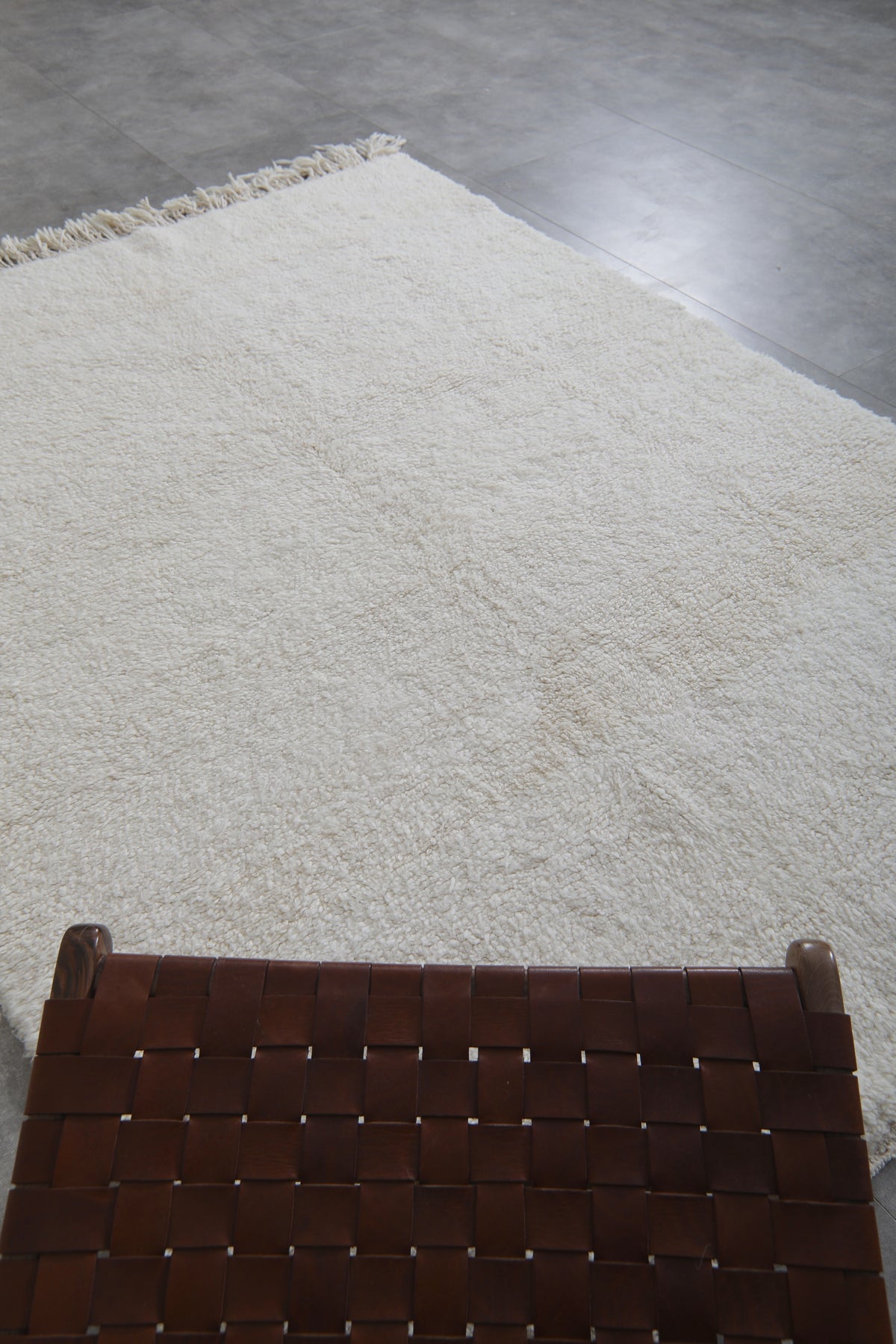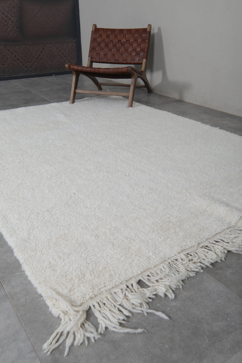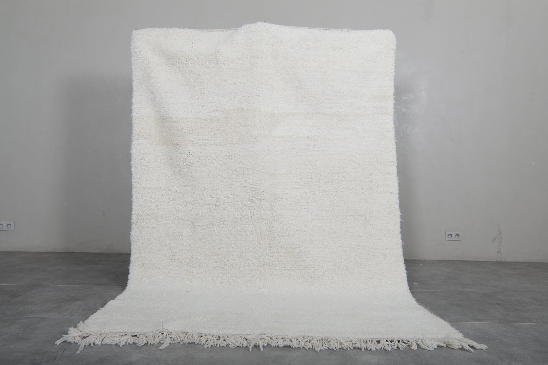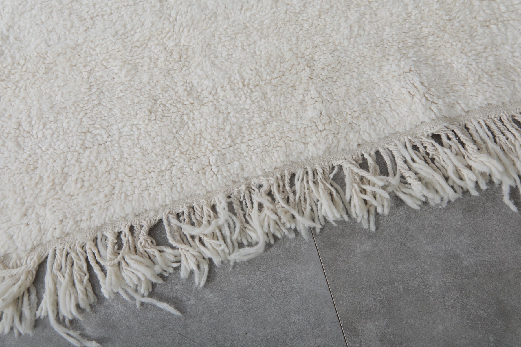 Minimalist Moroccan rug - 5.8 x 8 ft | Soft white shag with fringe