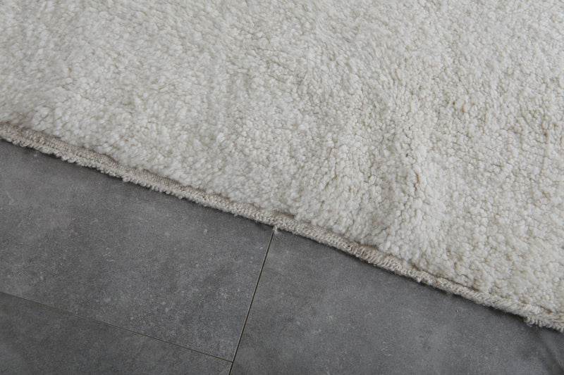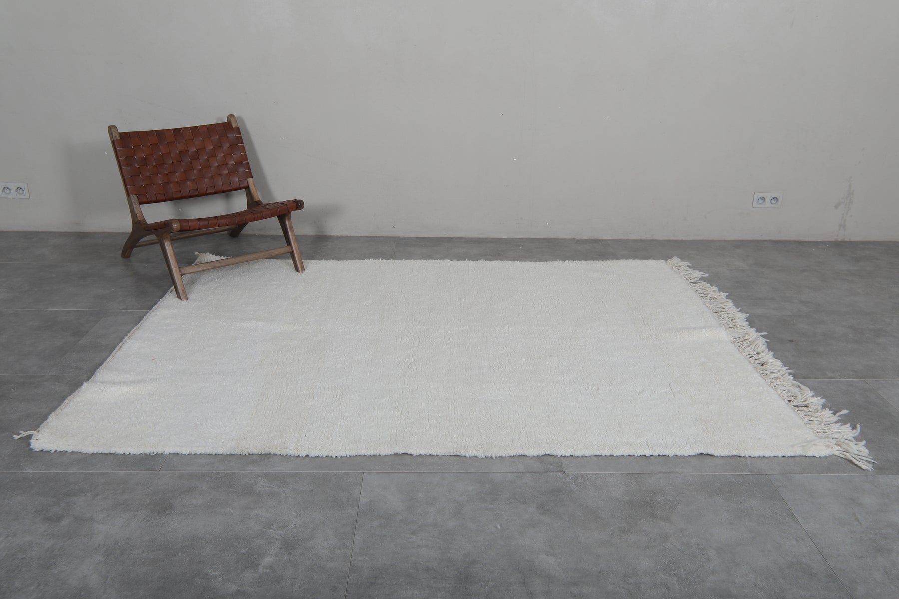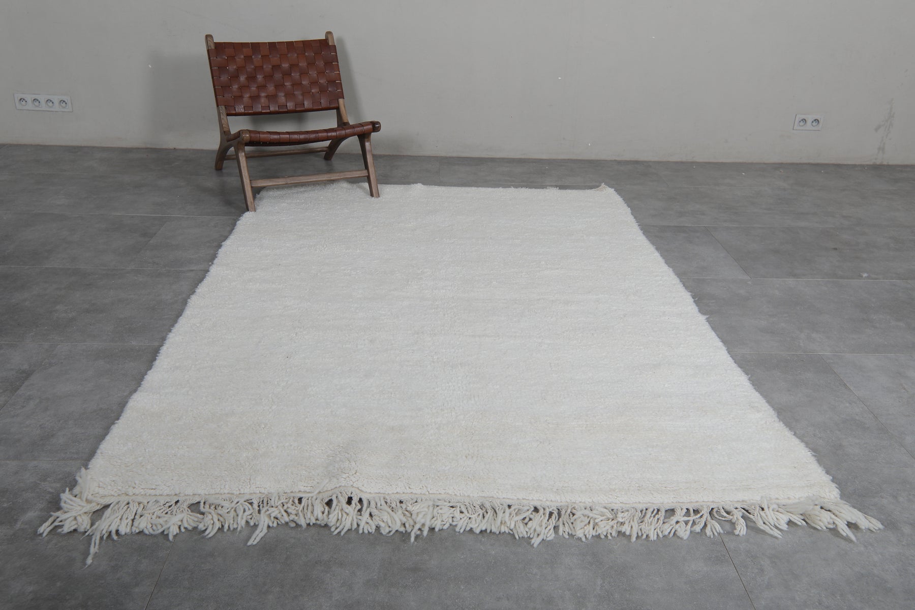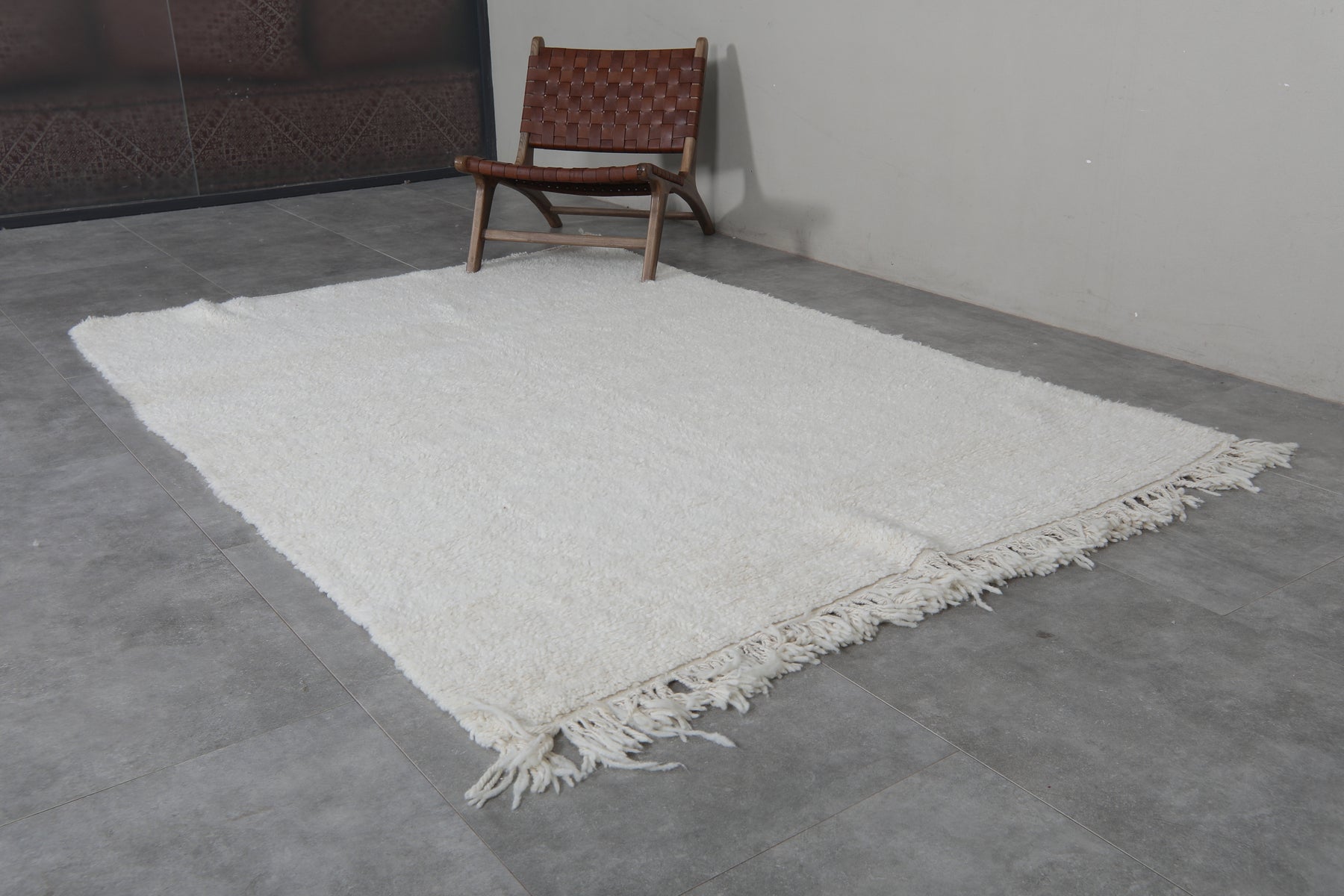 Minimalist Moroccan rug - 5.8 x 8 ft | Soft white shag with fringe