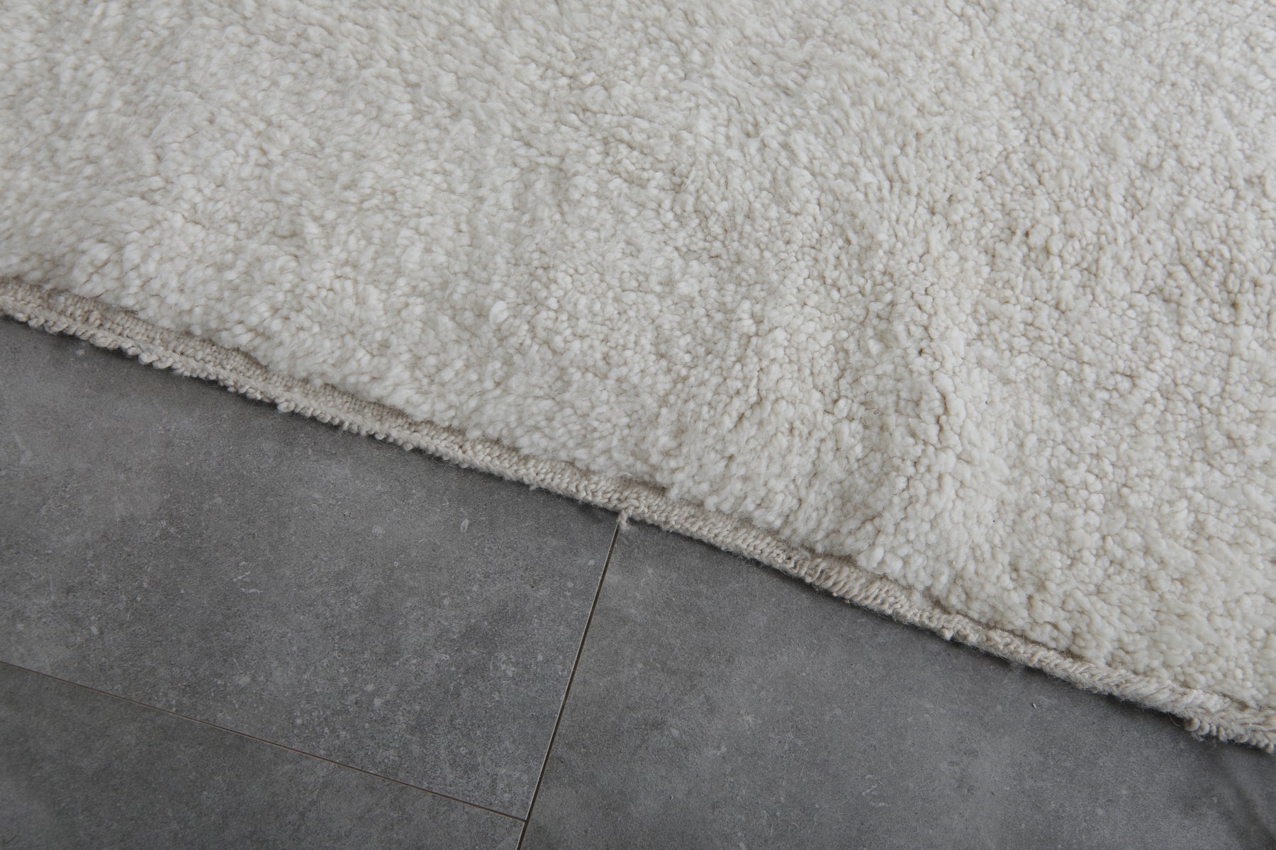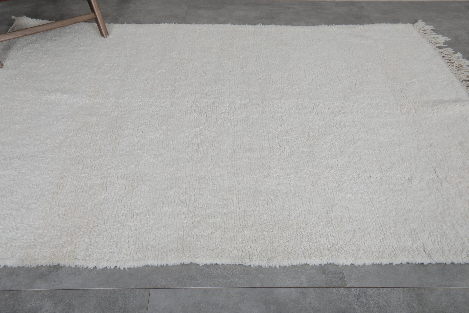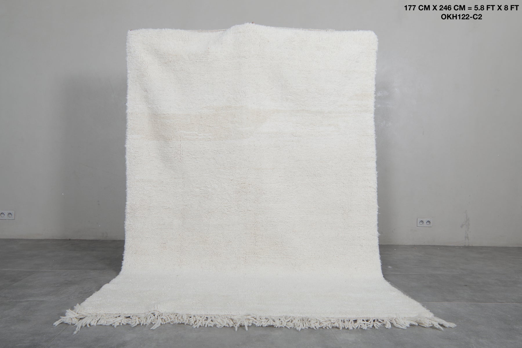 Bring simplicity and elegance to your space with this Minimalist Moroccan Rug, sized at 5.8 x 8 feet (177 CM x 246 CM). Handwoven in soft white with a plush shag texture and subtle fringe, this minimalist rug adds warmth and sophistication to any decor. Perfect for bedrooms, living rooms, or serene spaces.