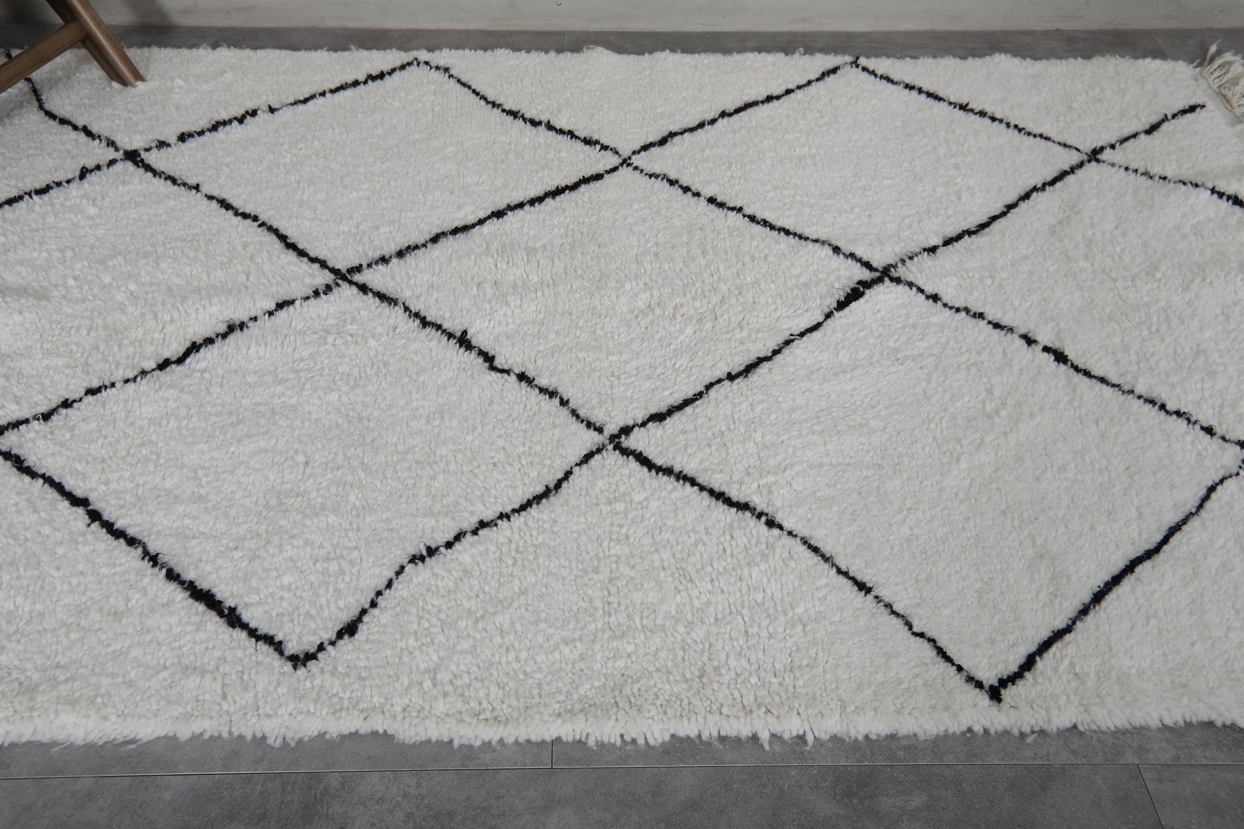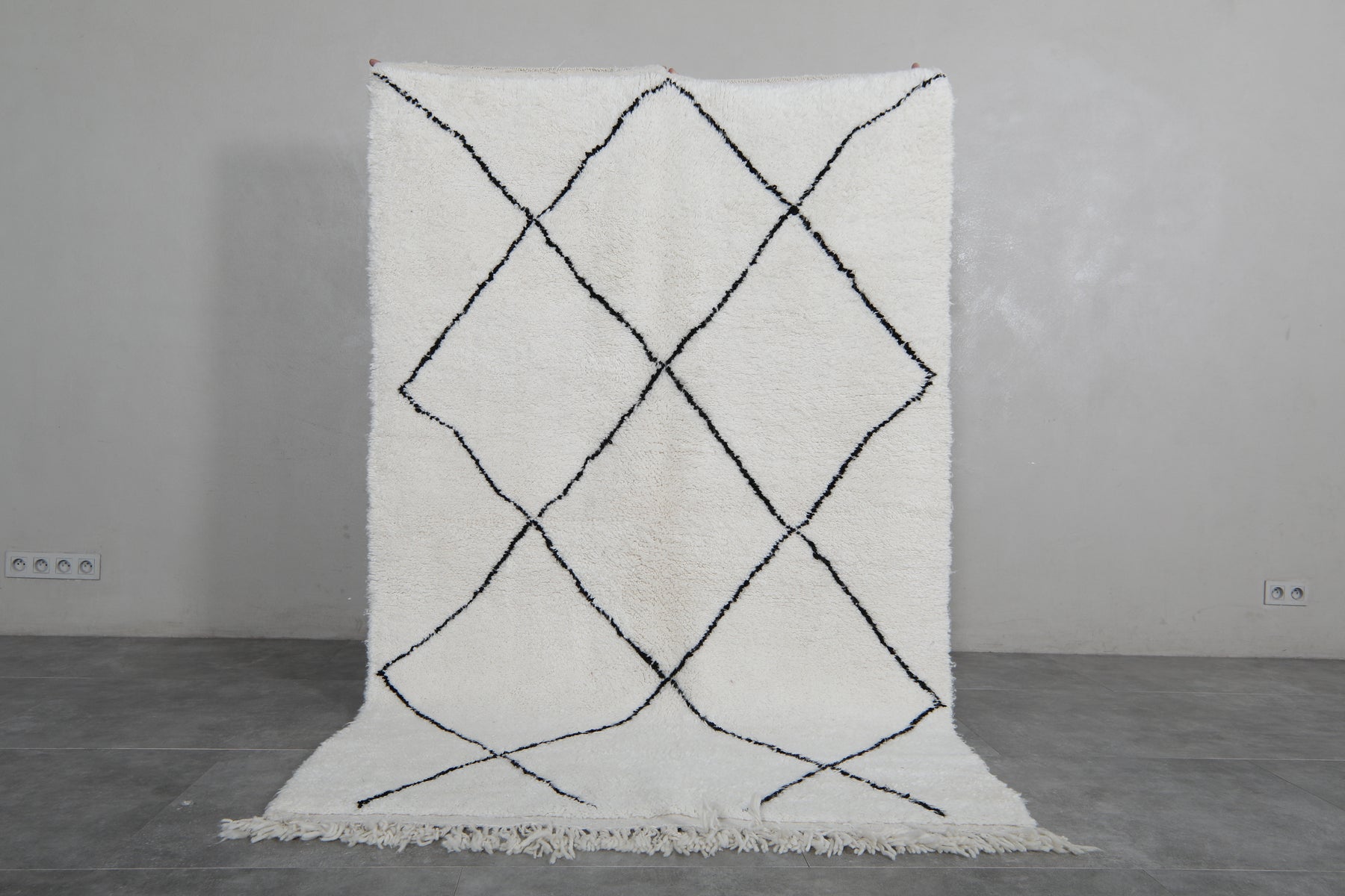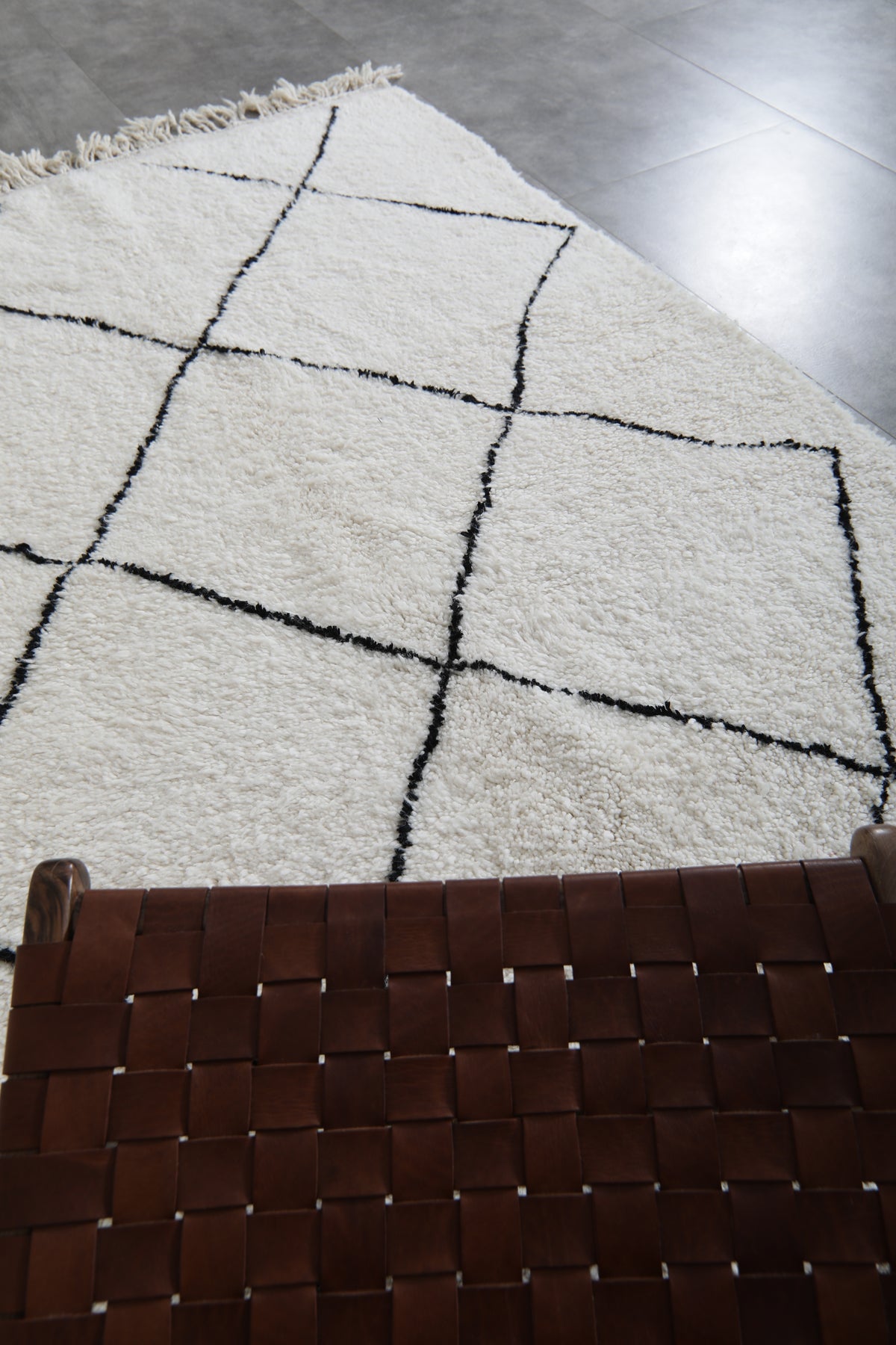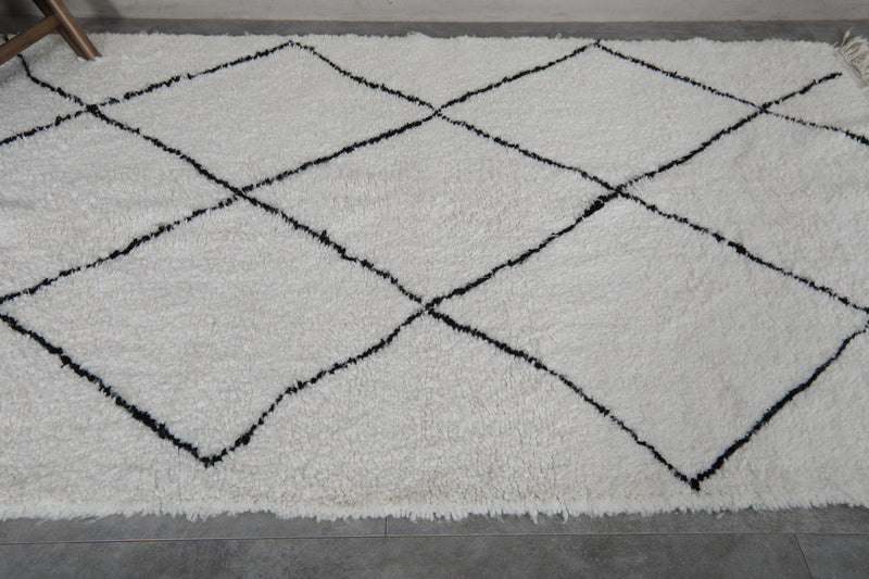 Modern Moroccan rug - 5 x 7.8 ft | White with black diamond pattern