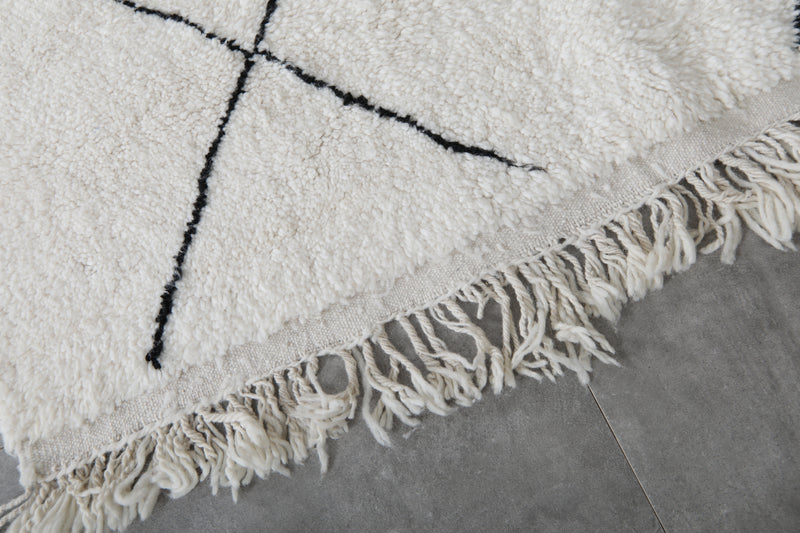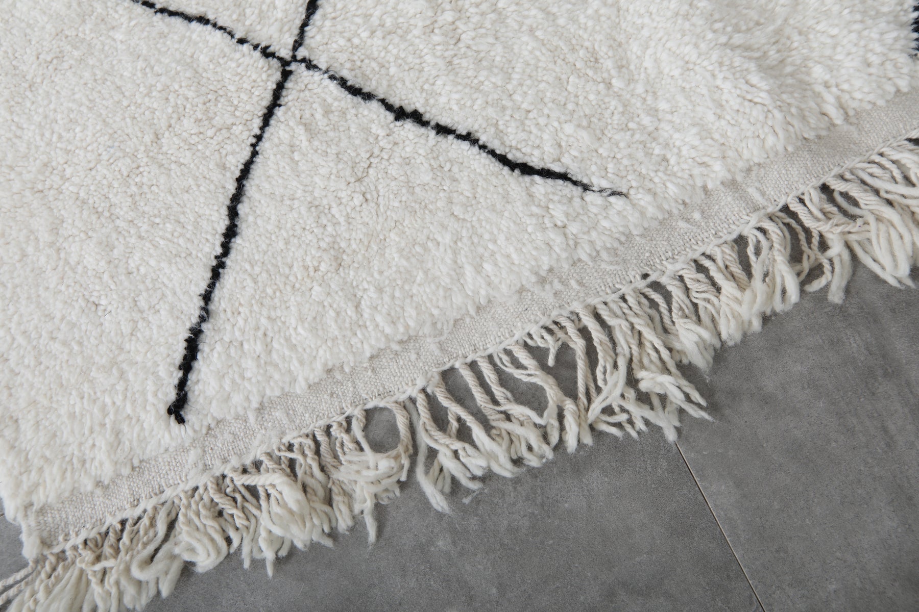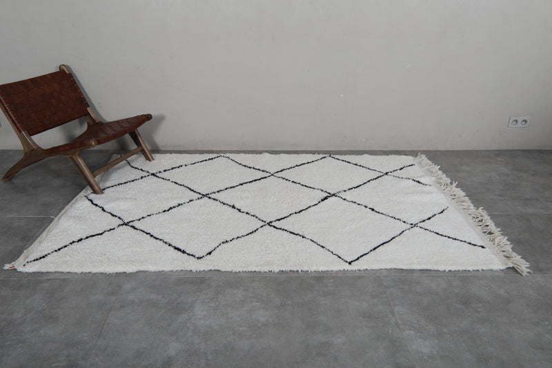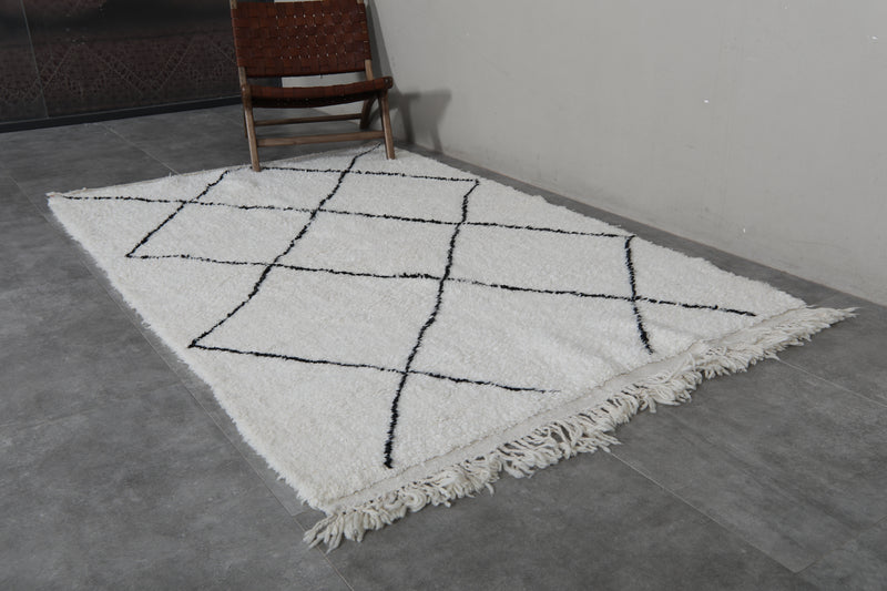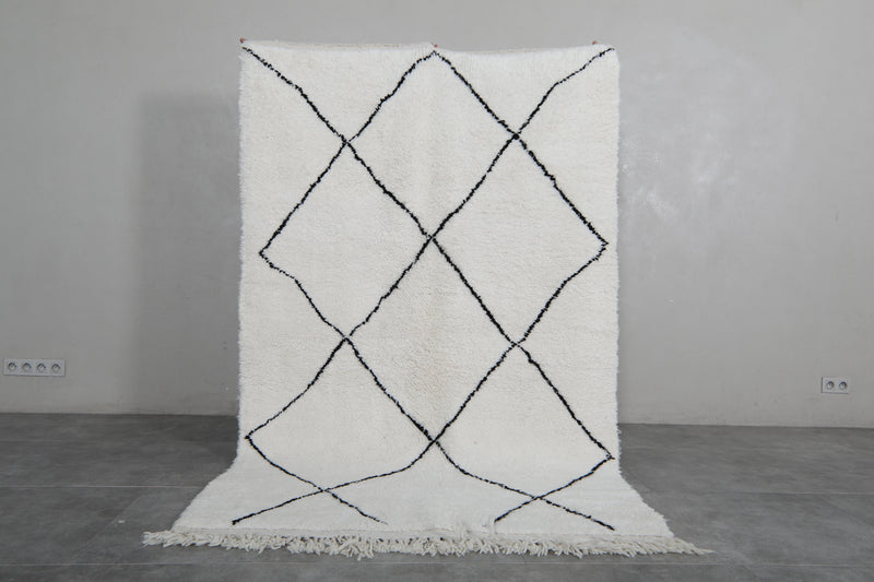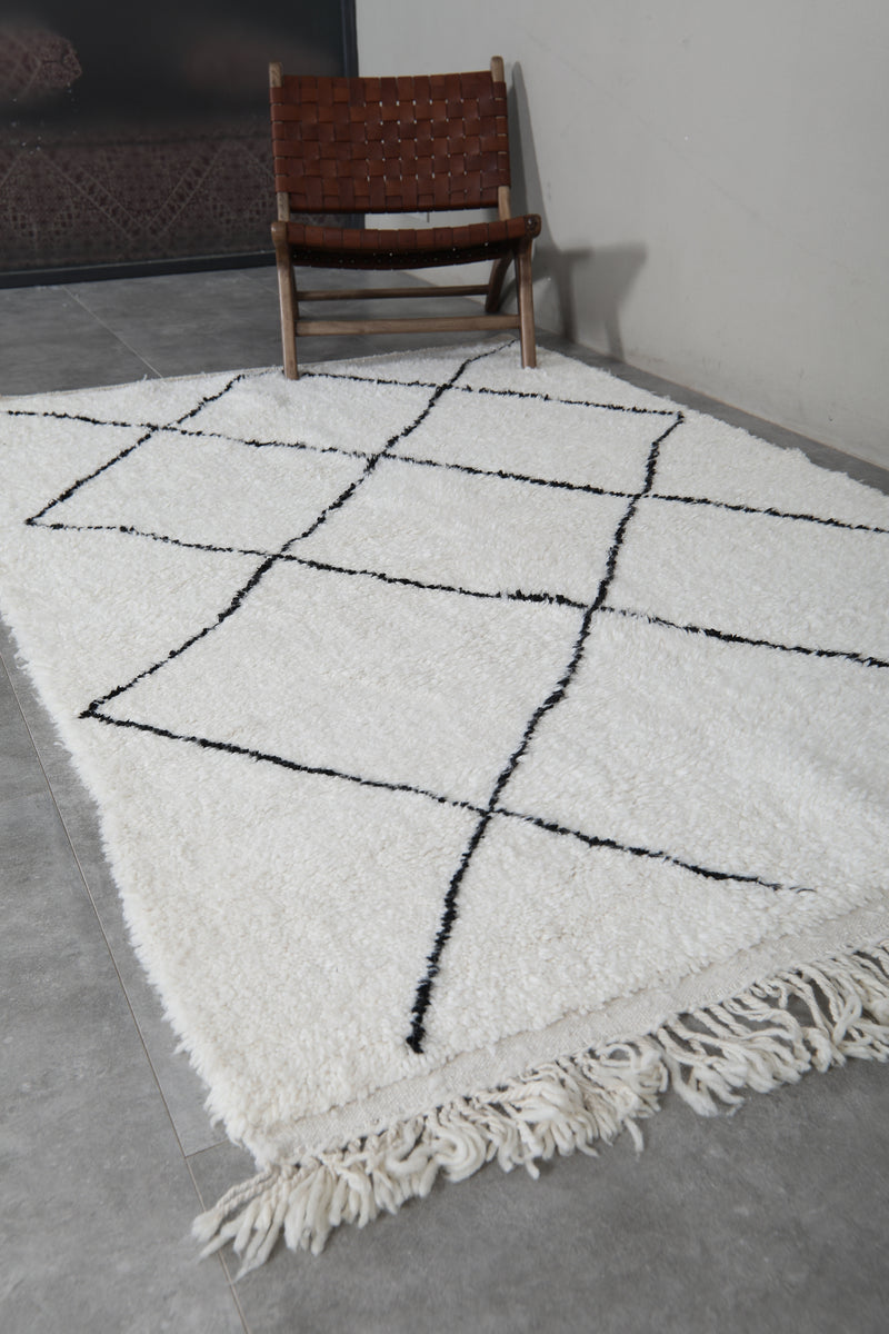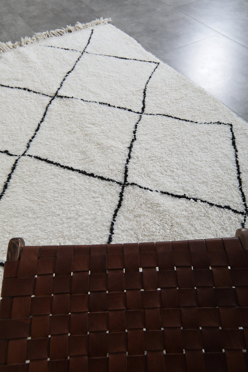 Modern Moroccan rug - 5 x 7.8 ft | White with black diamond pattern