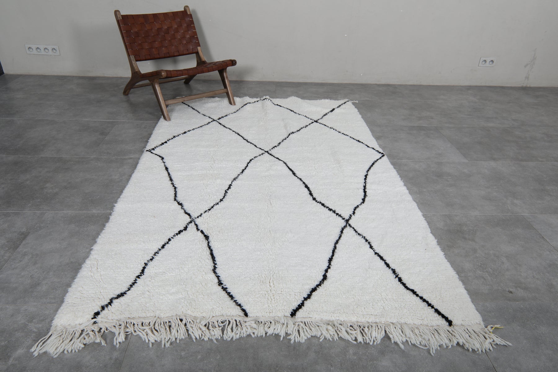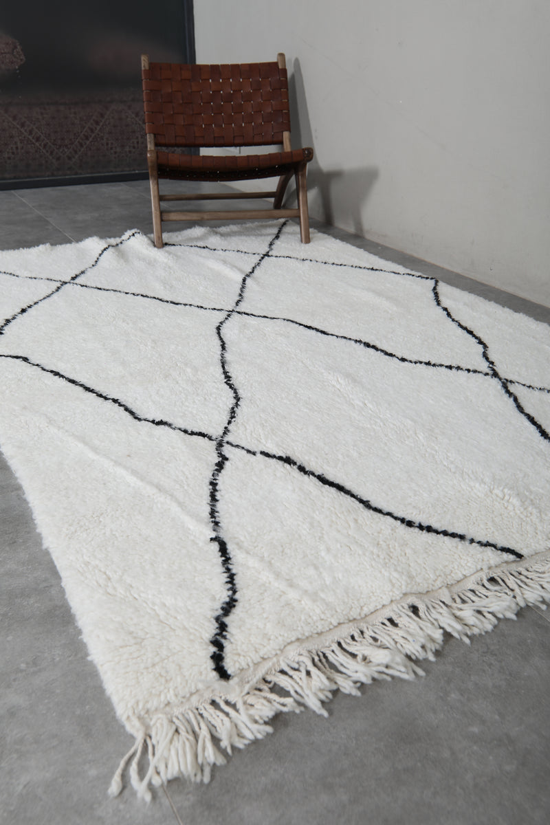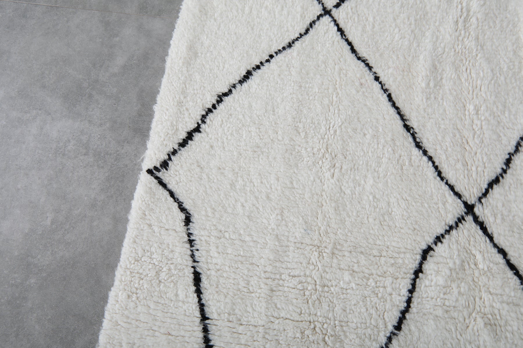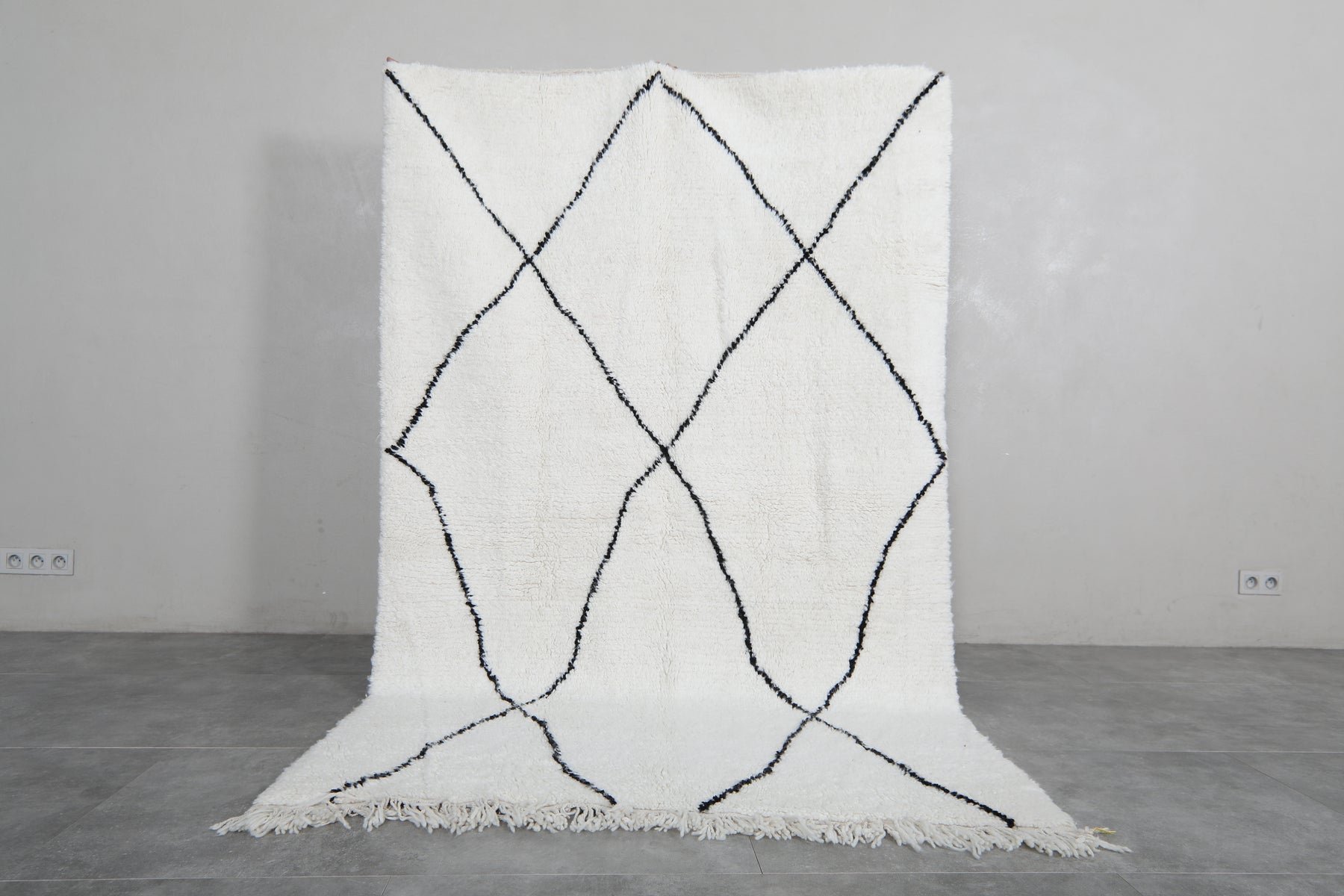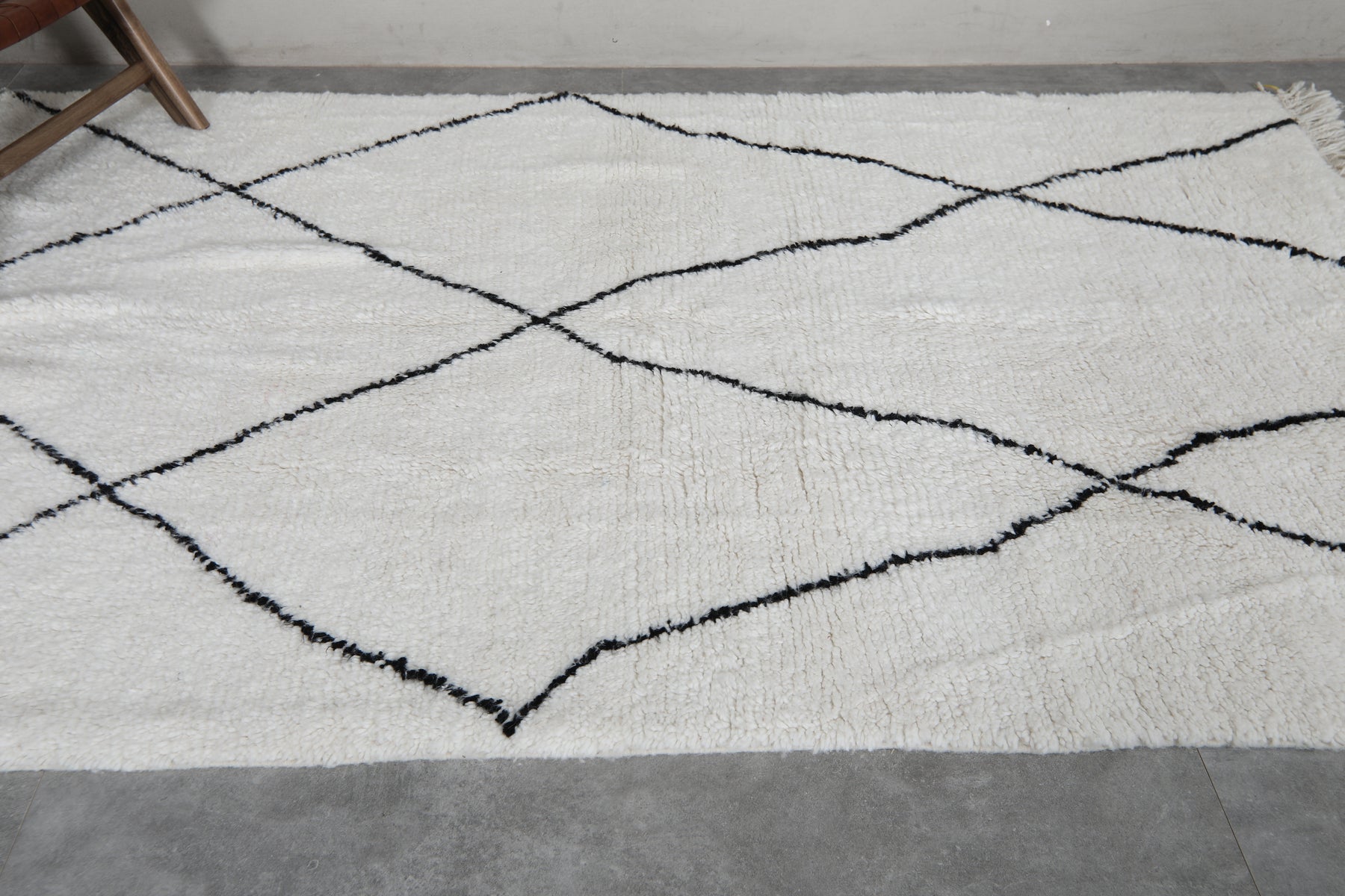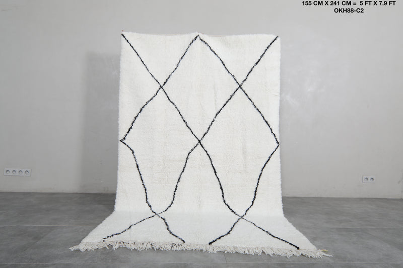 Classic Moroccan rug - 5 x 7.9 ft | White with black diamond pattern