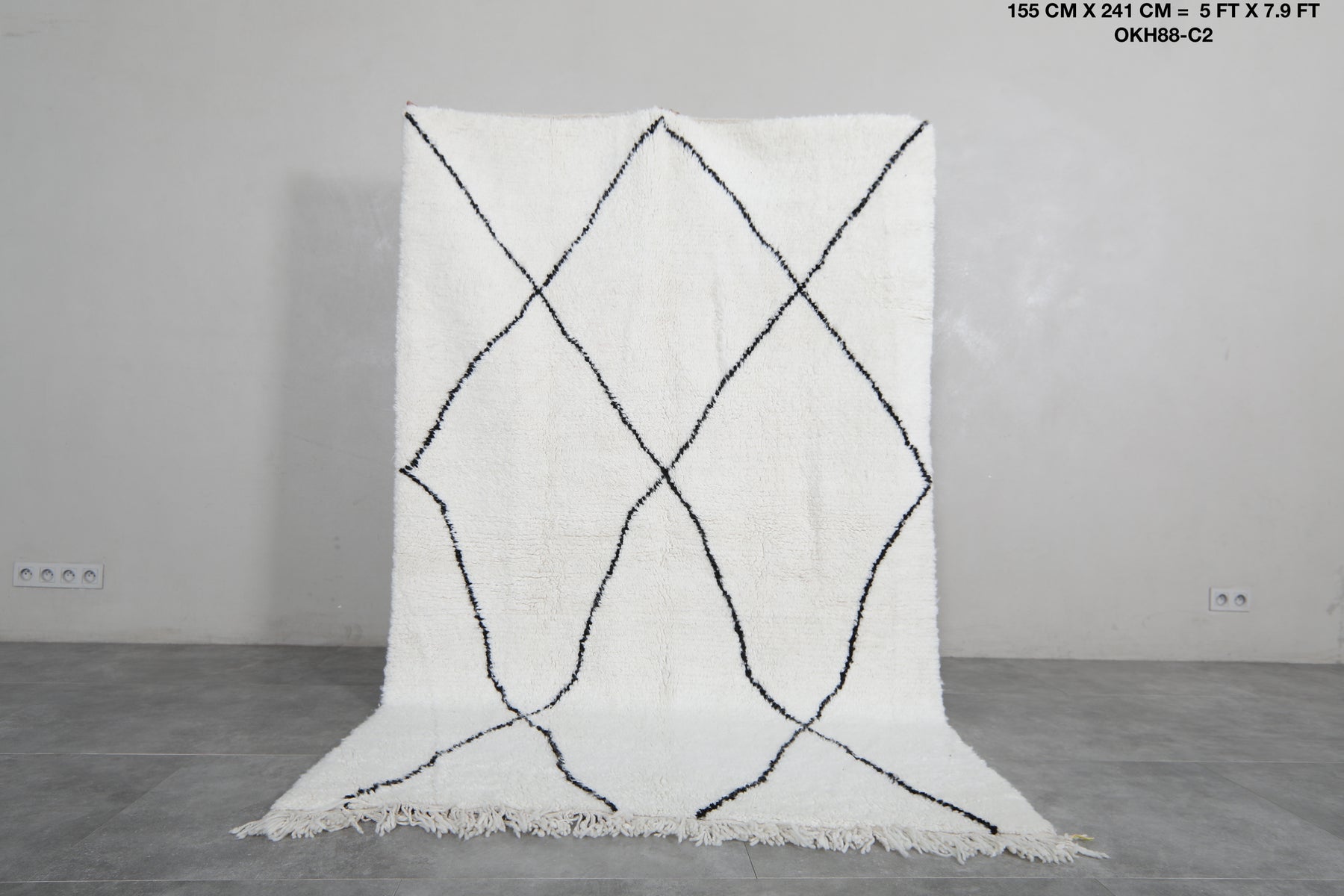 Enhance your home with this Classic Moroccan Rug, sized at 5 x 7.9 feet (155 CM x 241 CM). Featuring a timeless black diamond pattern on a clean white background, this handwoven rug brings a touch of Moroccan elegance to any setting. Perfect for living rooms, bedrooms, or study areas, it blends modern and traditional styles effortlessly.