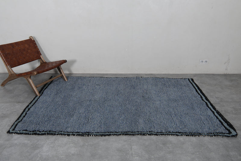 Moroccan rug 5 x 8 ft - Handwoven blue wool with black border - Beni ourain rugs