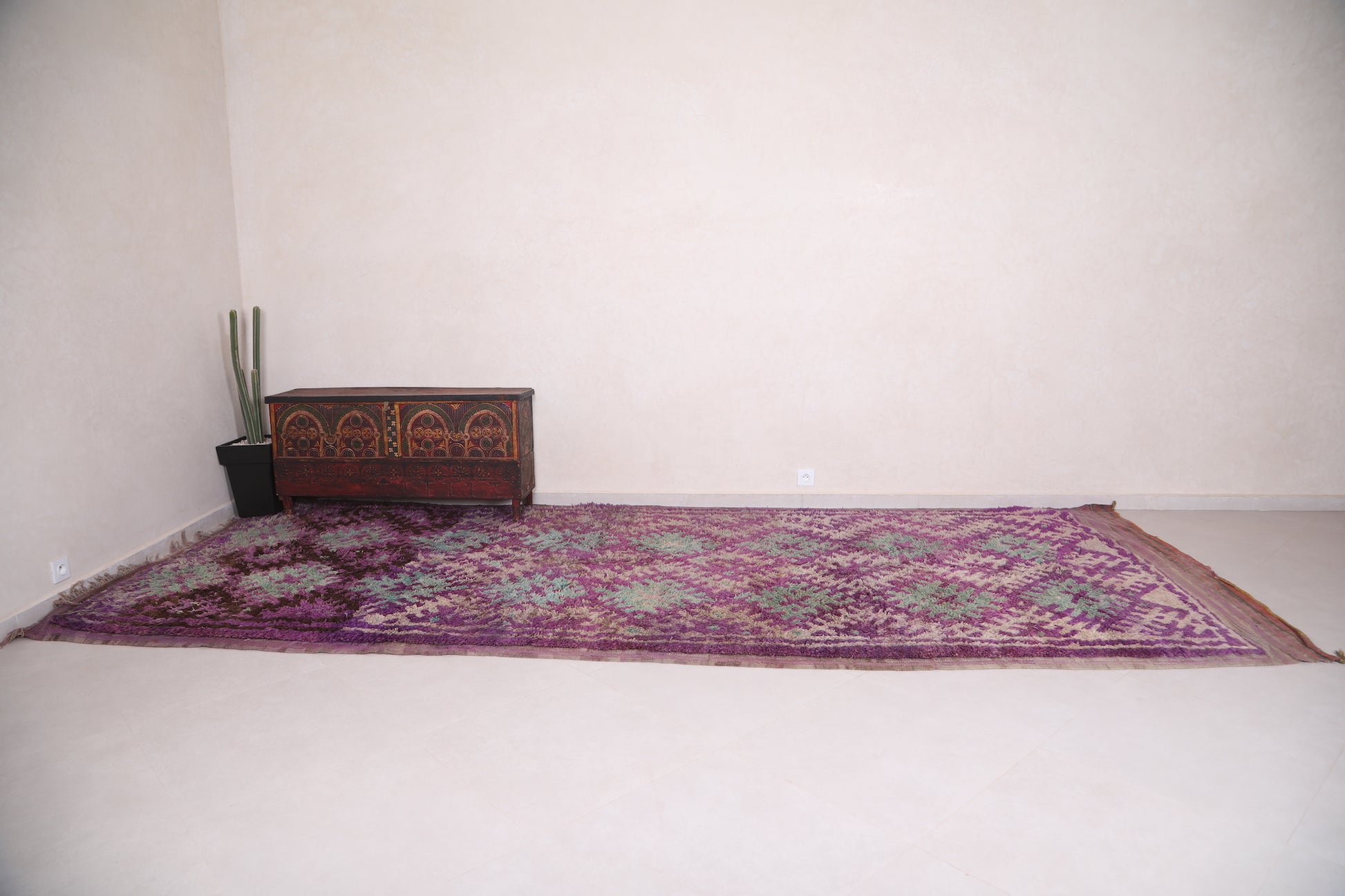 Moroccan Rug 6.2 x 15 Feet - Rich Purple and Green Diamond Design - moroccan rug