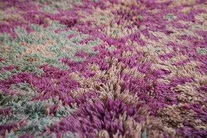 This 6.2 x 15 feet Moroccan rug showcases a striking purple and green diamond pattern, blending bold artistry with traditional craftsmanship. Handwoven from high-quality wool, its intricate design offers both durability and softness, making it a luxurious addition to any home. The soft hues and geometric motifs create a statement piece, perfect for hallways, living rooms, or bedrooms. Whether styled in a modern or bohemian space, this rug brings warmth, texture, and Moroccan charm to your décor.