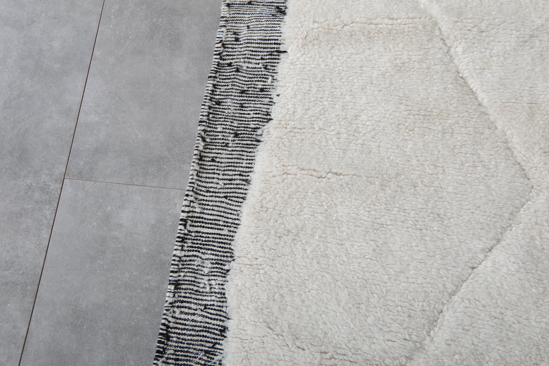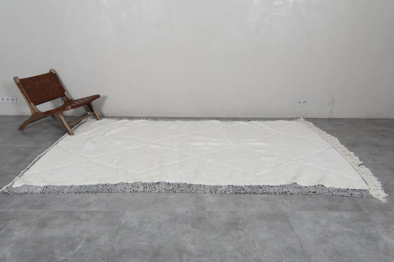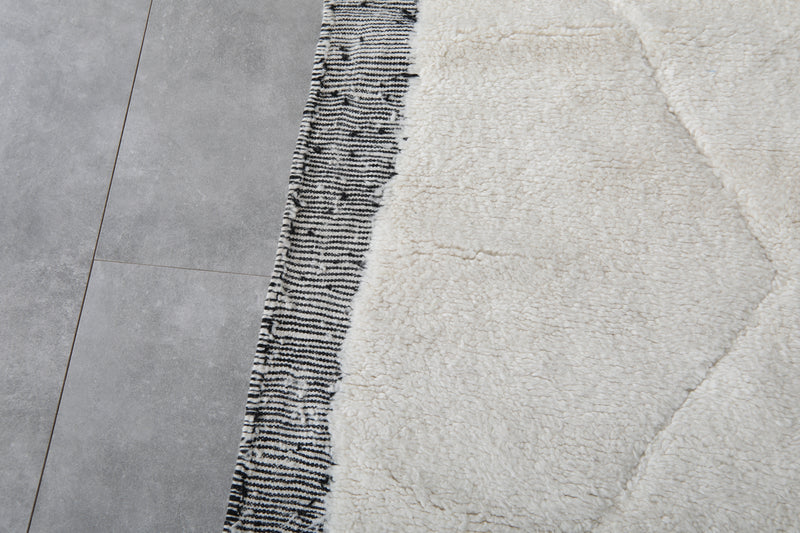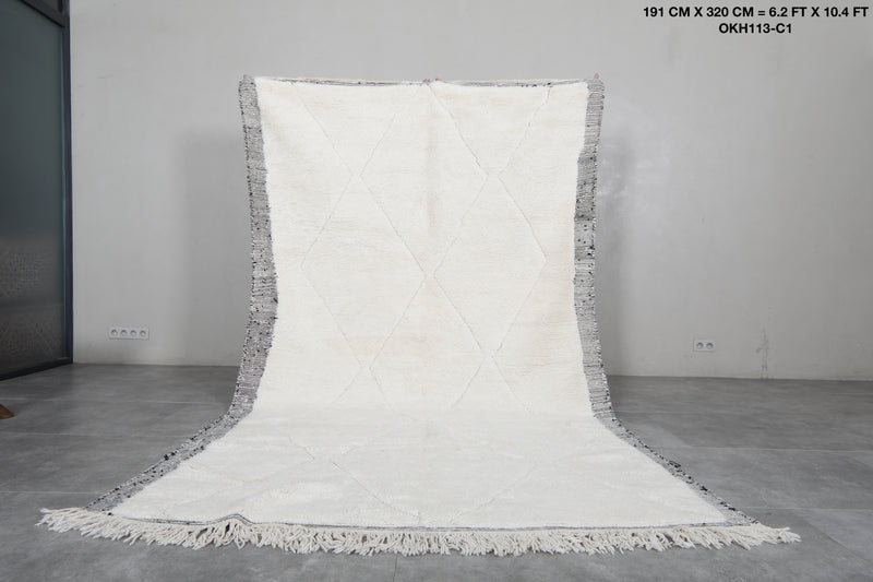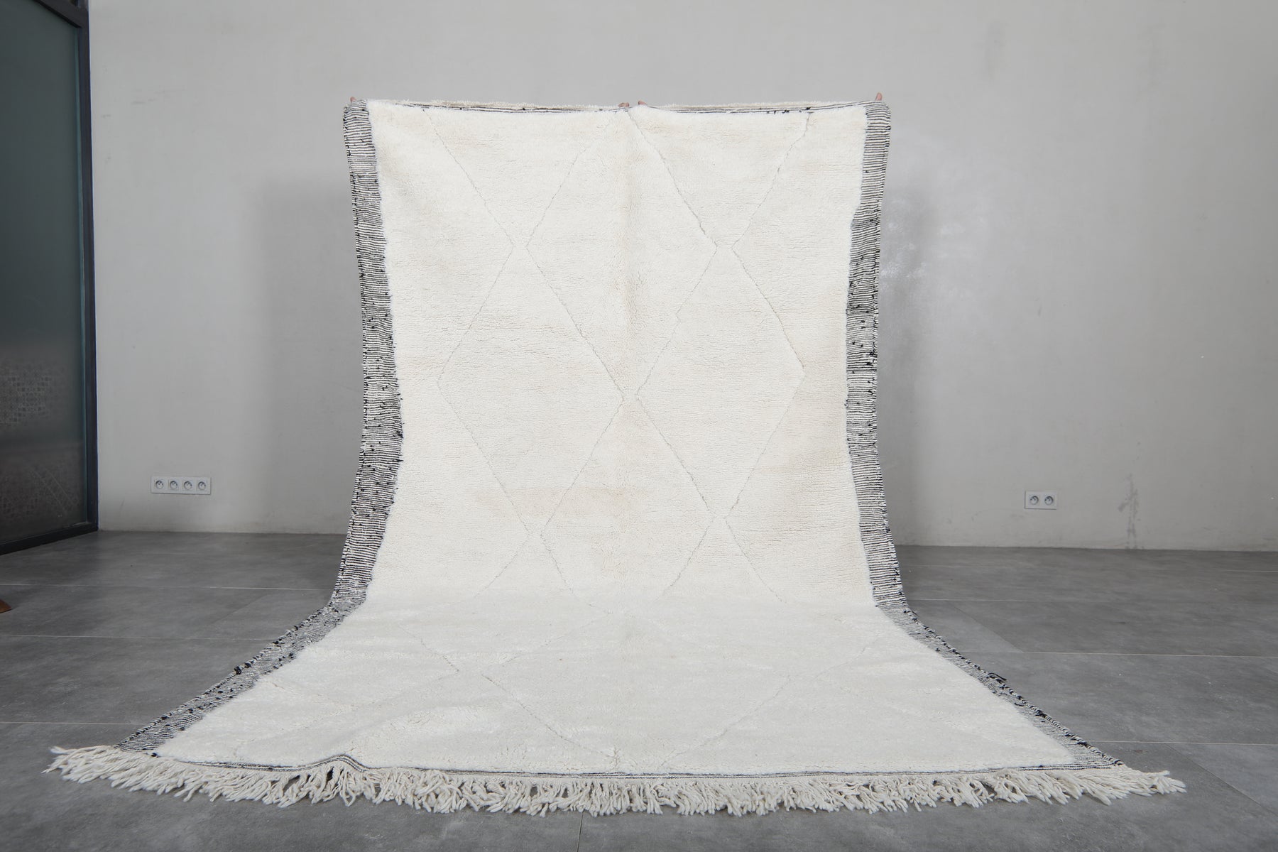Elegant Moroccan rug - 6.2 x 10.4 ft | White diamond pattern with gray border