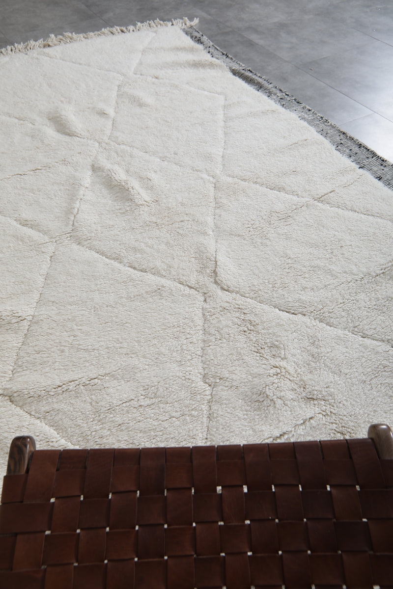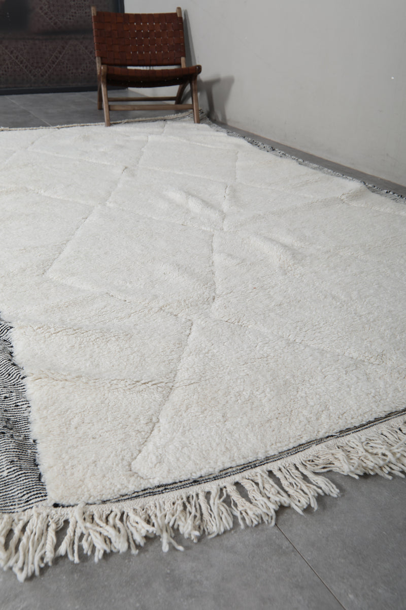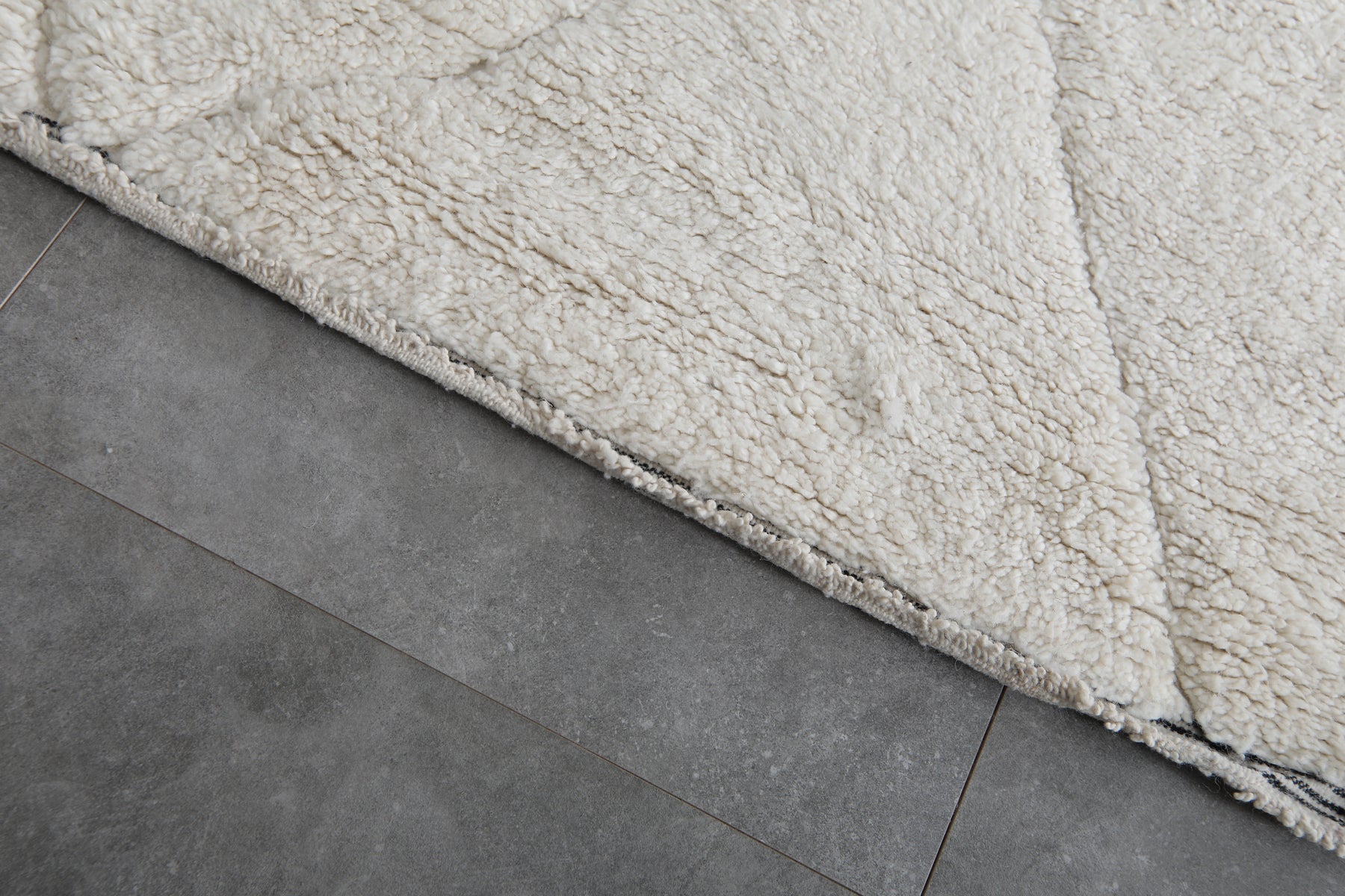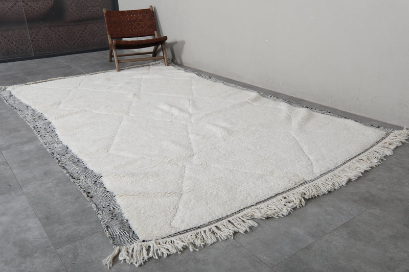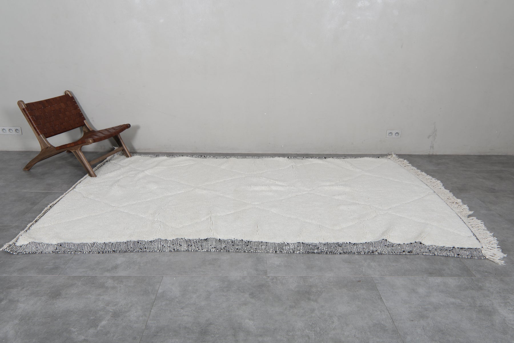 Elegant Moroccan rug - 6.2 x 10.4 ft | White diamond pattern with gray border