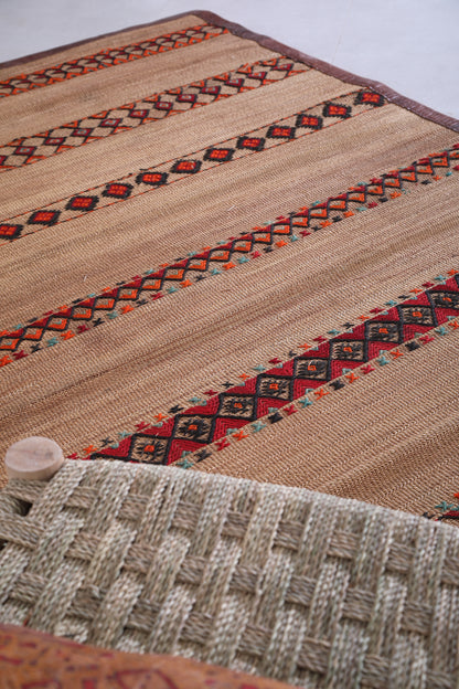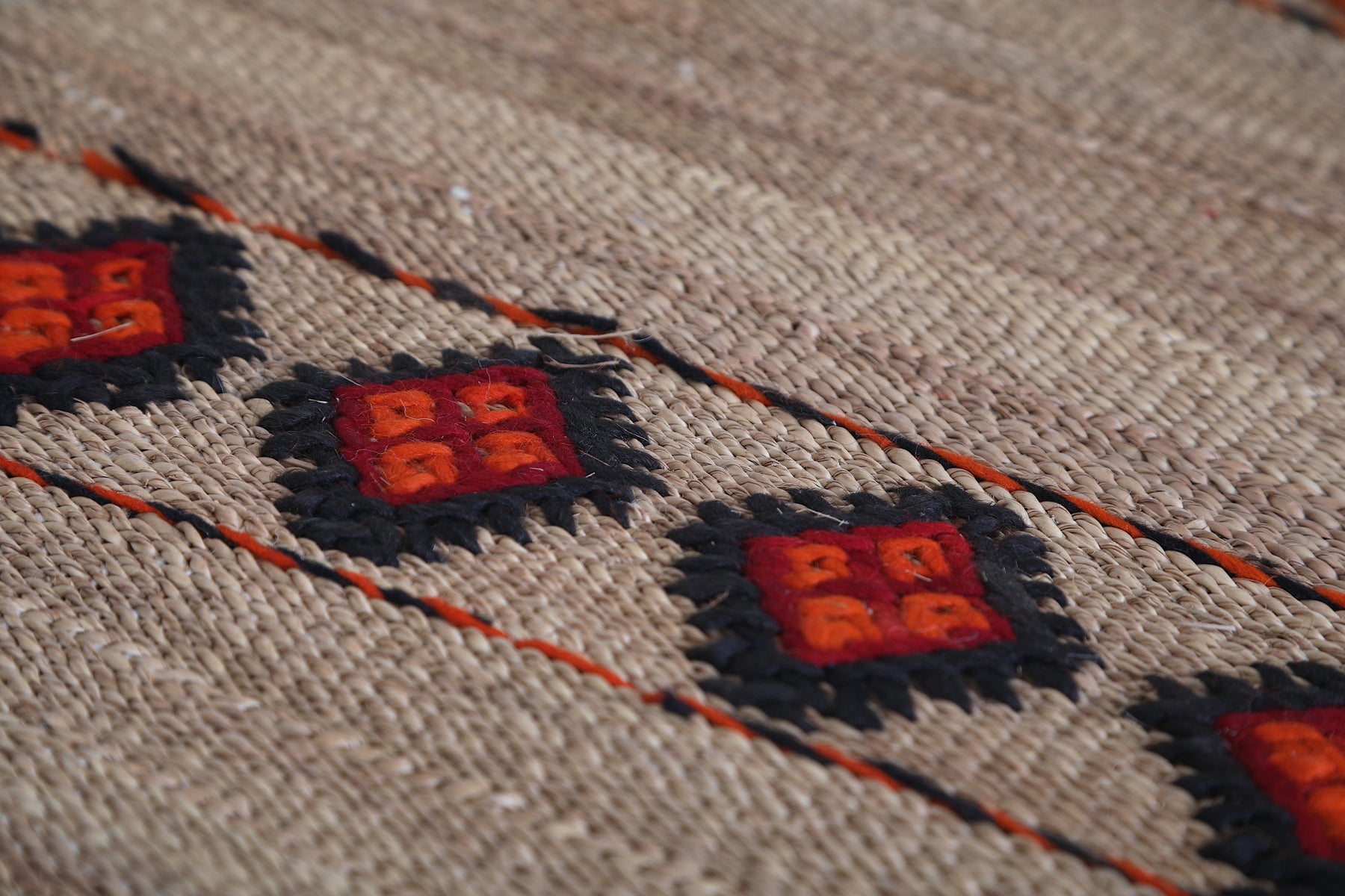 Add timeless Moroccan style and cozy comfort to your home with this handmade flatwoven Berber carpet. Expertly crafted by skilled artisans, this versatile piece blends traditional patterns with practical design, making it a perfect addition to any space. Its lightweight construction allows for easy styling, while its intricate details bring authentic cultural charm.