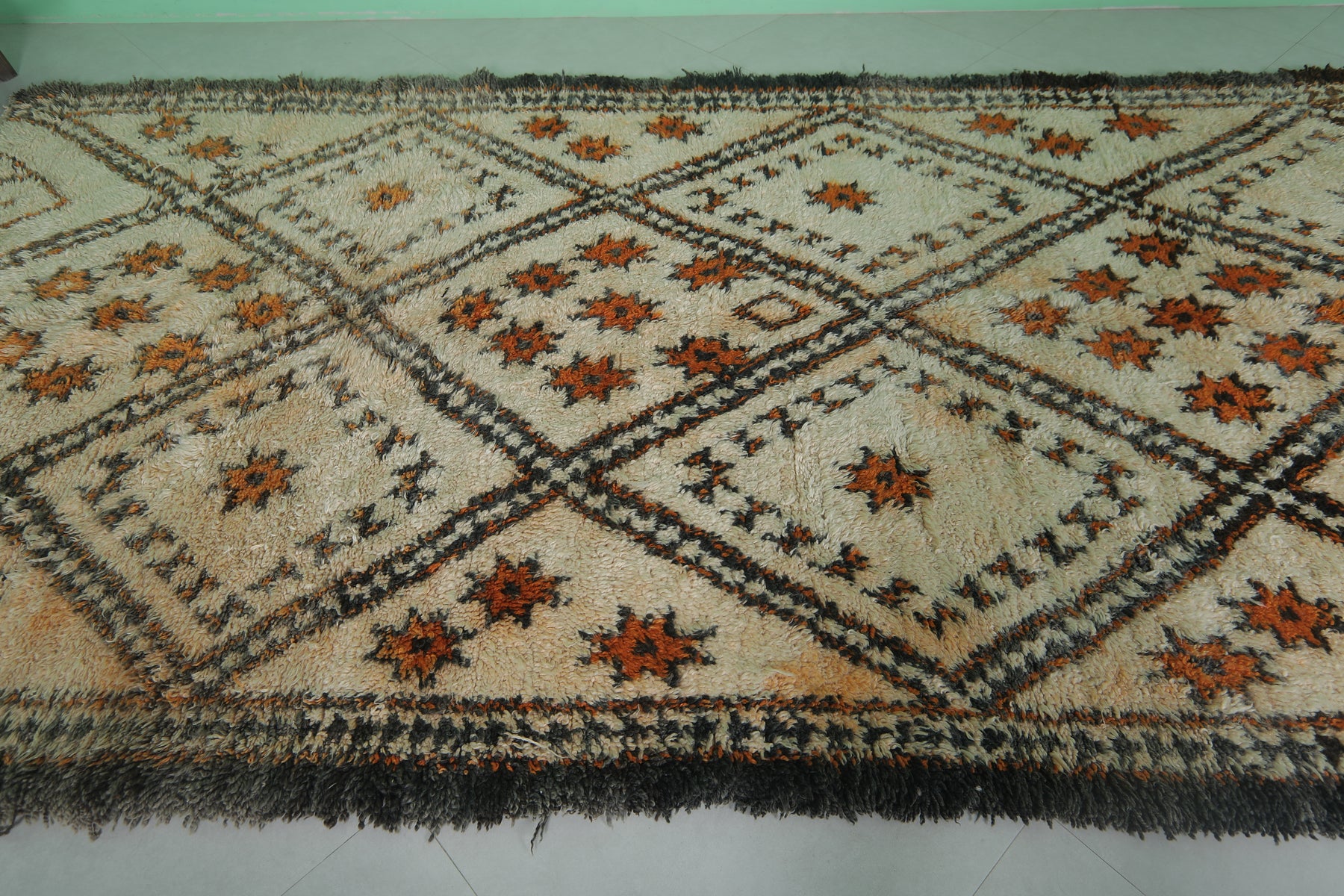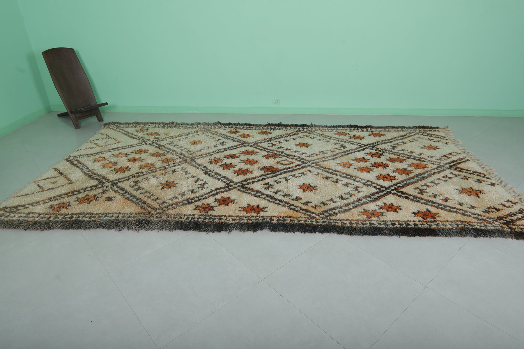 Vintage Moroccan rug - 6.3 x 12.2 ft | Diamond & floral pattern in warm tones