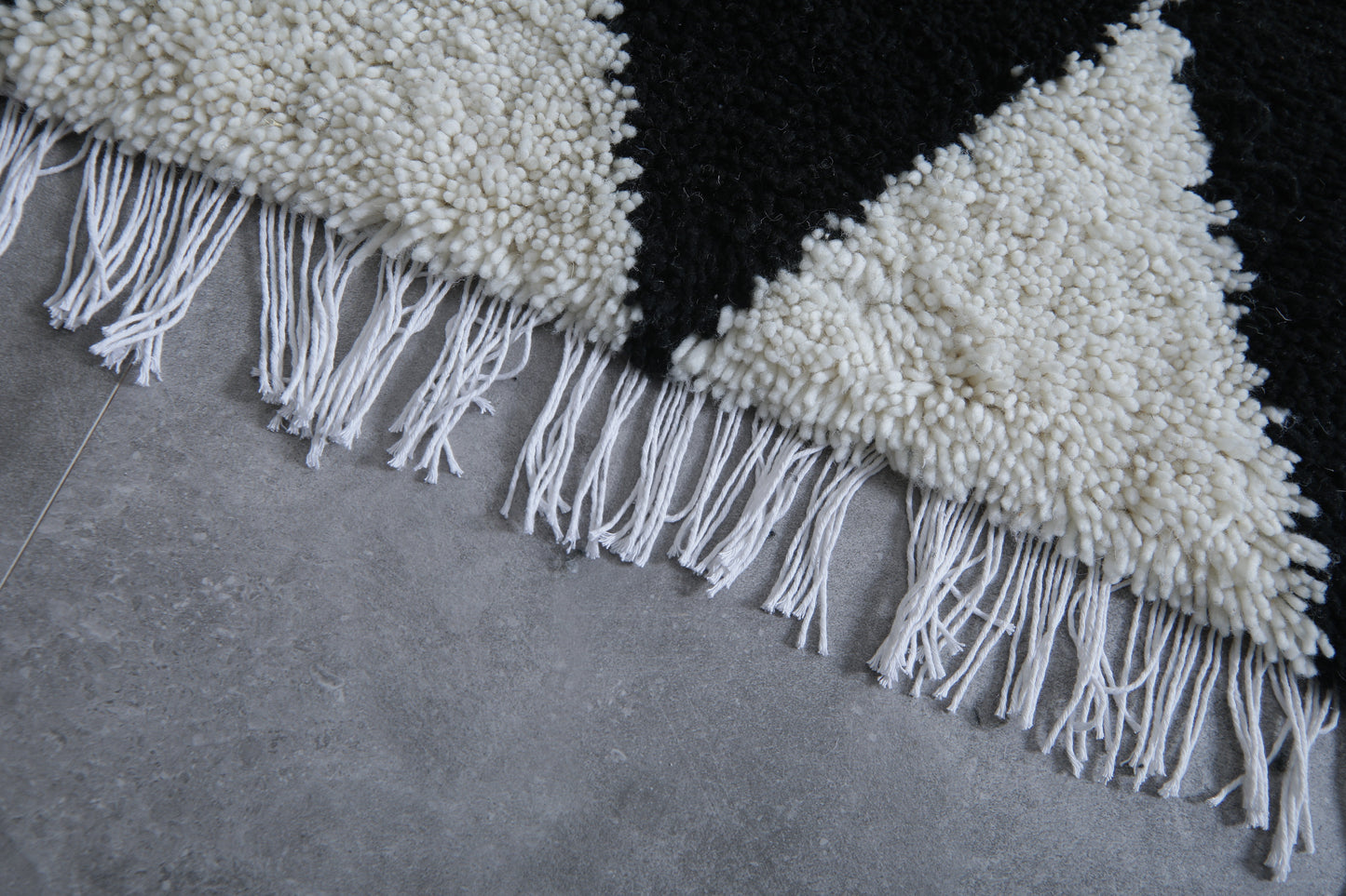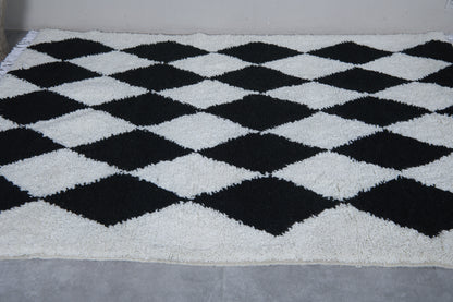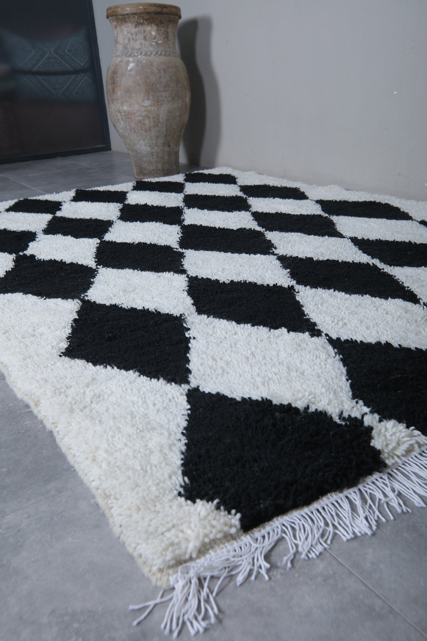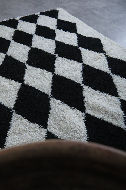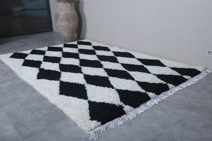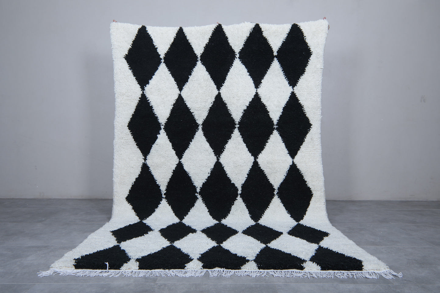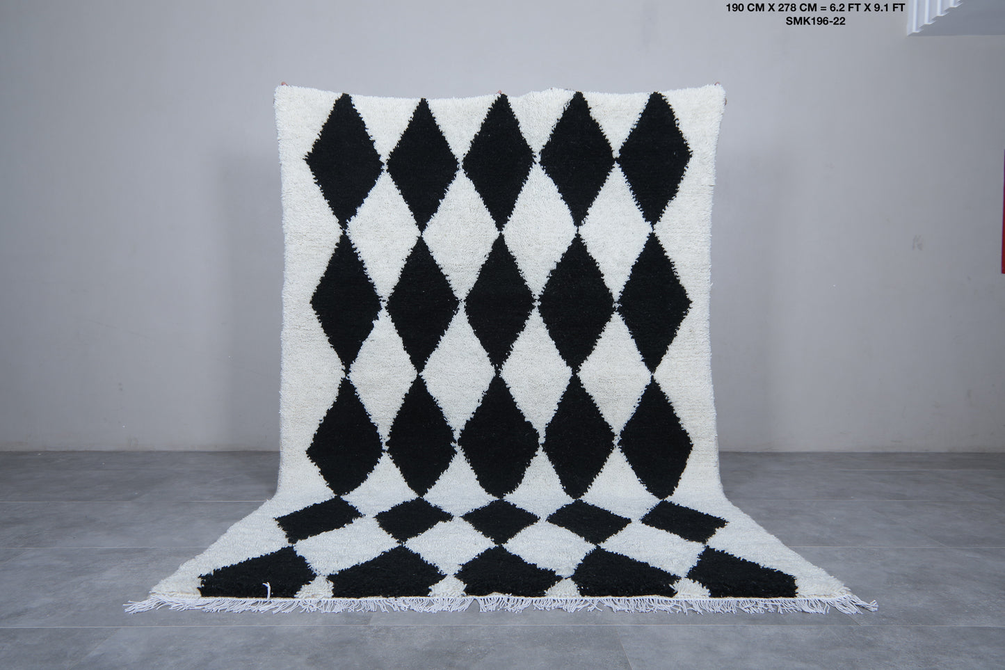 Elevate your decor with this handcrafted Moroccan Beni Ourain rug, measuring 6.2 x 9.1 feet (190 CM x 278 CM). This timeless piece features a striking black-and-white diamond pattern, embodying elegance and modern sophistication. Made from 100% premium wool, it offers a plush texture and luxurious feel underfoot while ensuring durability. Perfect for living rooms, bedrooms, or office spaces, this rug brings a bold geometric design and authentic Moroccan craftsmanship to your home. Add character and comfort with this versatile and stylish accent rug.