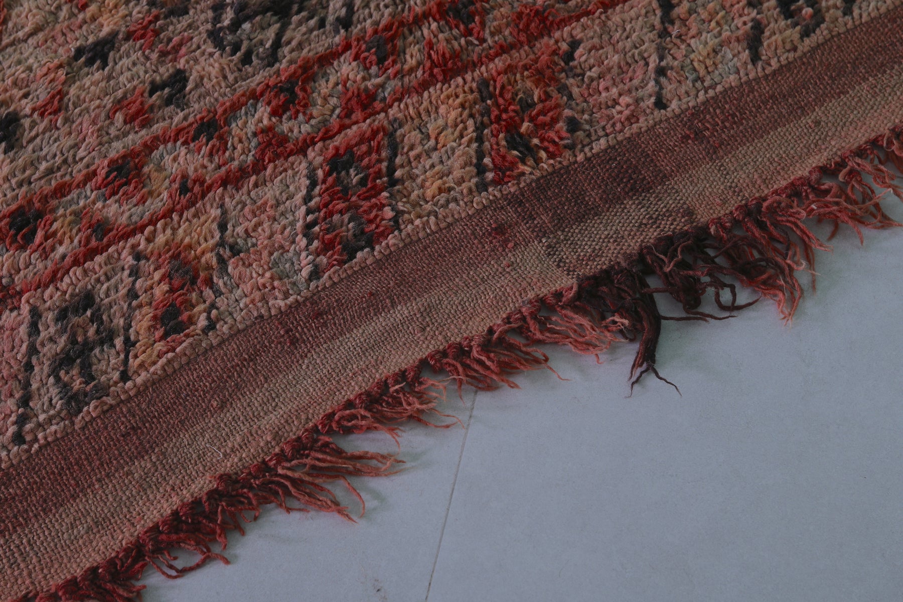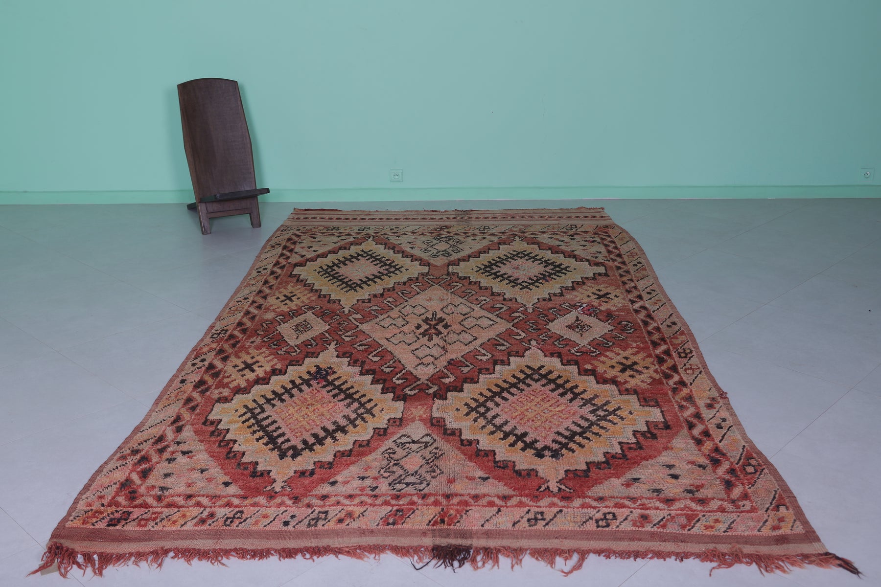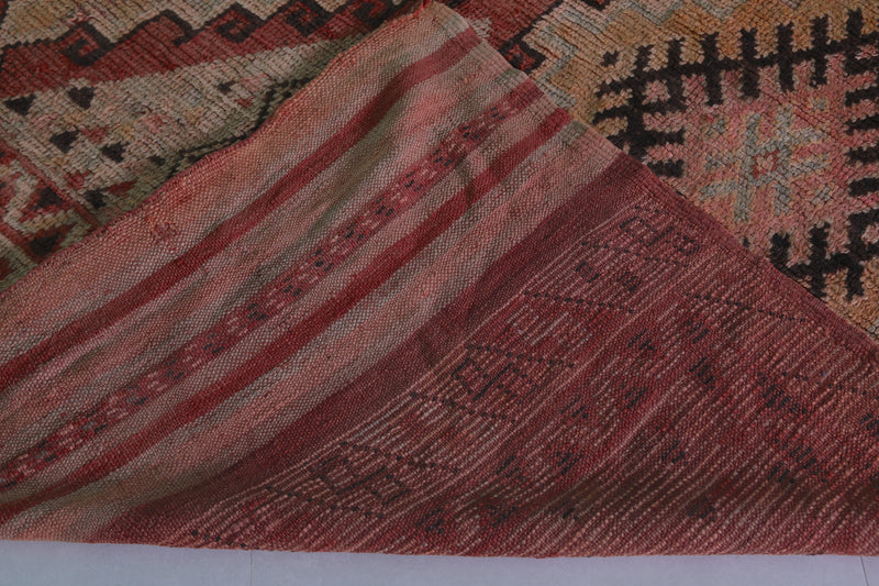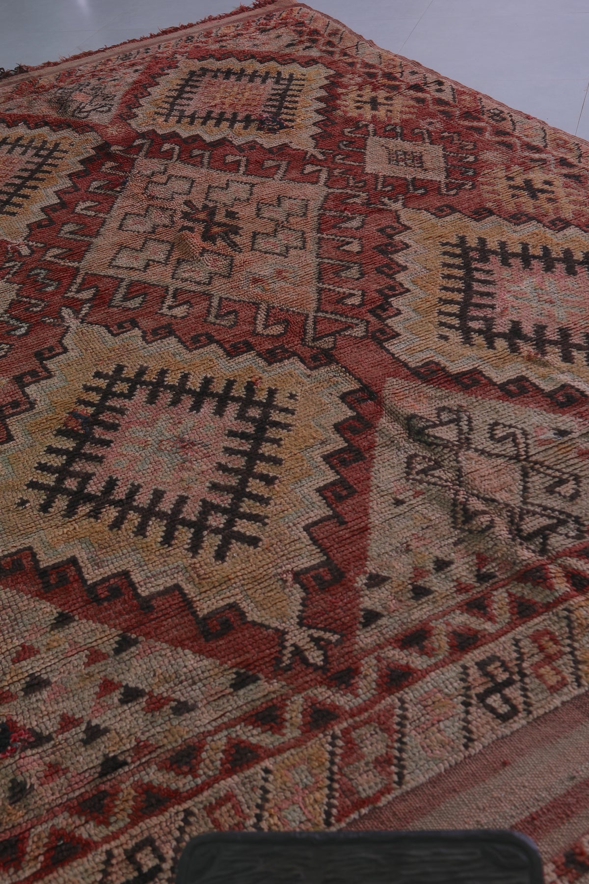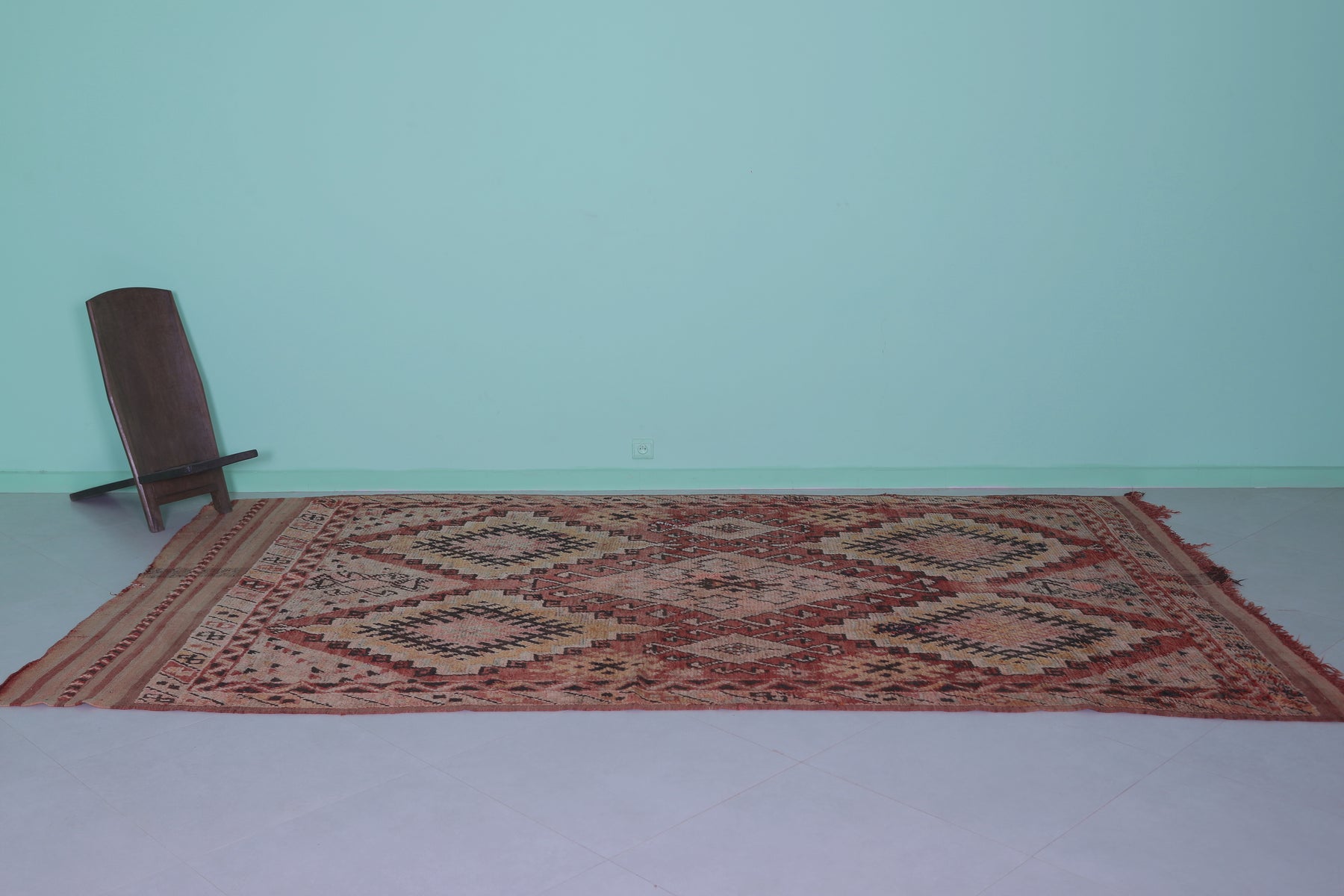 Enhance your space with this handwoven Moroccan wool rug, measuring 6.4 FT x 11.3 FT. The earthy hues of terracotta, crimson, and beige blend seamlessly into a symmetrical diamond pattern, evoking traditional tribal artistry. Black accent lines highlight the intricate detailing, enhancing its timeless appeal. Ideal for living rooms, dining areas, or statement spaces, this rug combines durability and craftsmanship for lasting beauty. Elevate your home décor with a touch of Moroccan heritage.