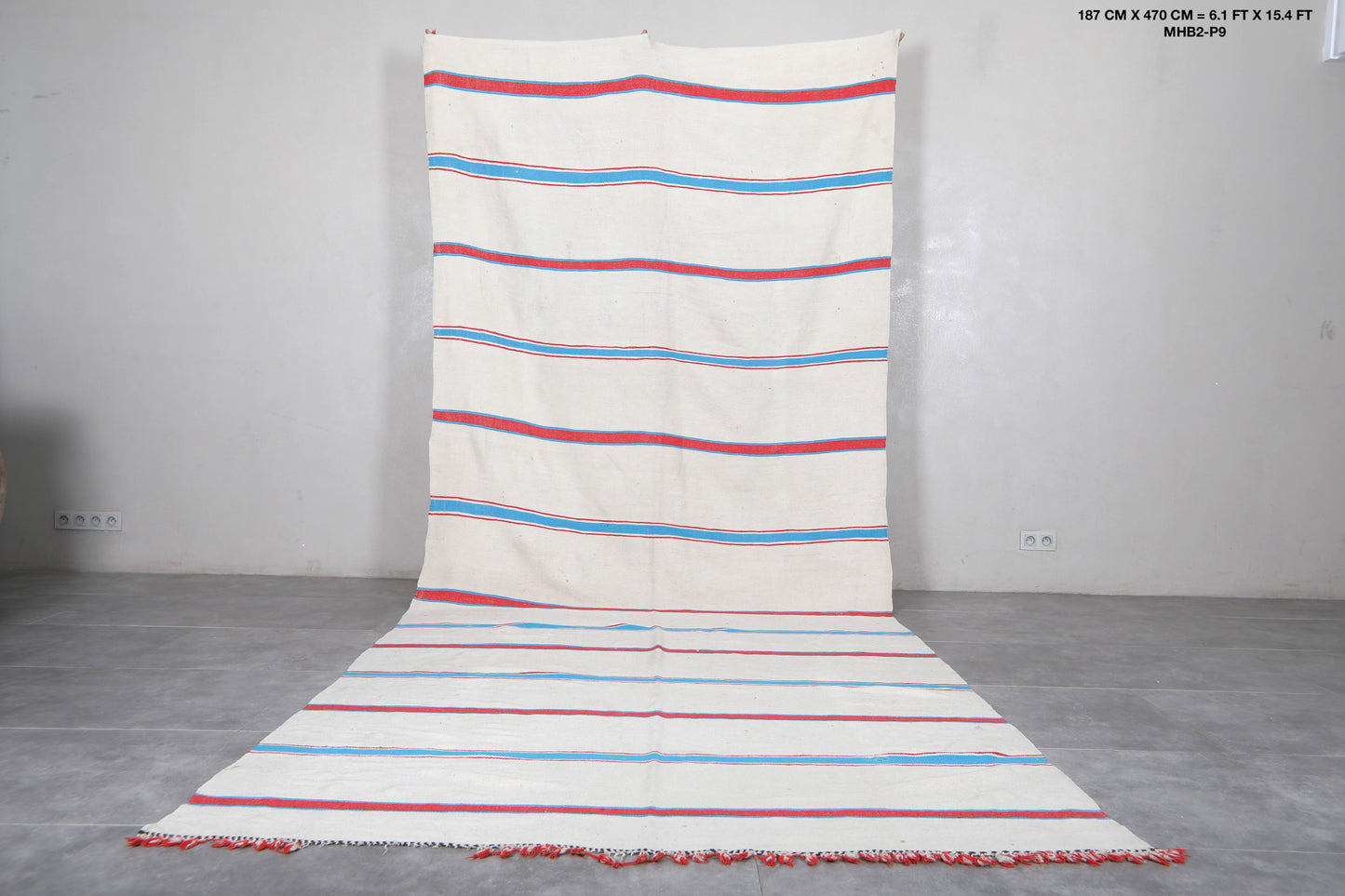 Moroccan Wool Runner Rug - 6.1 x 15.4 ft | Striped Handmade Carpet - Flat woven rugs