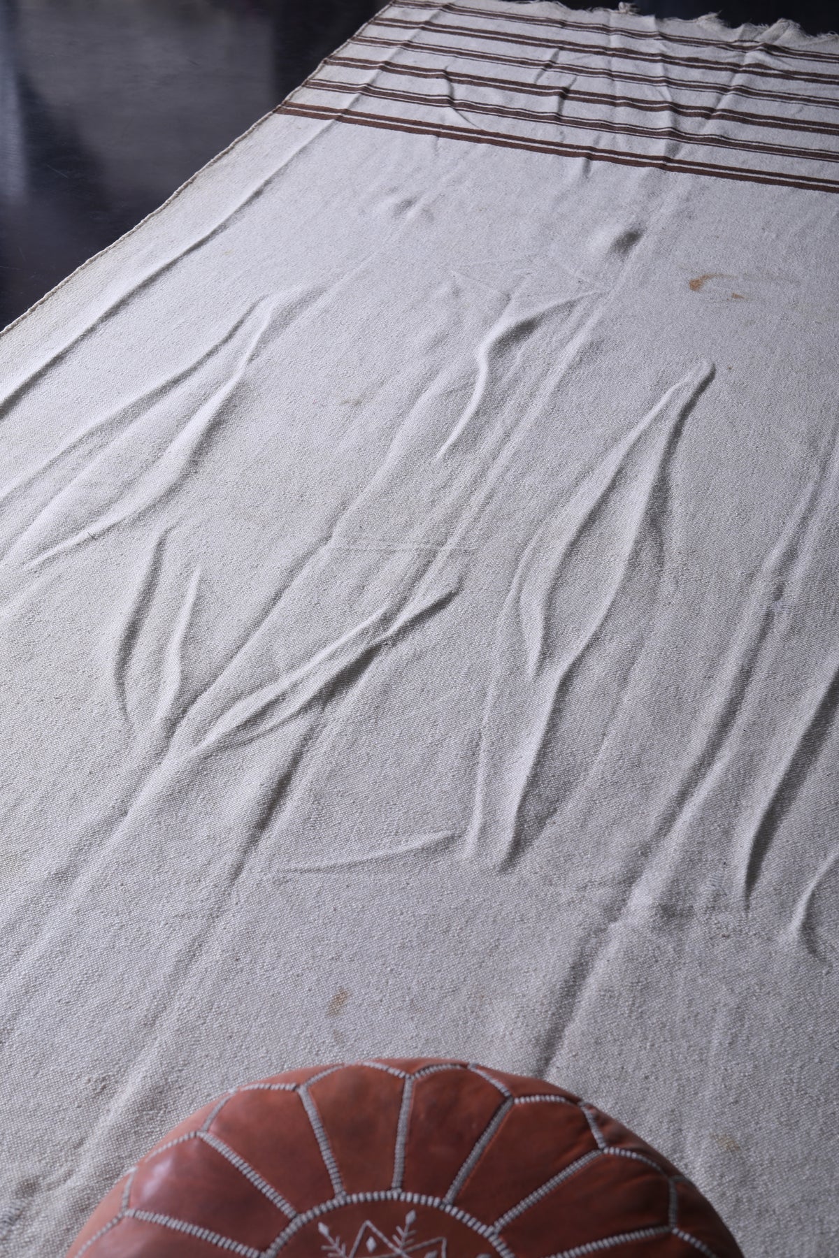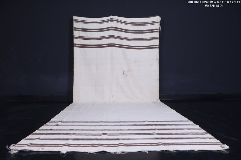Moroccan Rug 6.5 X 17.1 Feet - White with Brown Stripes