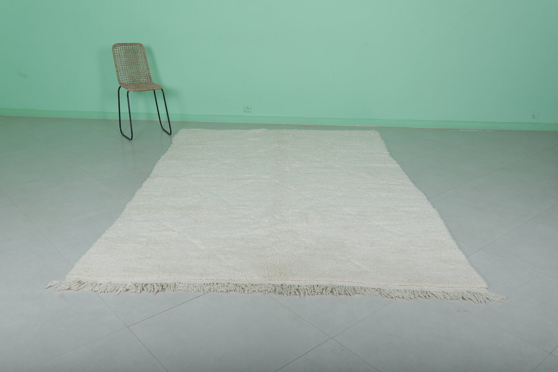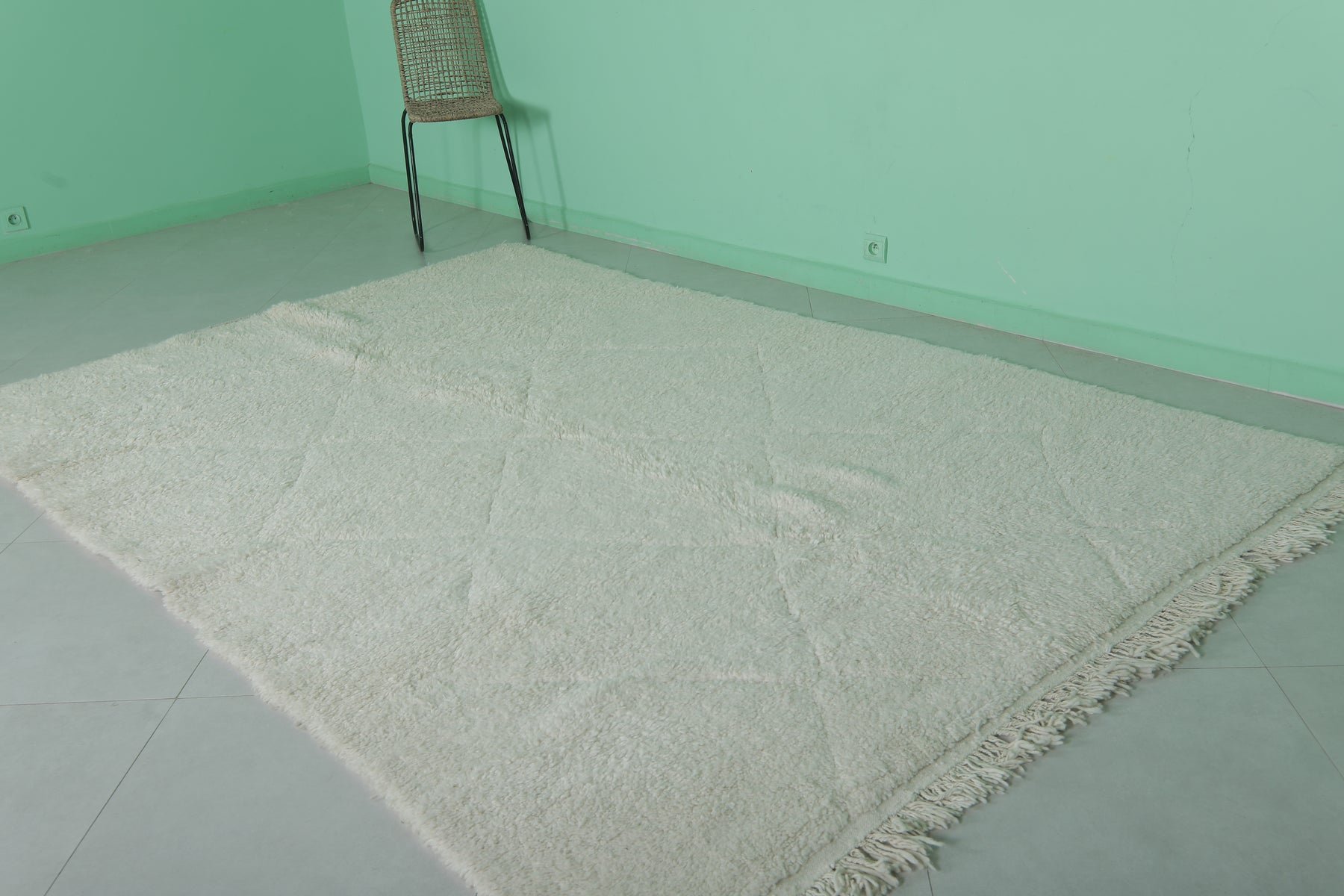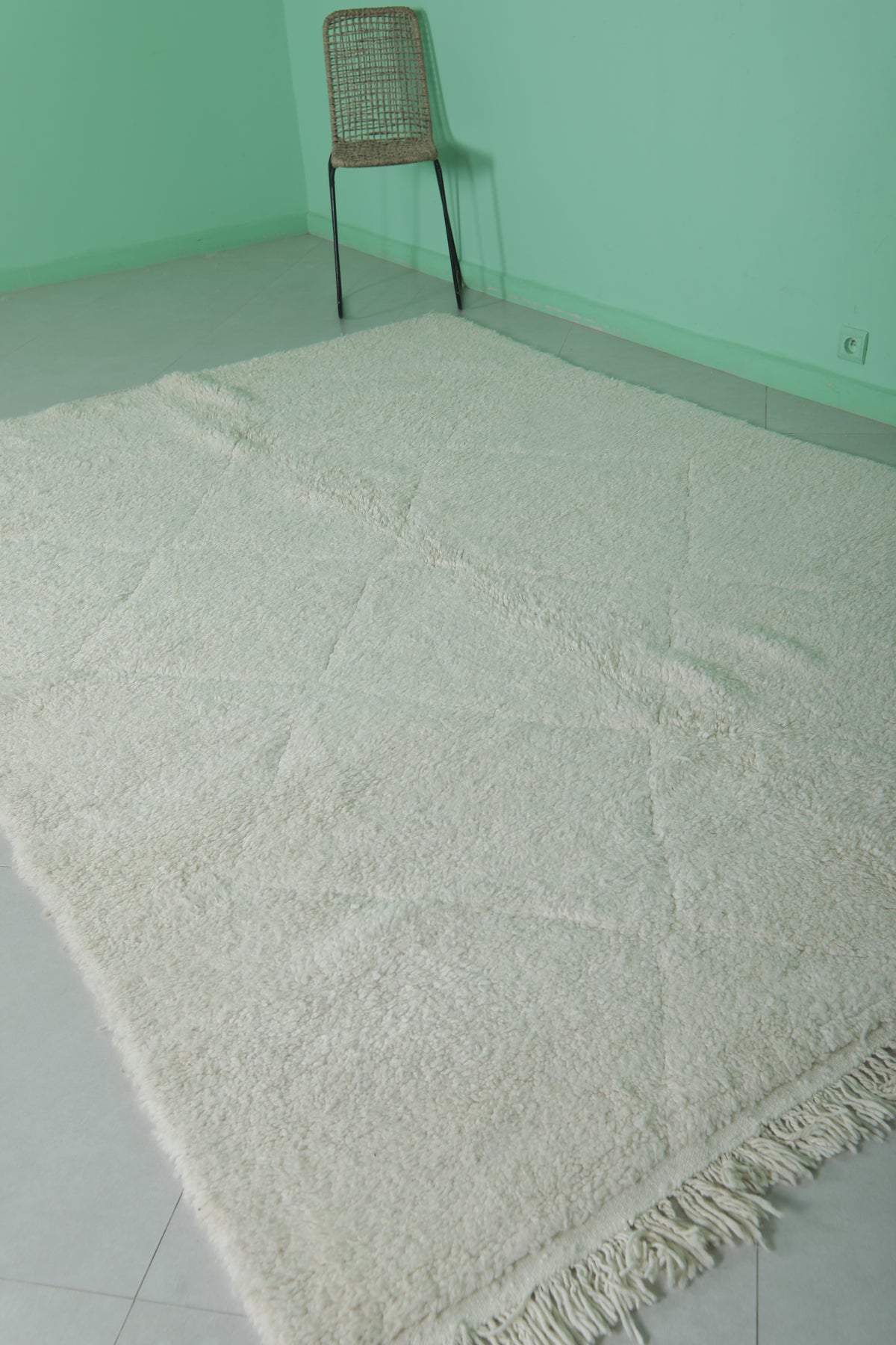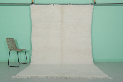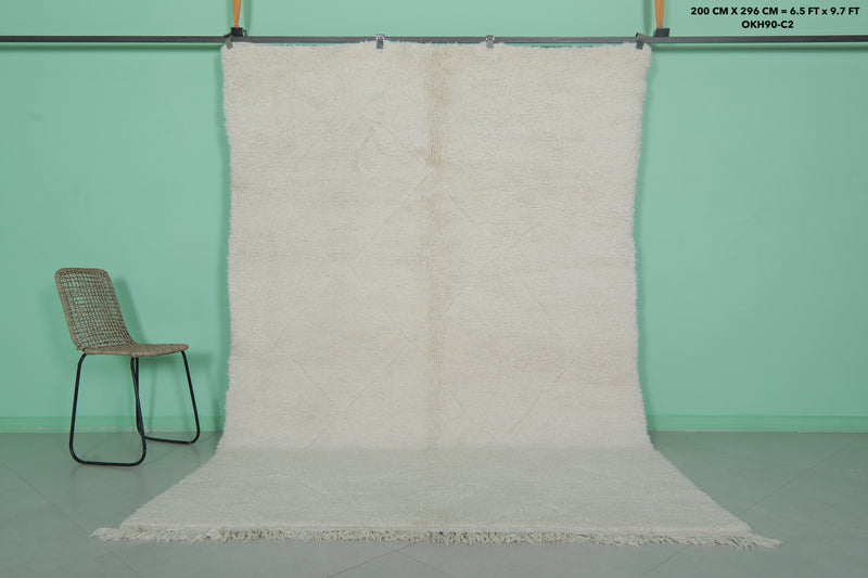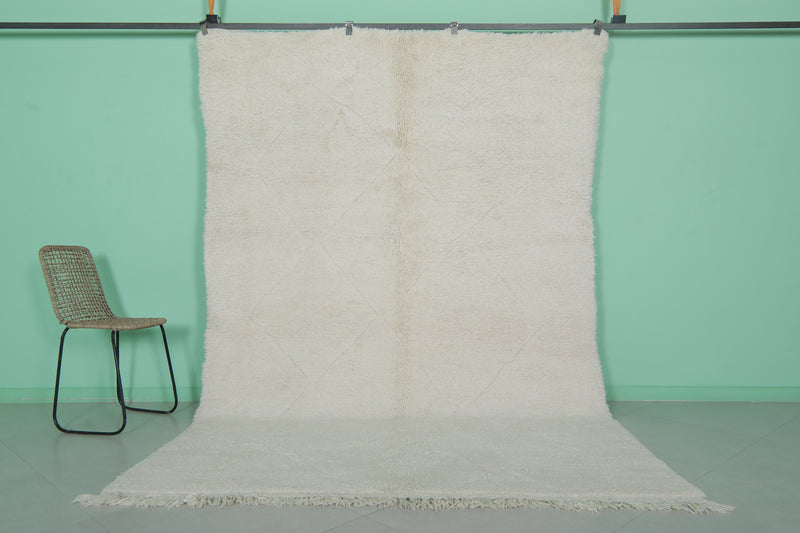 Minimalist Moroccan rug - 6.5 x 9.7 ft | Soft white shag with fringe
