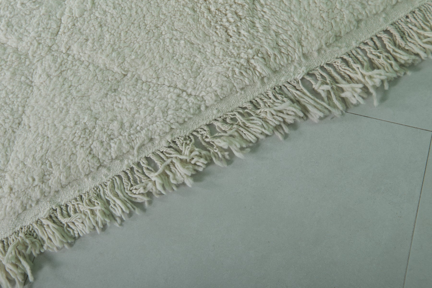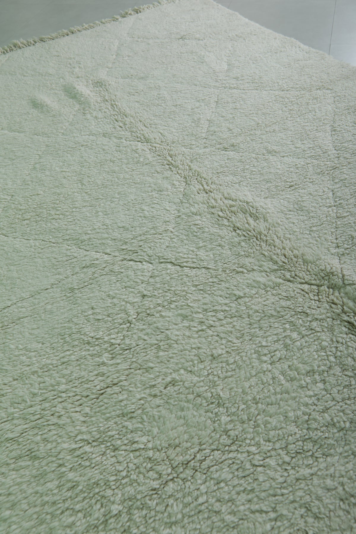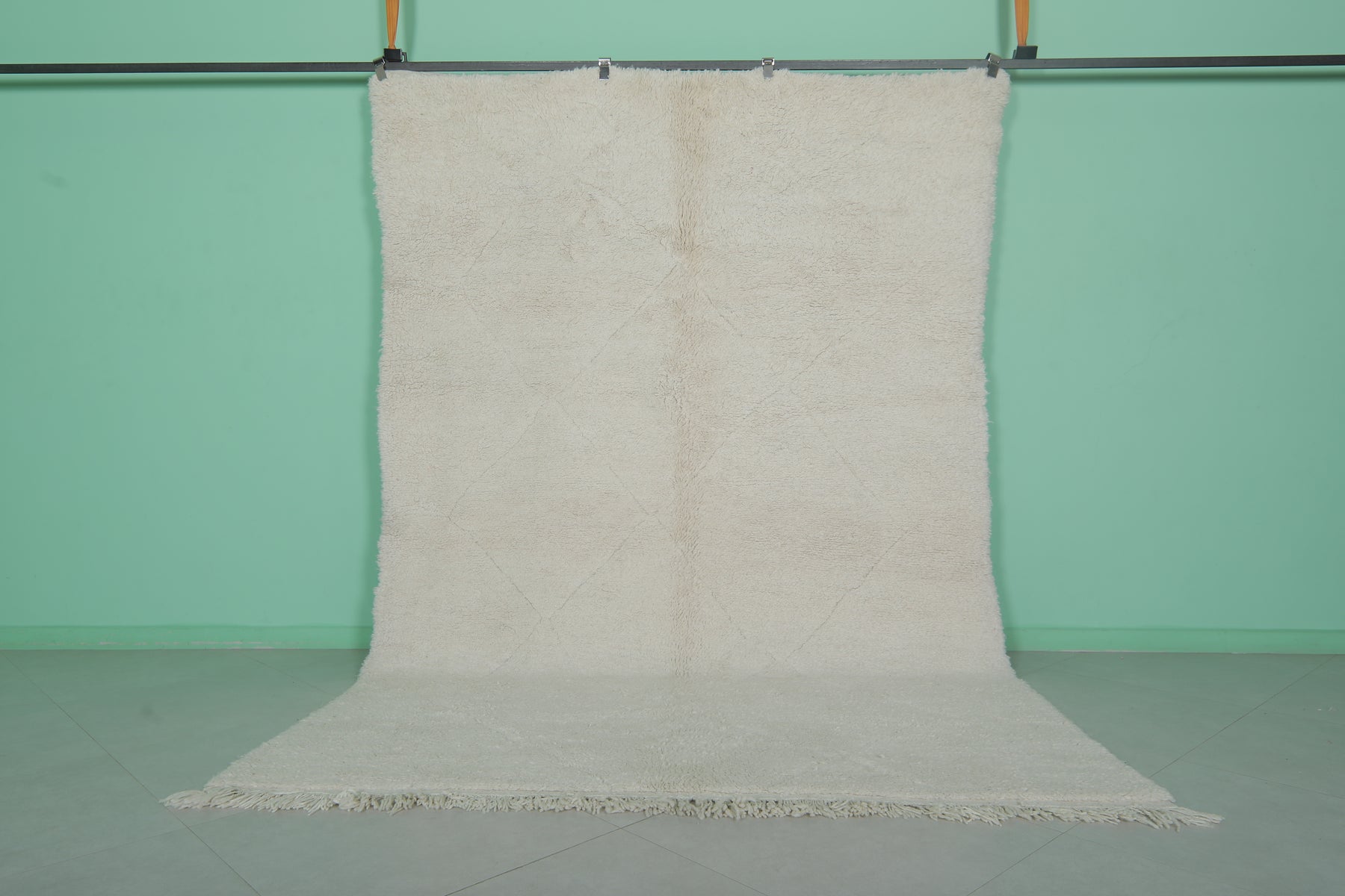 Minimalist Moroccan rug - 6.5 x 9.7 ft | Soft white shag with fringe