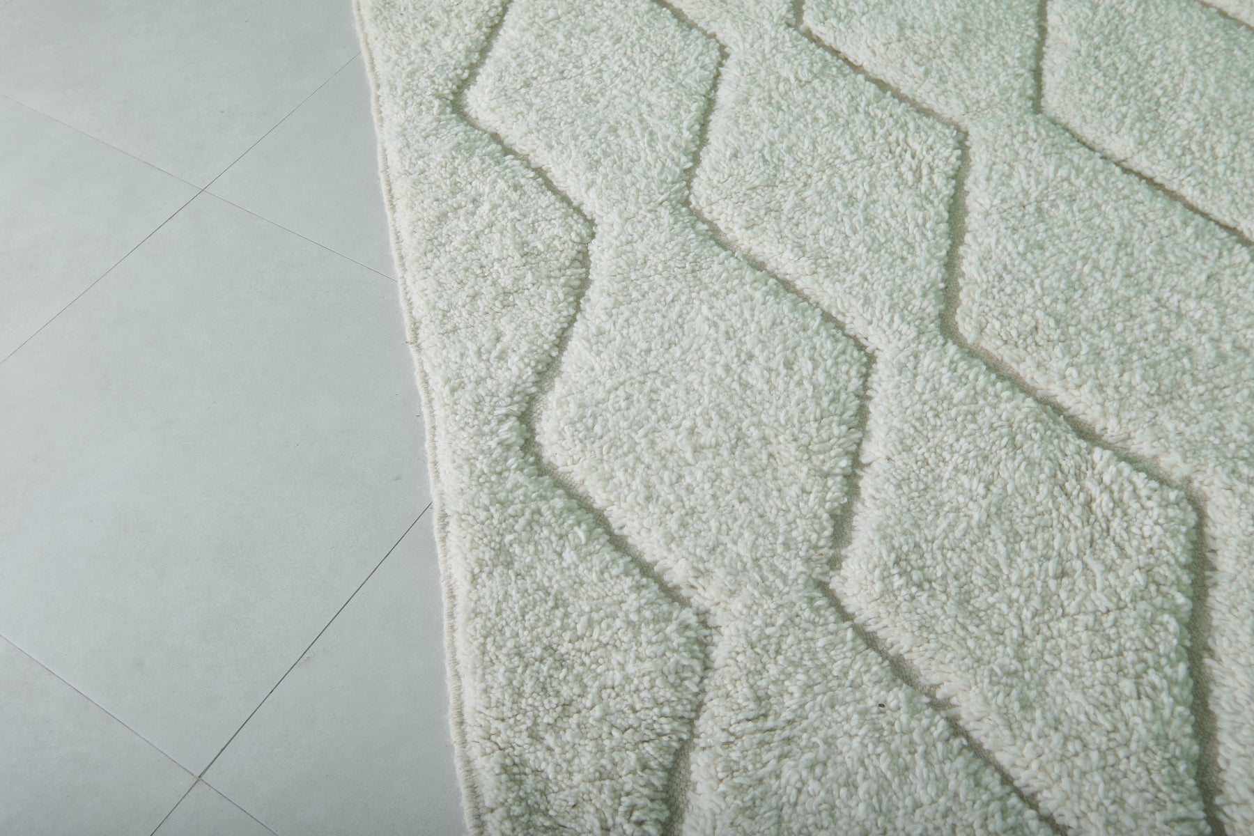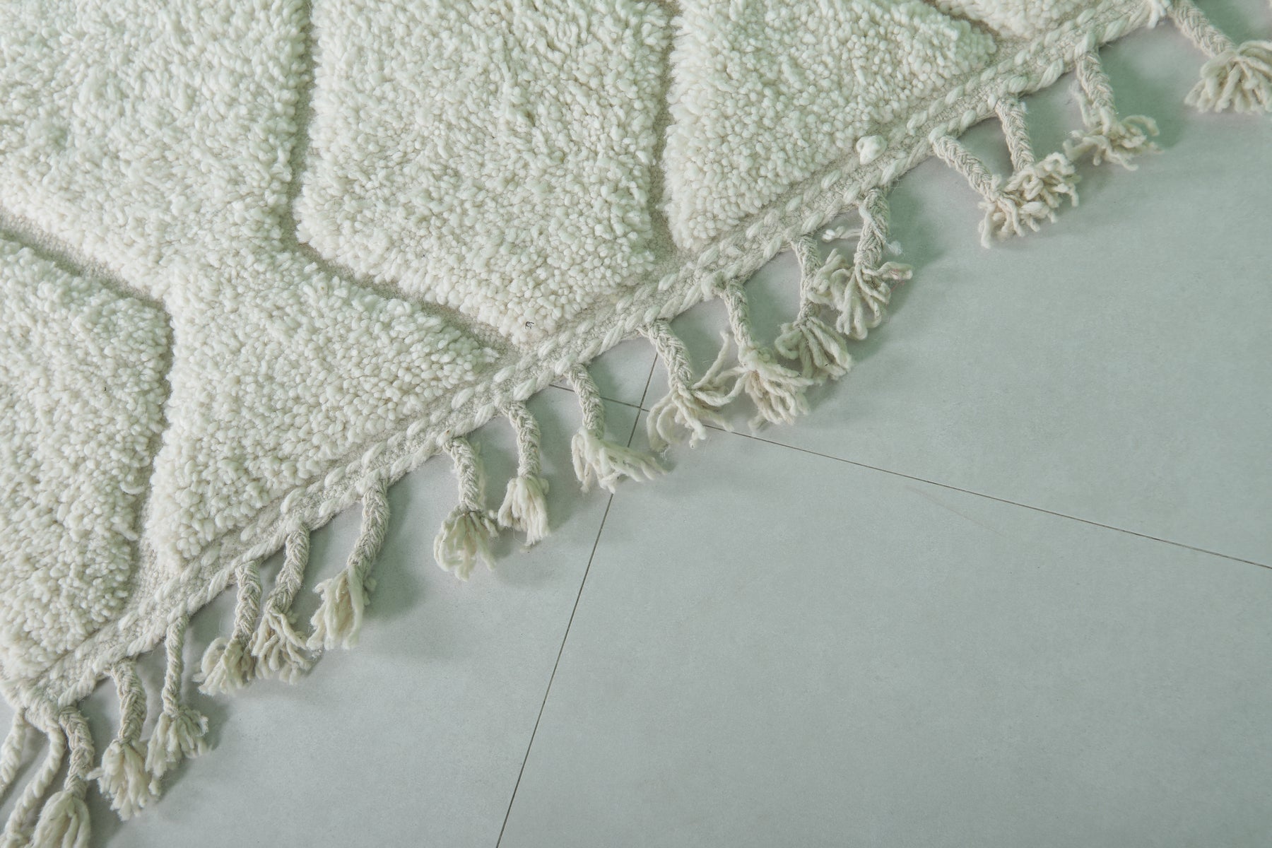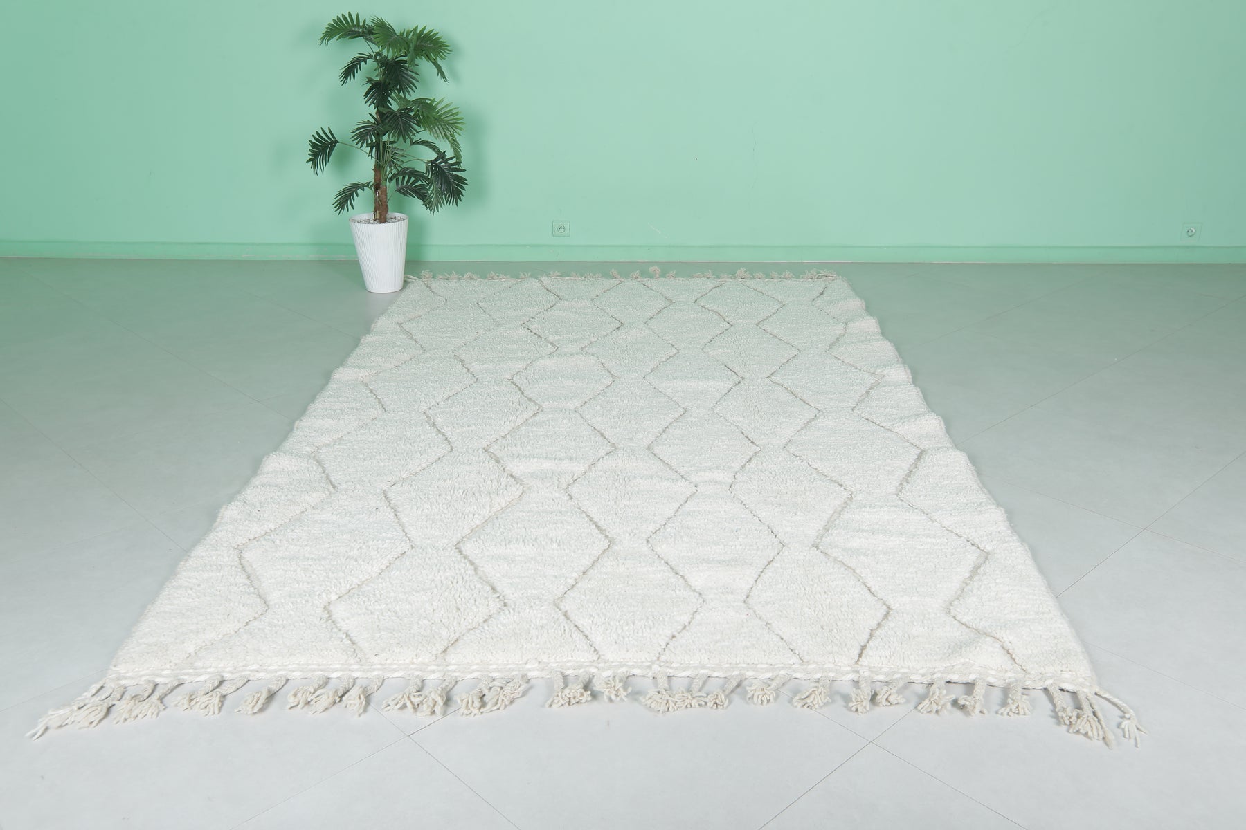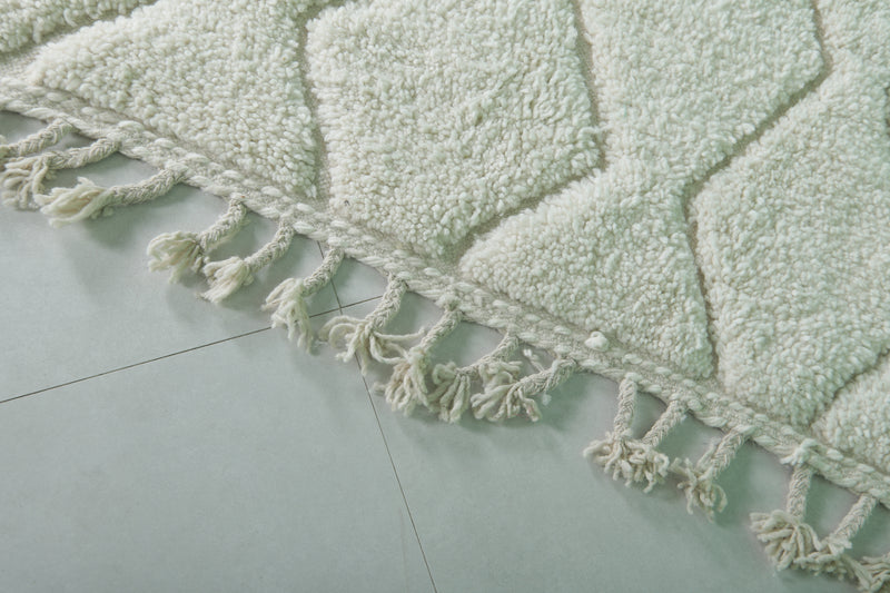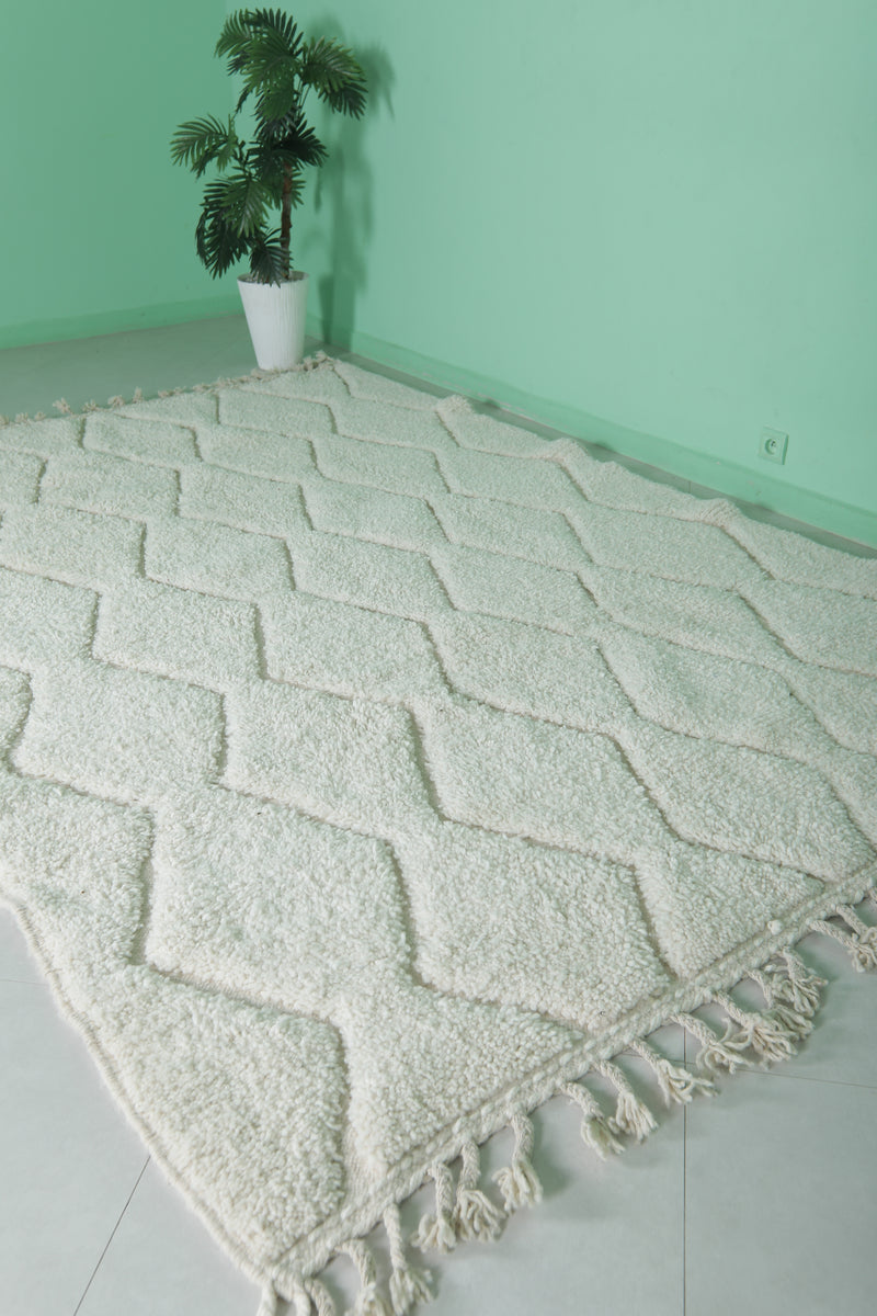 Add a touch of Moroccan elegance to your home with this Handwoven Wool Rug, sized at 6.5 x 9.7 feet (199 CM x 297 CM). Featuring a sophisticated diamond pattern in soft ivory, this rug blends traditional craftsmanship with a minimalist aesthetic, making it perfect for living rooms, bedrooms, or study areas.