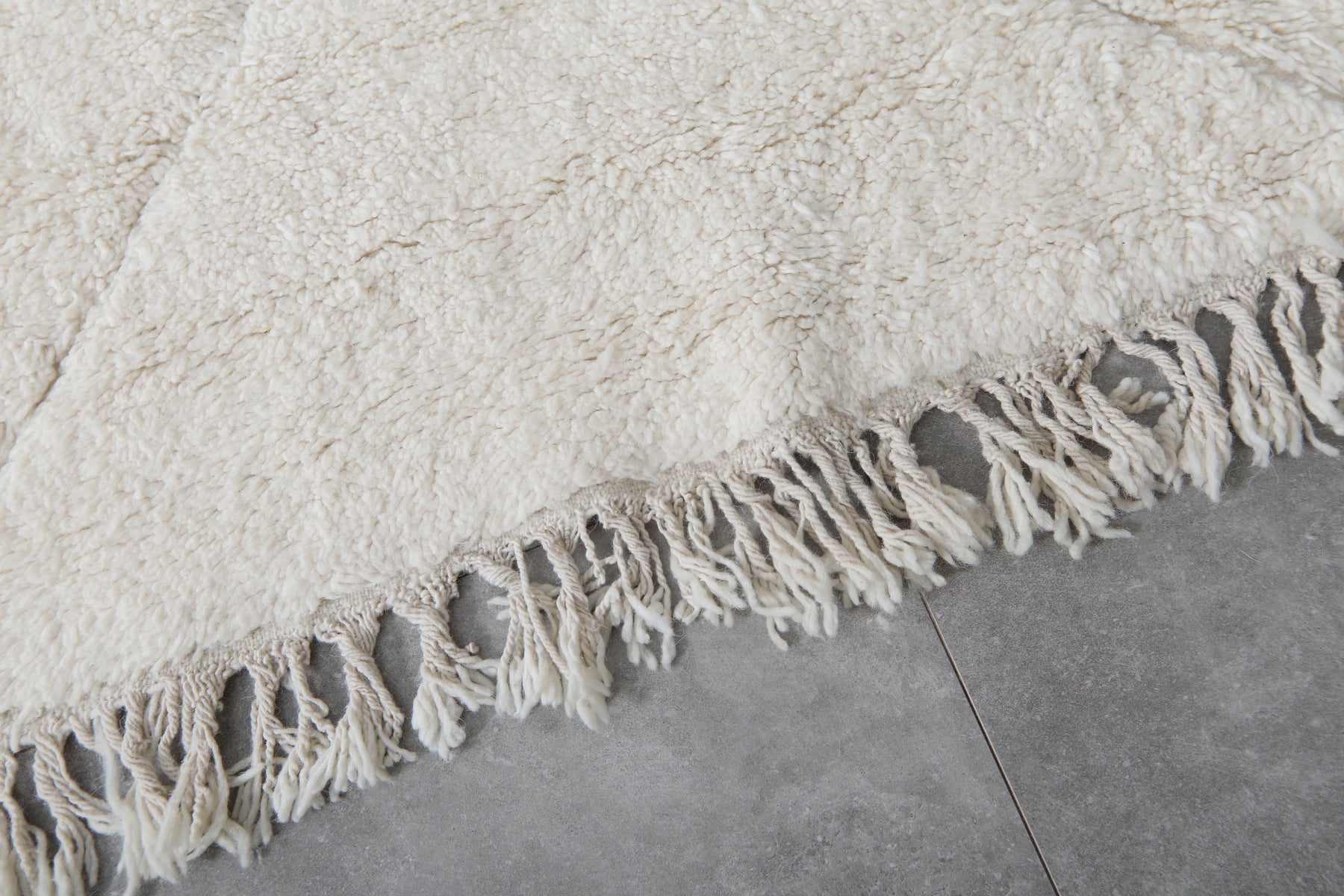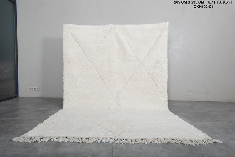 Bring a touch of timeless elegance to your décor with this Elegant Moroccan Rug, sized at 6.7 x 9.6 feet (205 CM x 295 CM). Featuring a minimalist diamond pattern on a soft white background, this plush handwoven rug adds warmth and sophistication to any space. Perfect for living rooms, bedrooms, or cozy areas, it effortlessly blends modern simplicity with traditional craftsmanship.