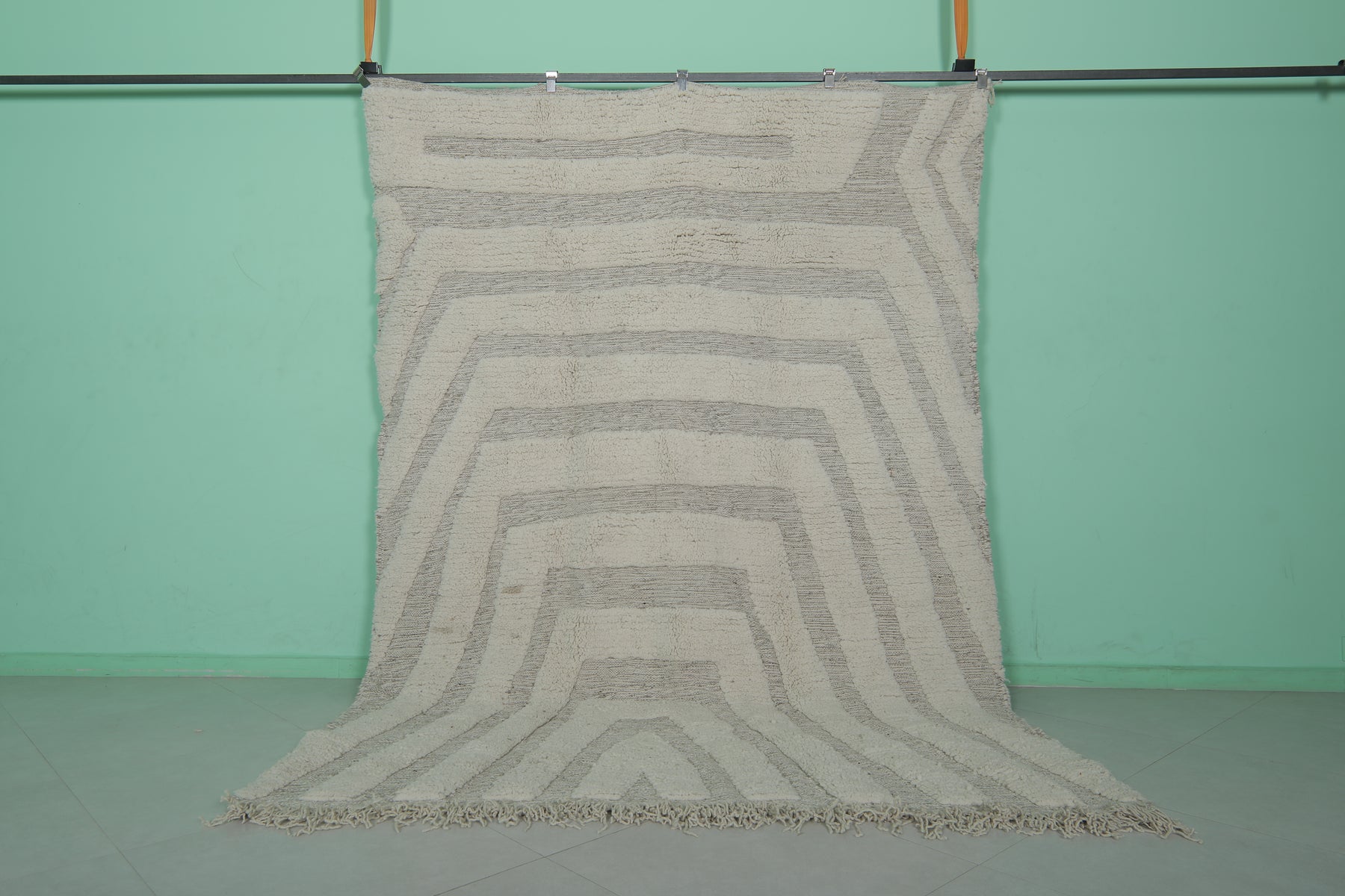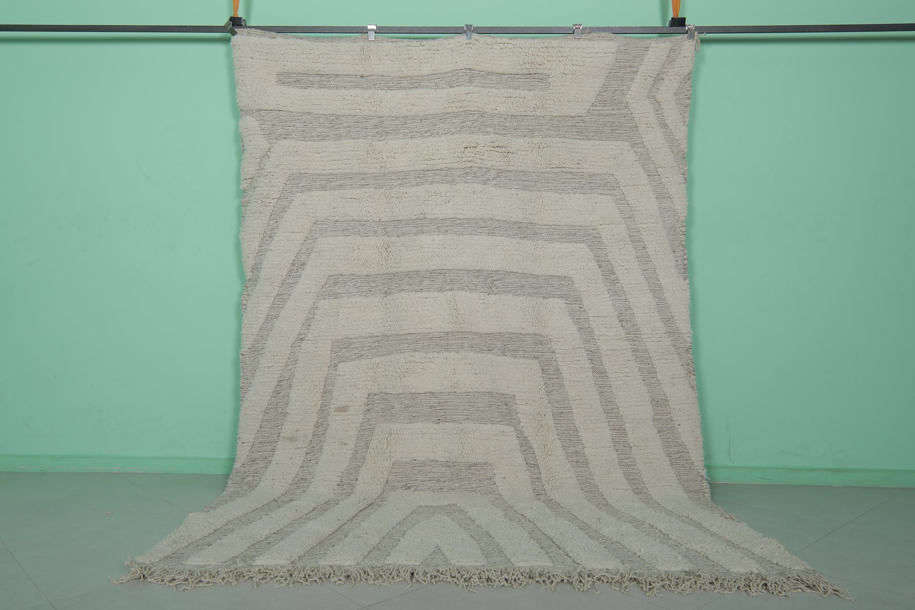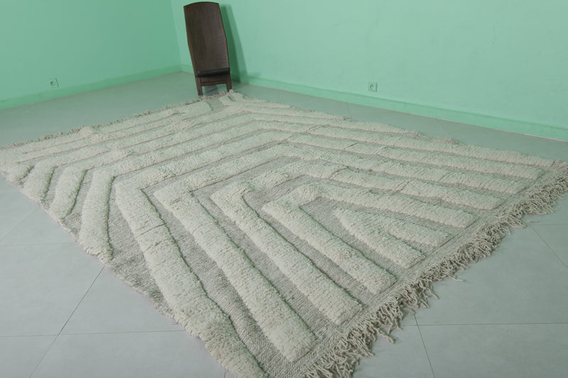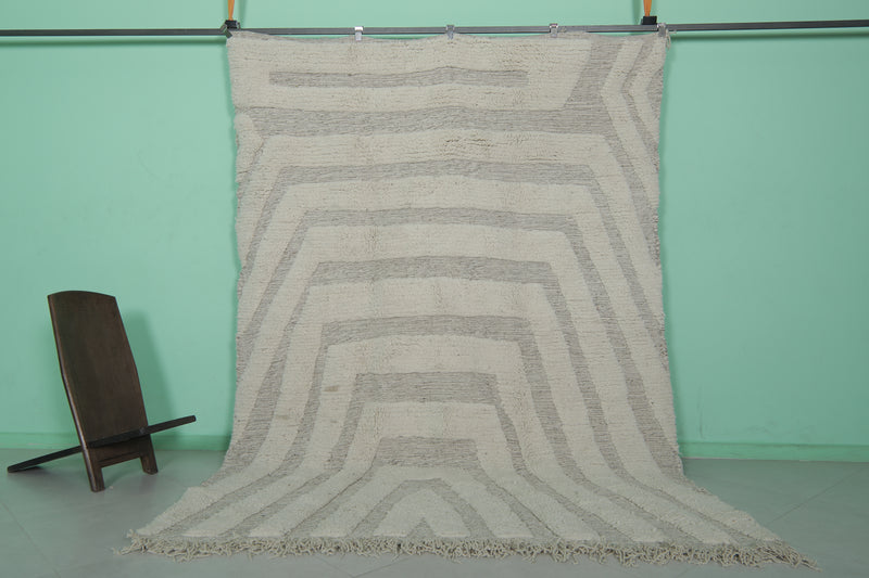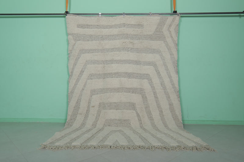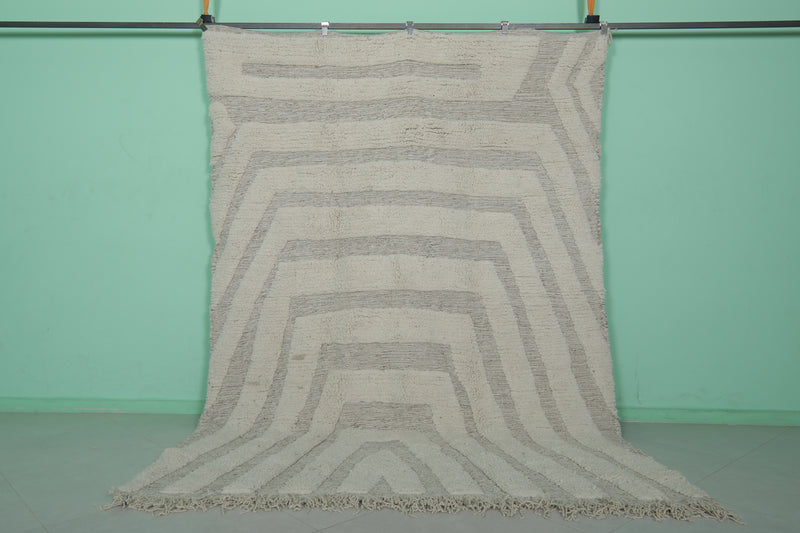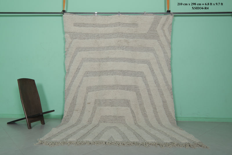 Elegant Moroccan rug - 6.8 x 9.7 ft | Soft gray & white geometric pattern