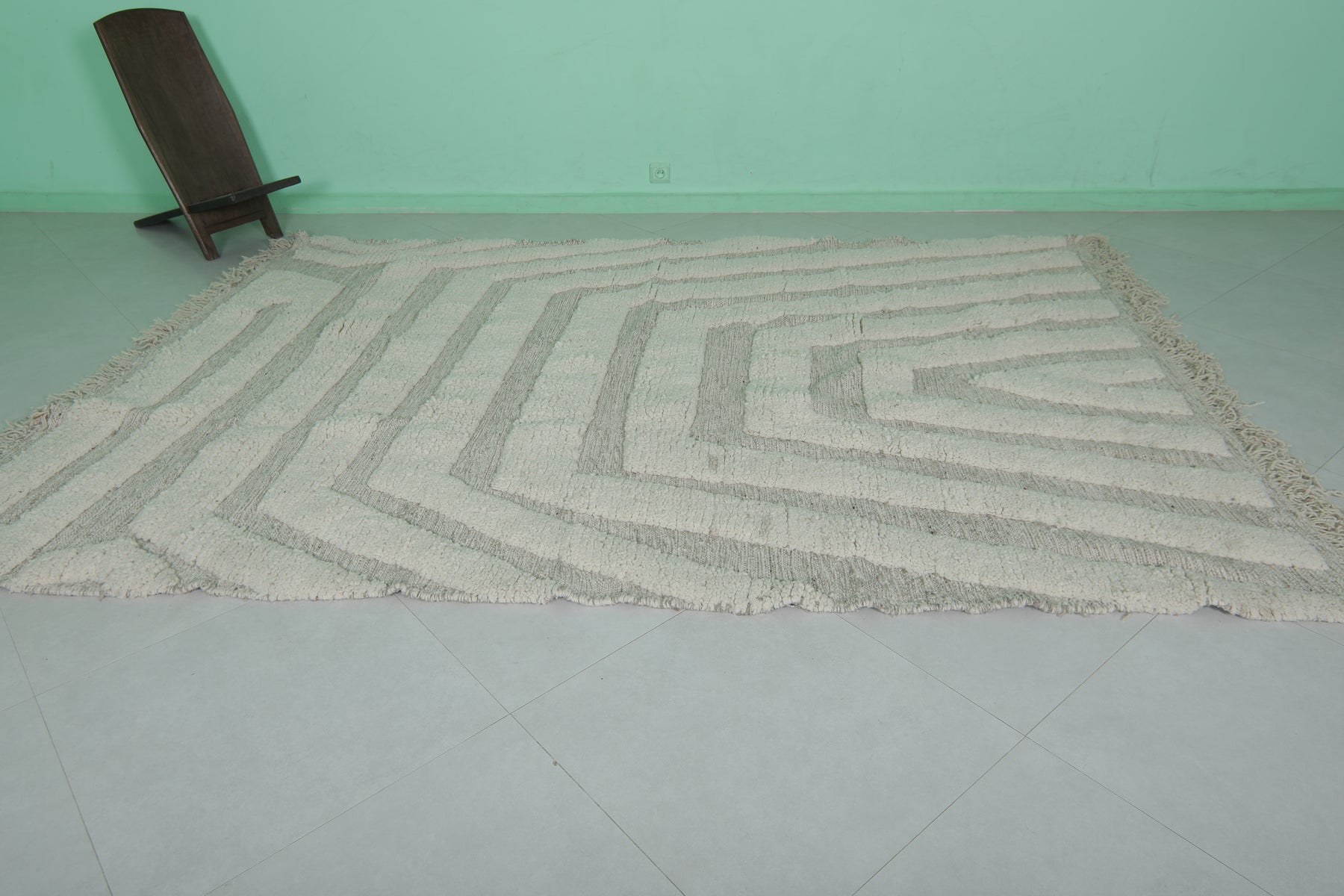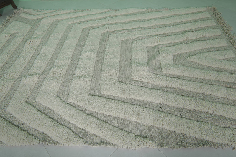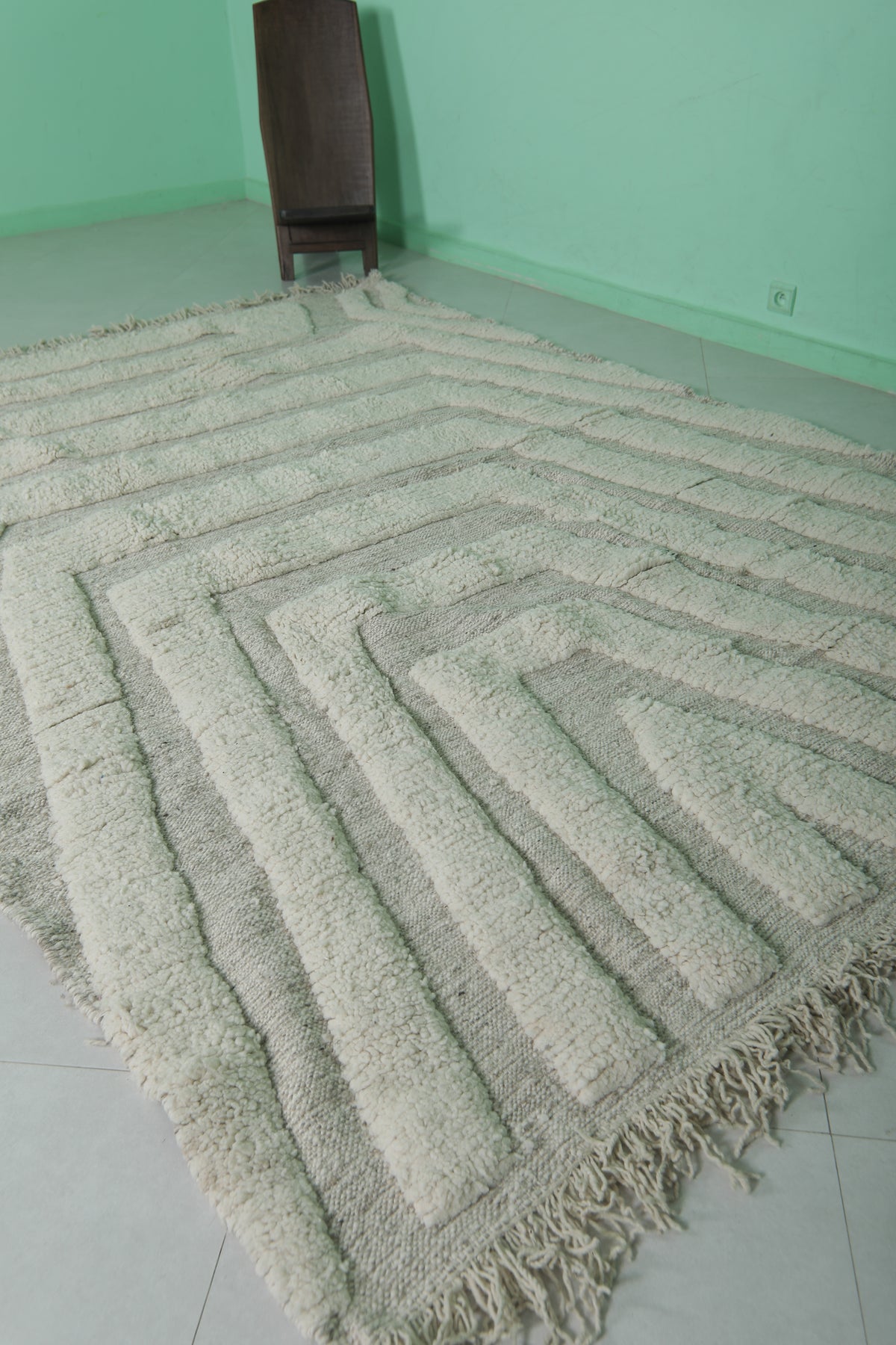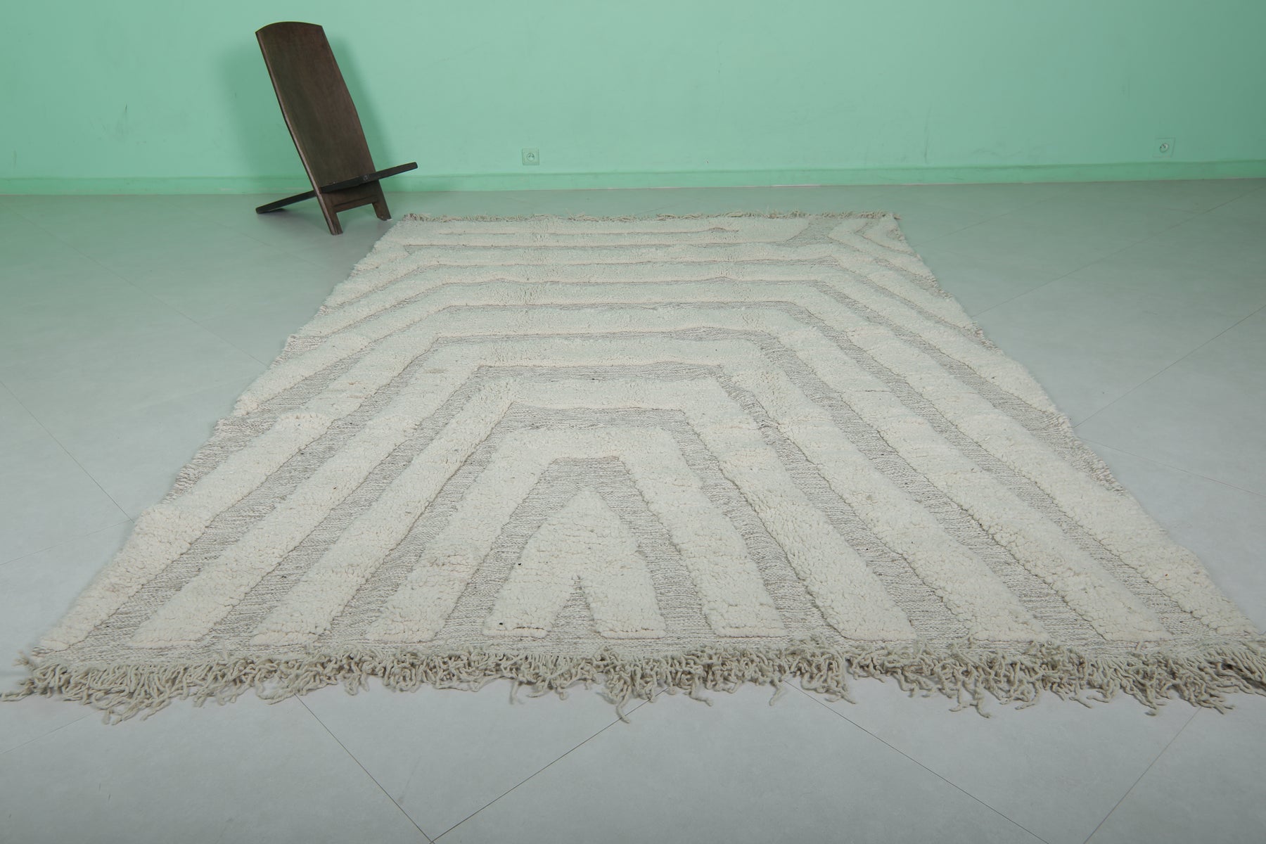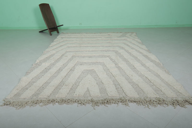 Elegant Moroccan rug - 6.8 x 9.7 ft | Soft gray & white geometric pattern