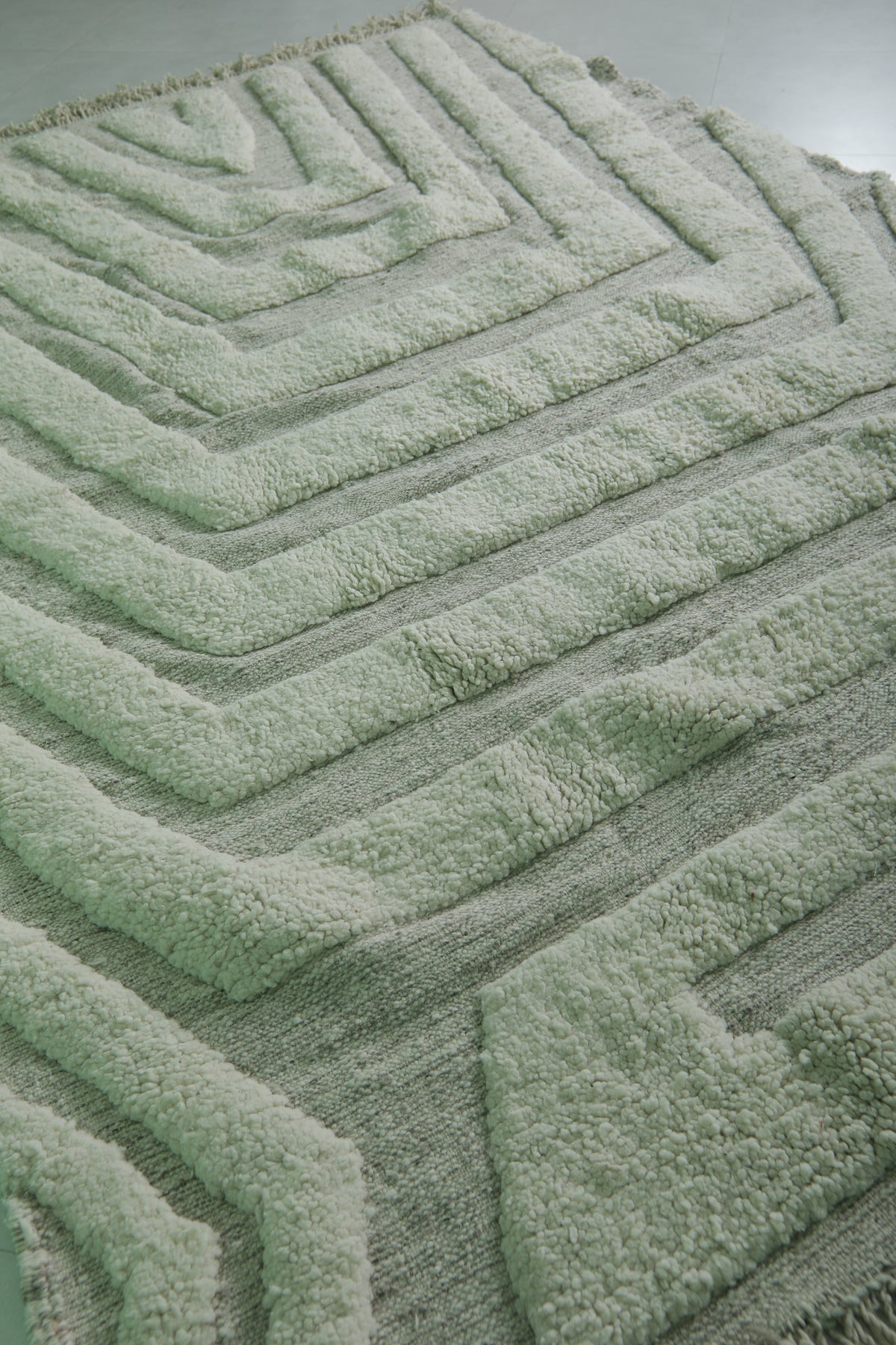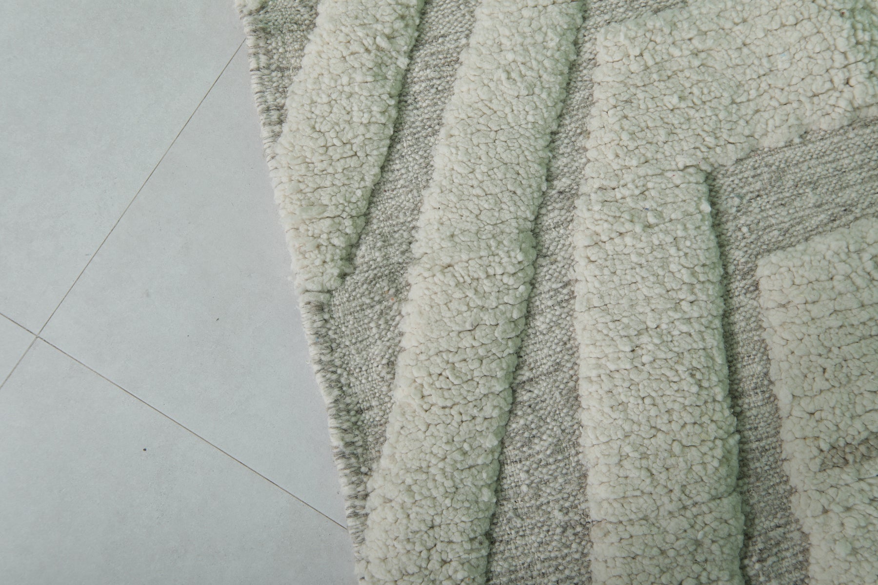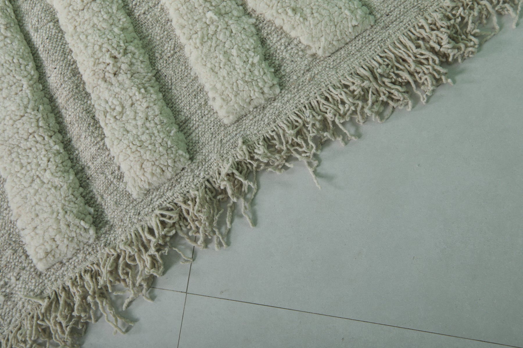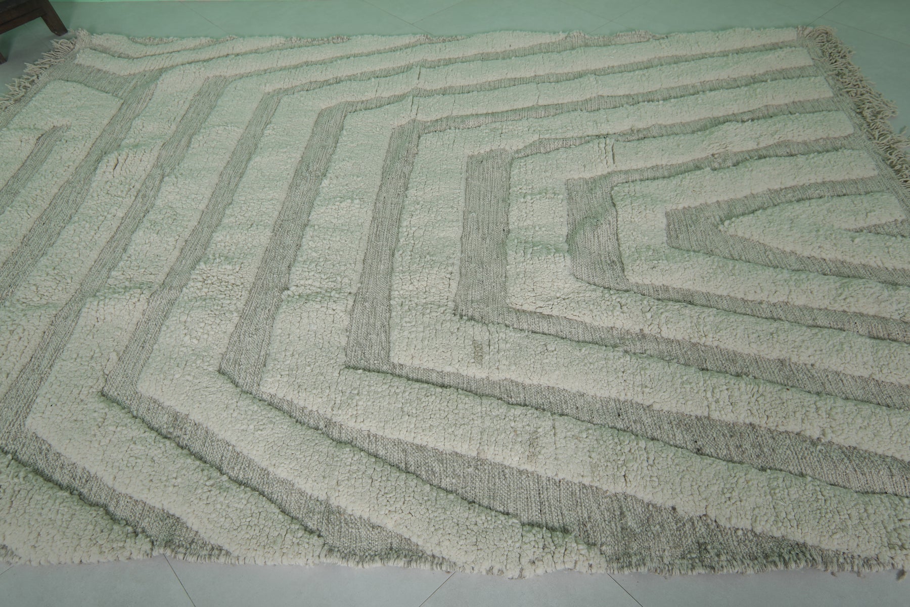 Add a refined touch to your décor with this Elegant Moroccan Rug, sized at 6.8 x 9.7 feet (210 CM x 298 CM). Featuring a gentle gray and white geometric pattern, this beautifully handwoven rug blends traditional Moroccan craftsmanship with a minimalist aesthetic. Ideal for living rooms, bedrooms, or toffices, it offers a sophisticated yet textured look that complements various interior styles.