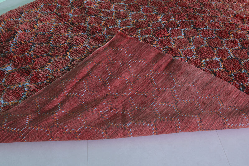 Add a touch of Moroccan artistry to your décor with this handmade vintage rug, measuring 6 FT x 11.1 FT. Featuring a beautiful diamond pattern across a deep red base, accented with shades of blue and subtle yellow highlights, this rug embodies timeless elegance. The intricate lattice-like design symbolizes tradition and craftsmanship, making it a standout piece in bohemian, modern, or traditional interiors. Handwoven from premium natural fibers, this rug is durable, plush, and one-of-a-kind.
