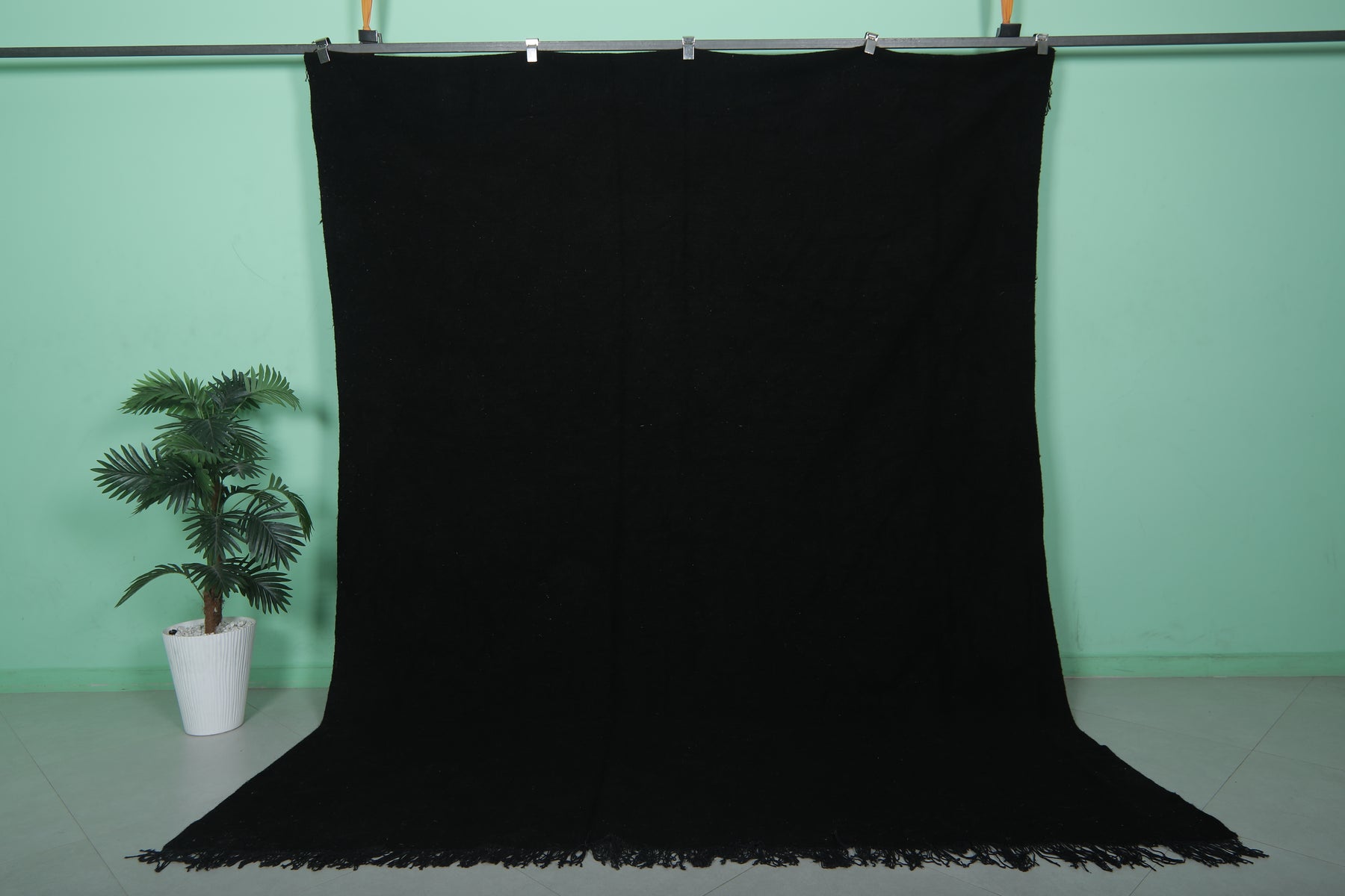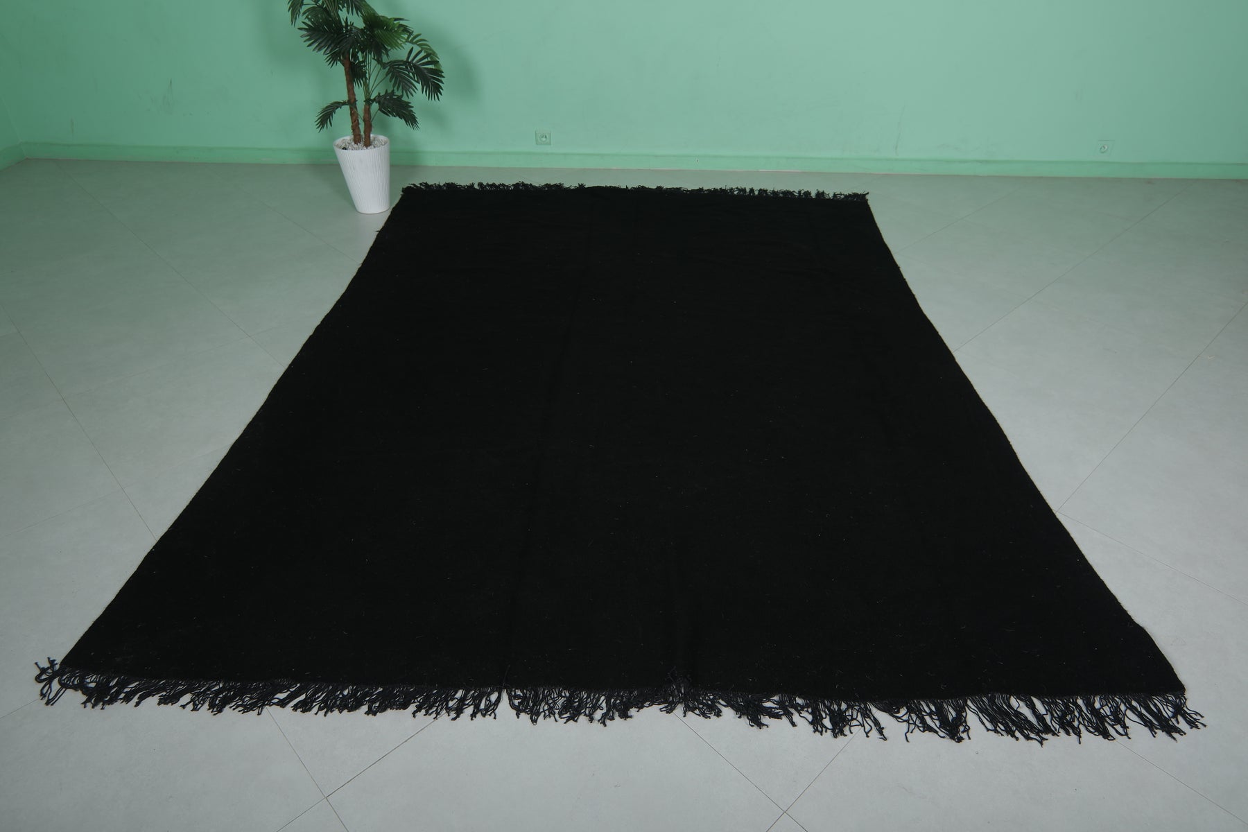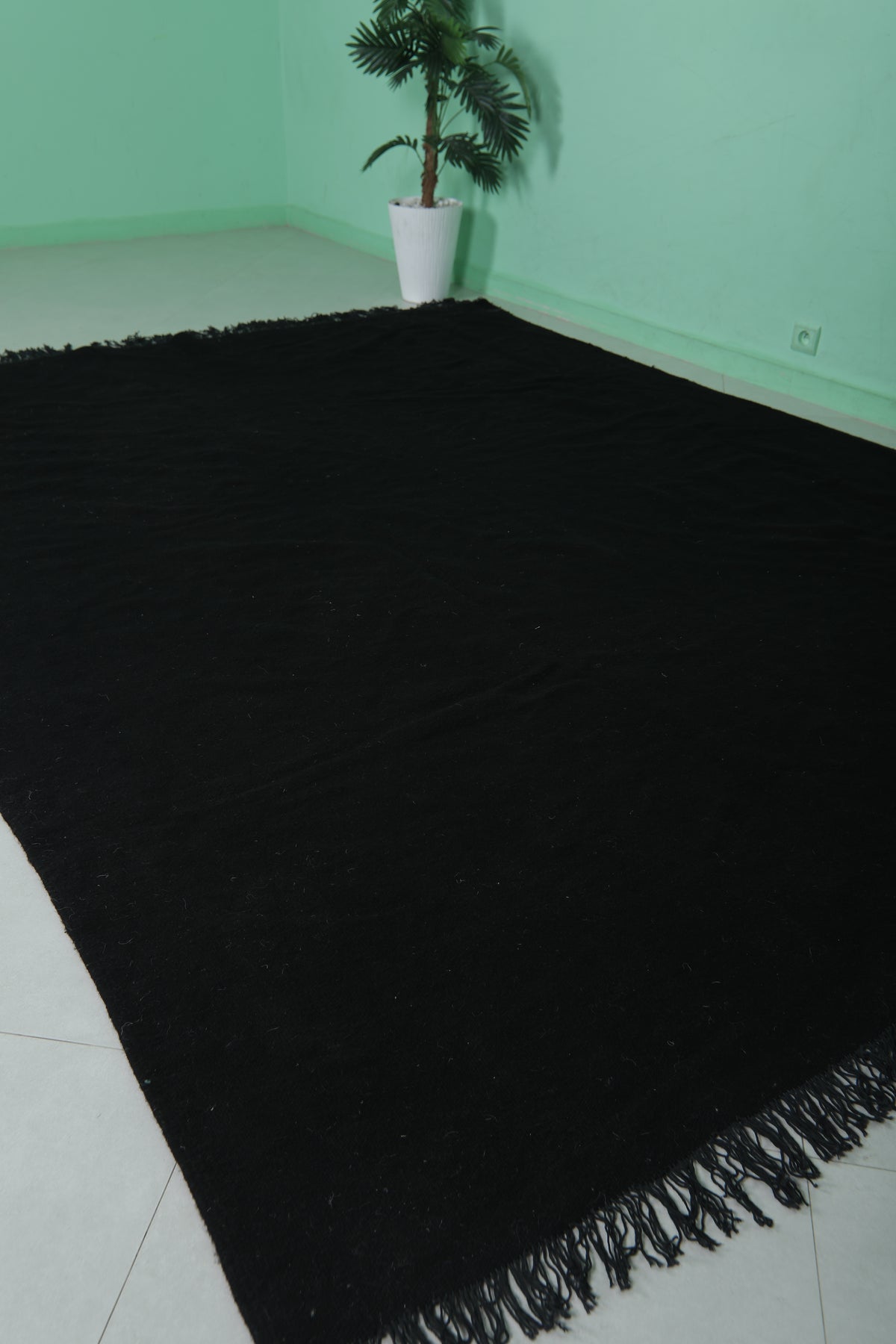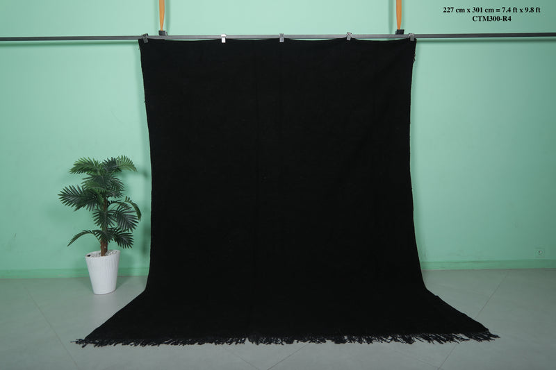 Moroccan rug 7.4 x 9.8 ft - Handwoven black wool with fringe