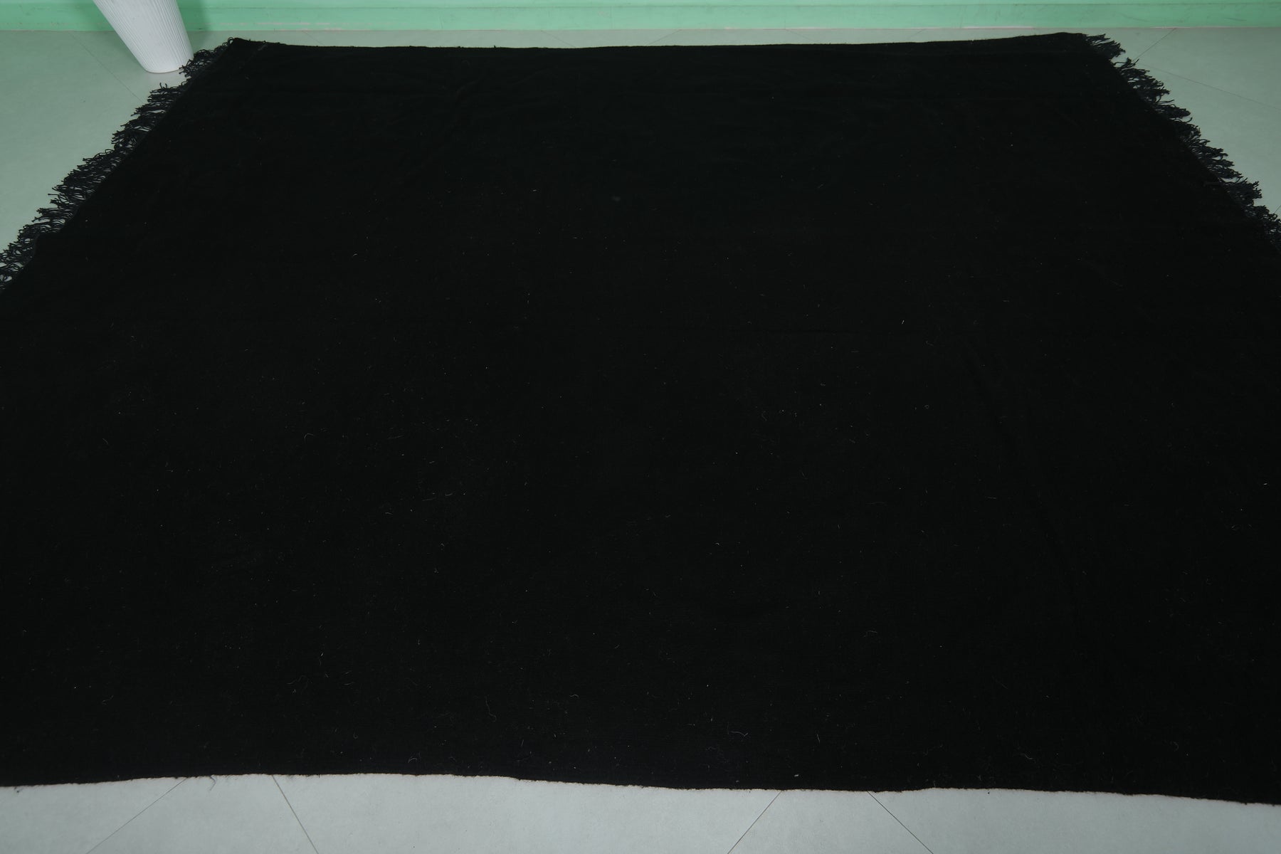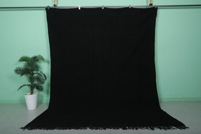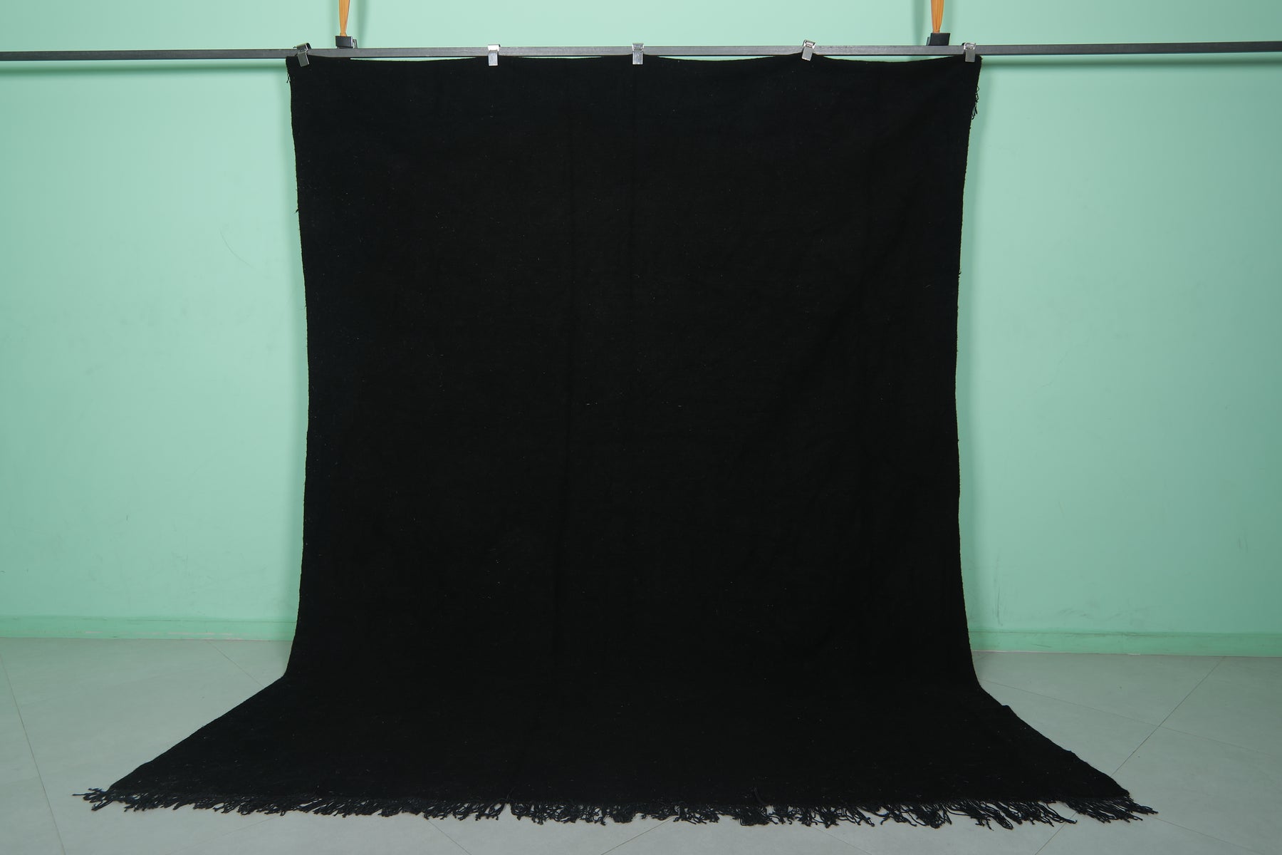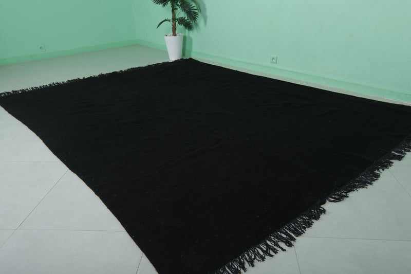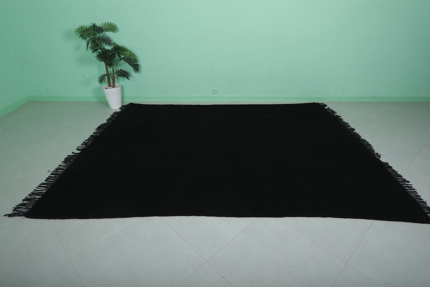 Moroccan rug 7.4 x 9.8 ft - Handwoven black wool with fringe