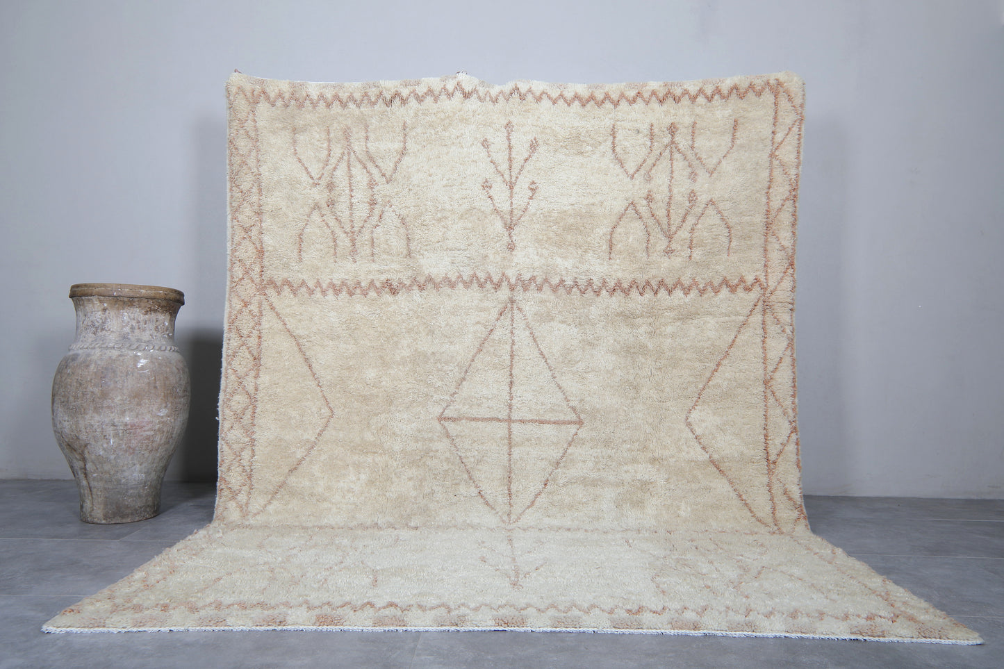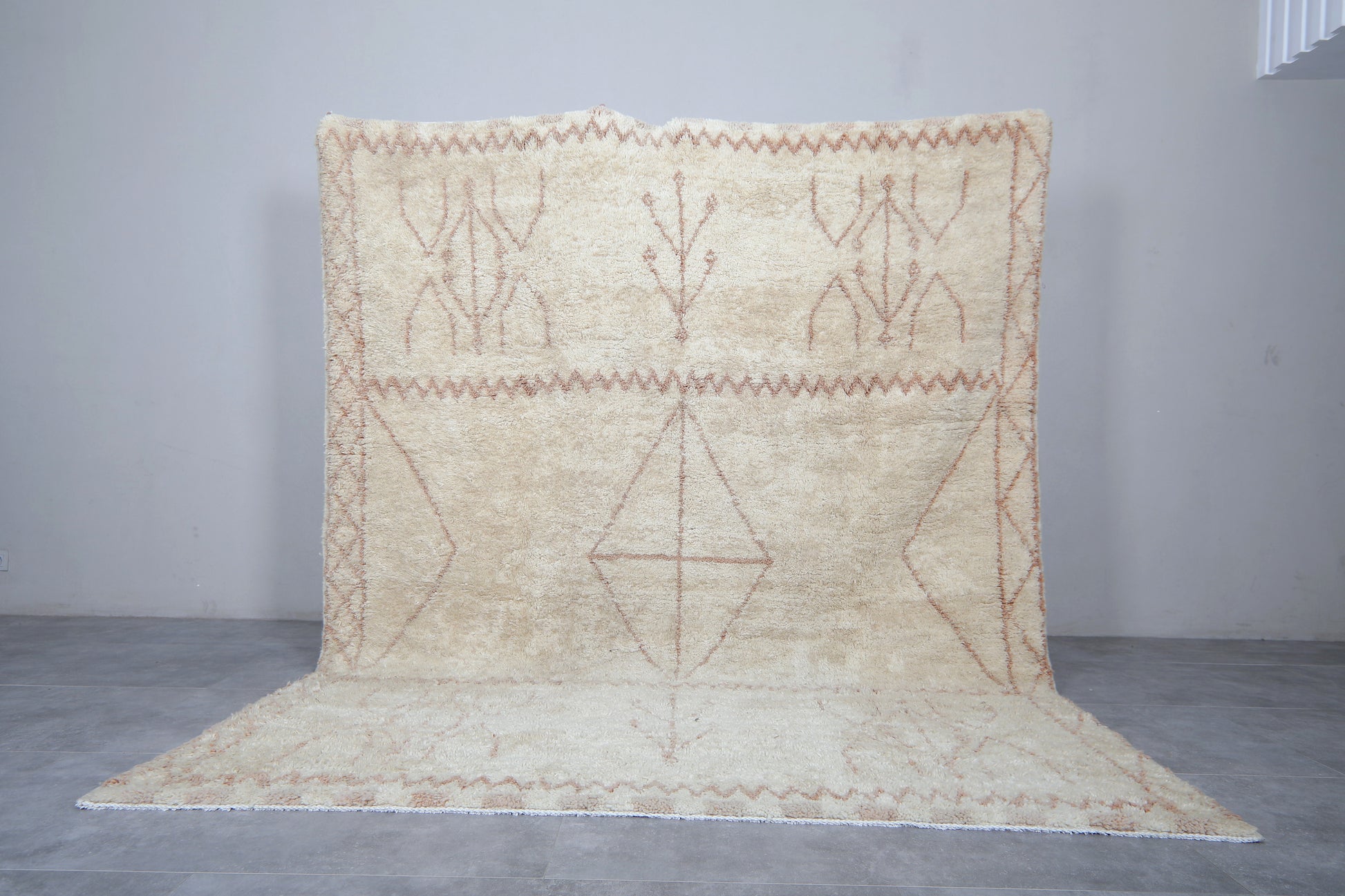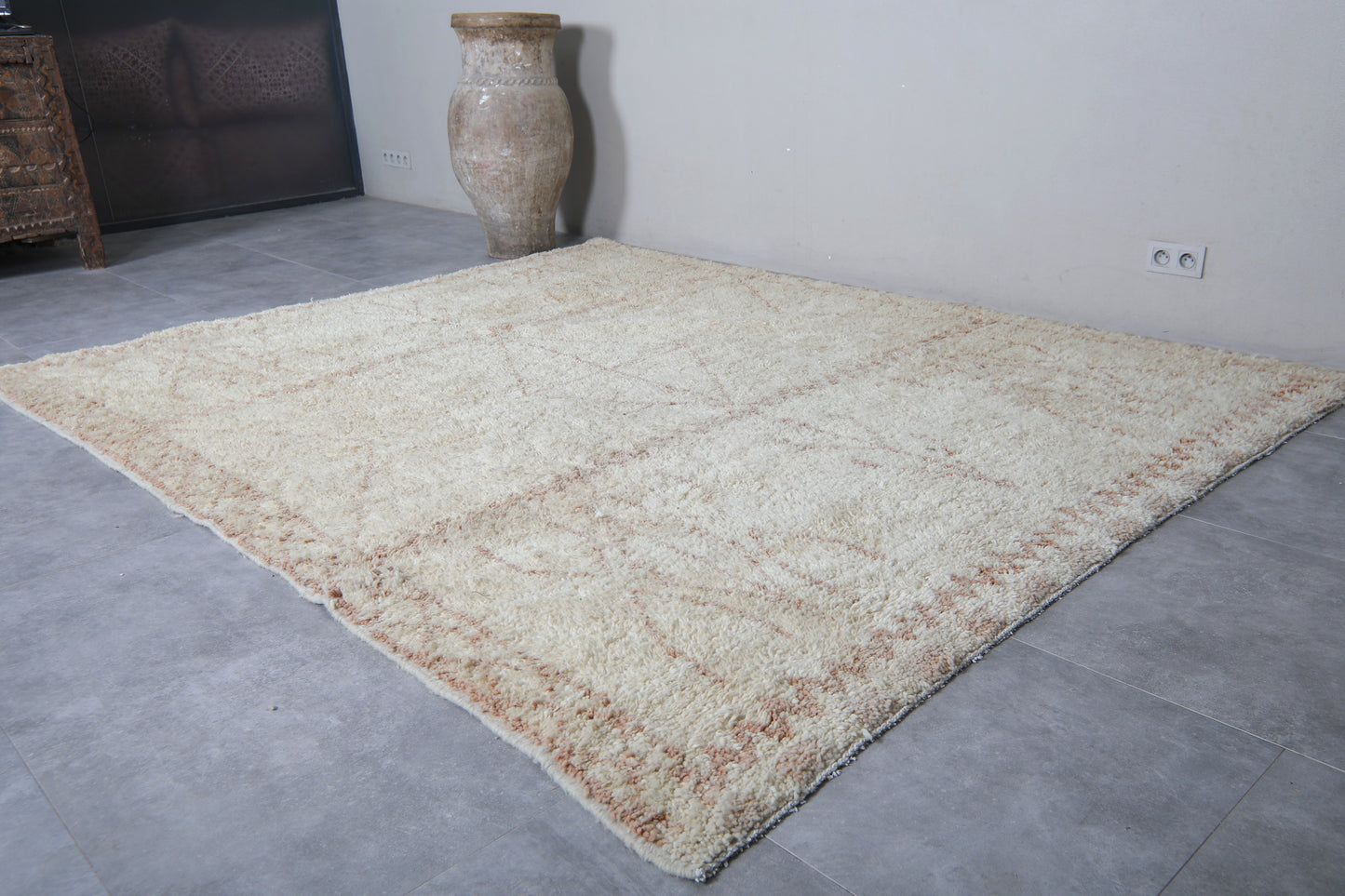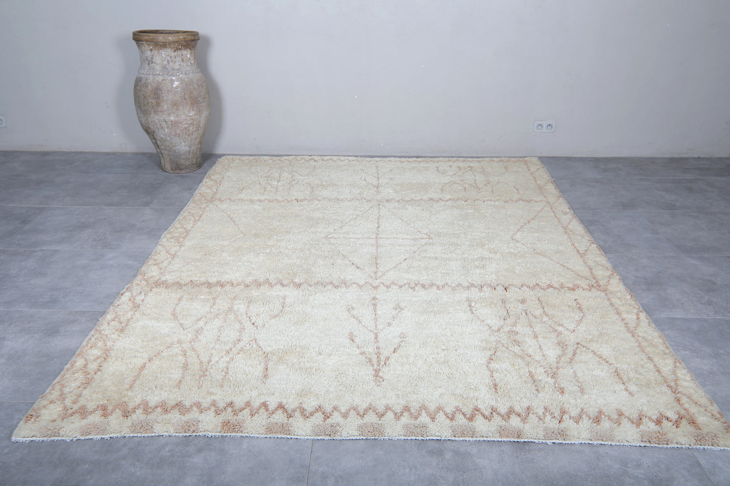 Cream beni ourain Moroccan rug - 7.7 x 9.6 Feet | Handwoven wool rug