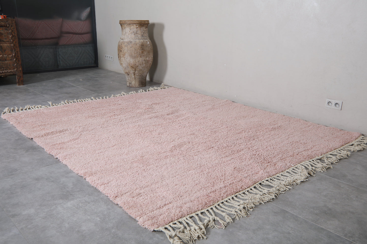 Pink Moroccan rug - 7.6 x 8.6 Feet | Handwoven wool carpet