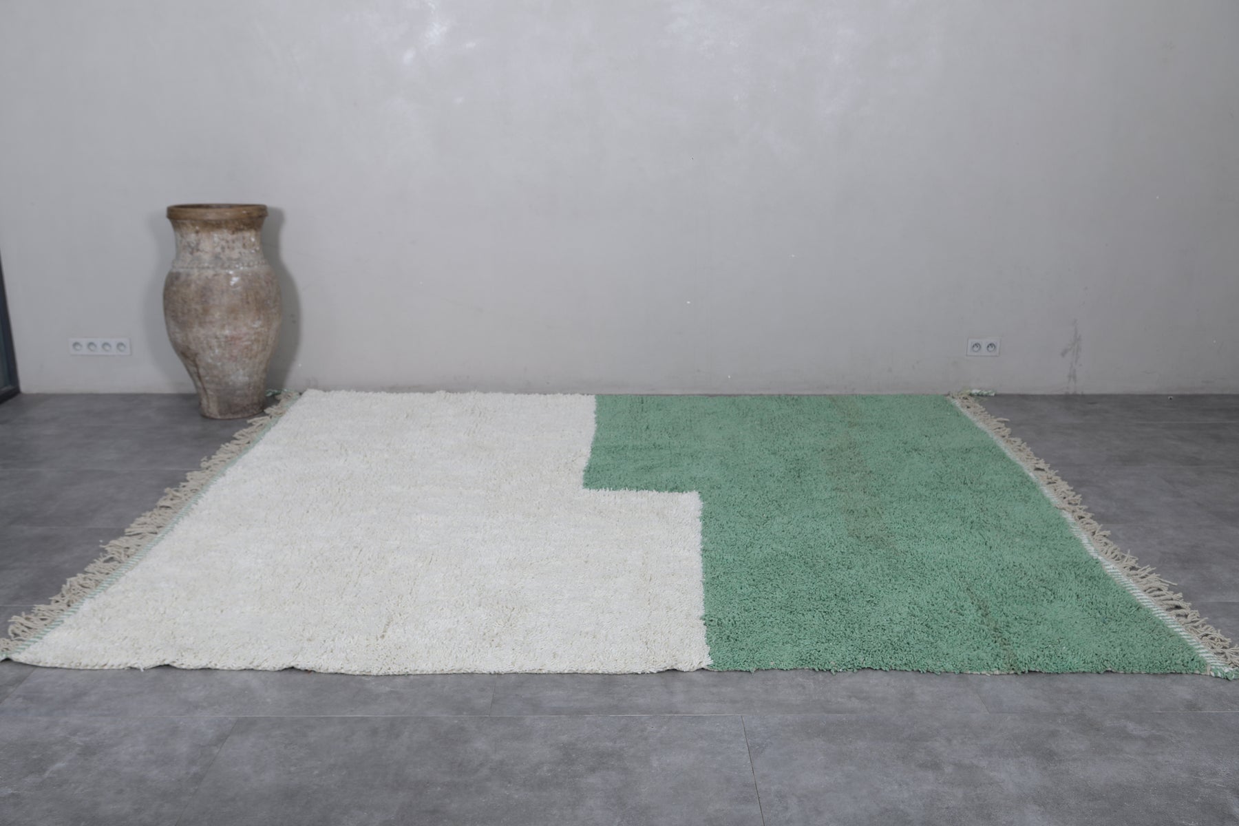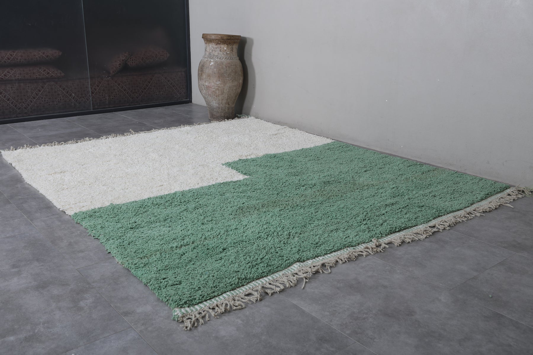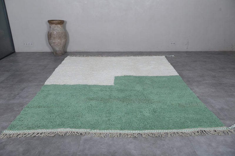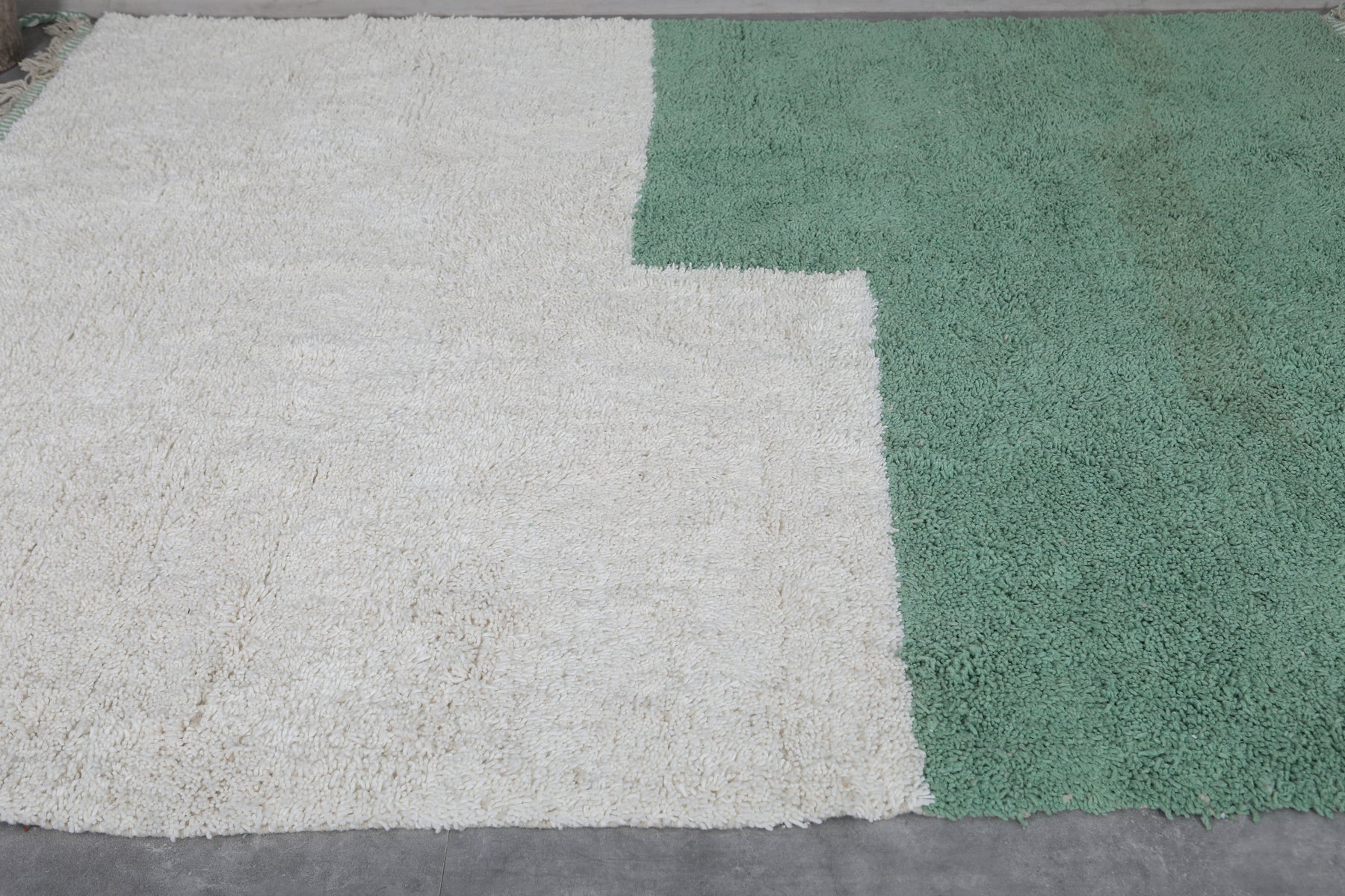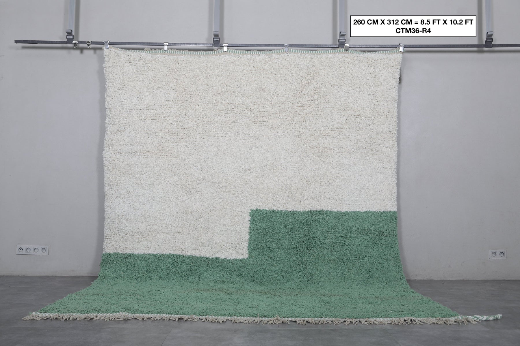 Enhance your home with this unique Large Moroccan Rug, sized at 8.5 x 10.2 feet (260 CM x 312 CM). Featuring a modern green and cream color block design, this handwoven Berber rug blends traditional craftsmanship with contemporary style. Its bold yet minimalist aesthetic makes it an ideal statement piece for spacious interiors, adding warmth and artistic flair to any room.